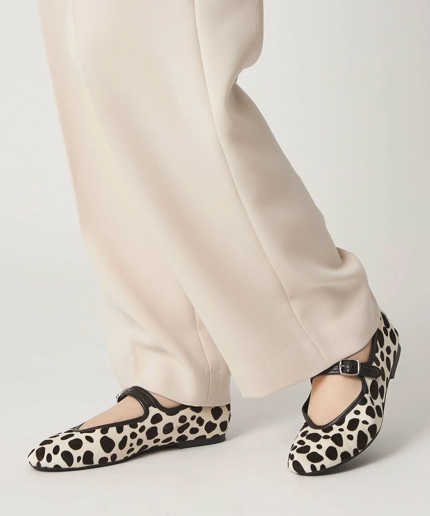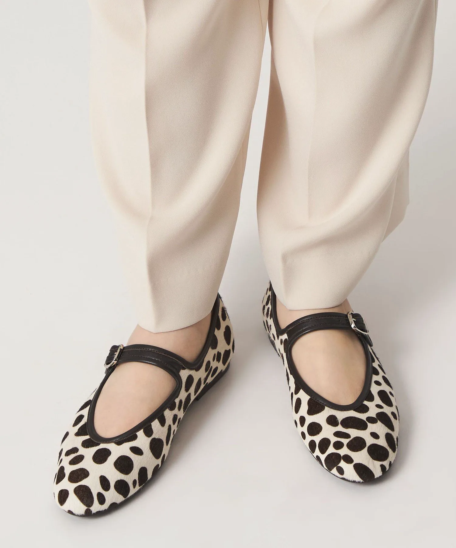 Воротник и ремешок на подъеме выполнены из гладкой кожи, что придает балеткам сбалансированный, изысканный и солидный вид.