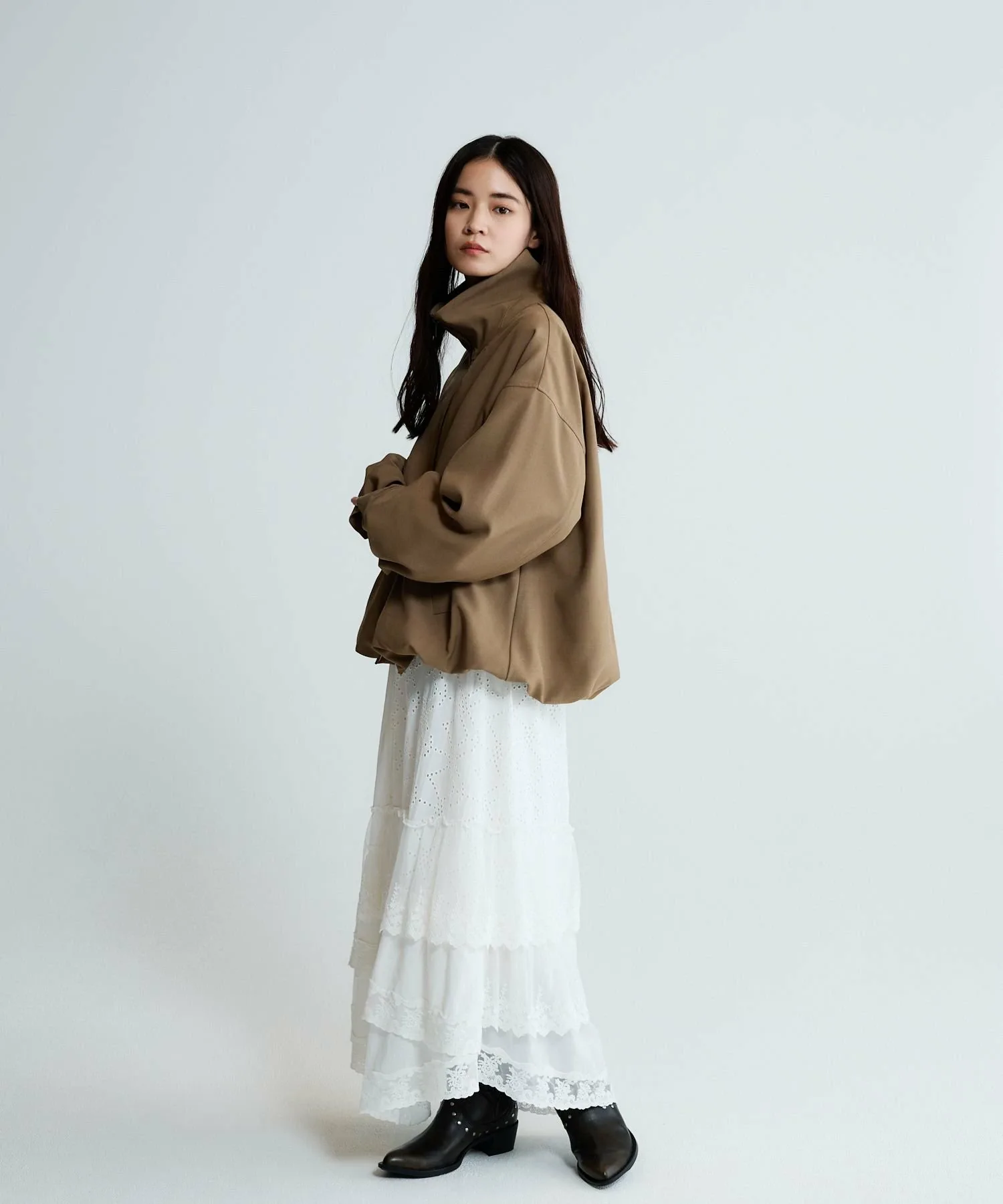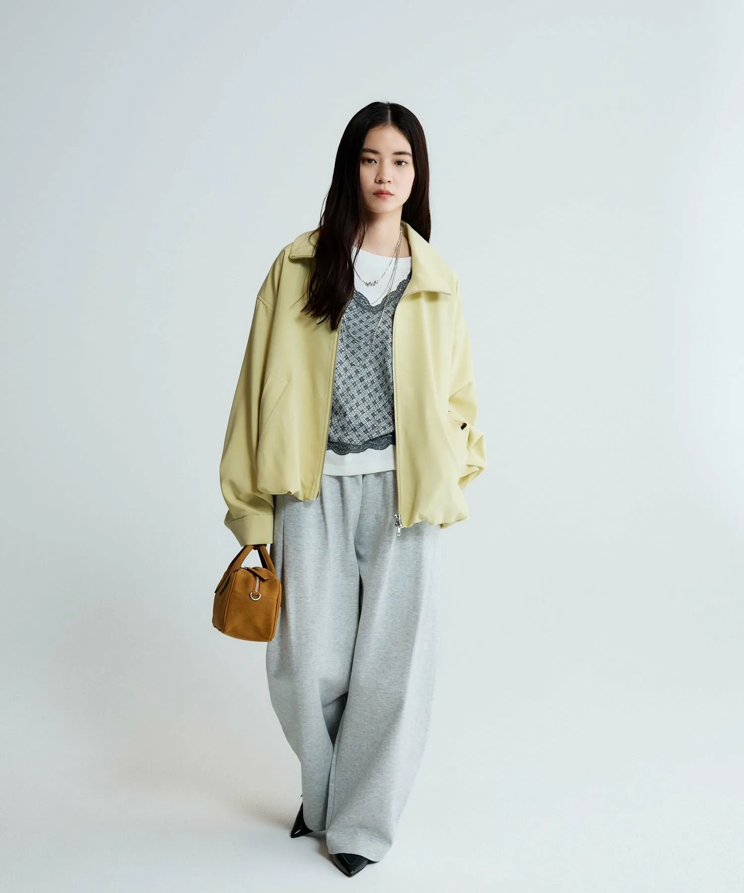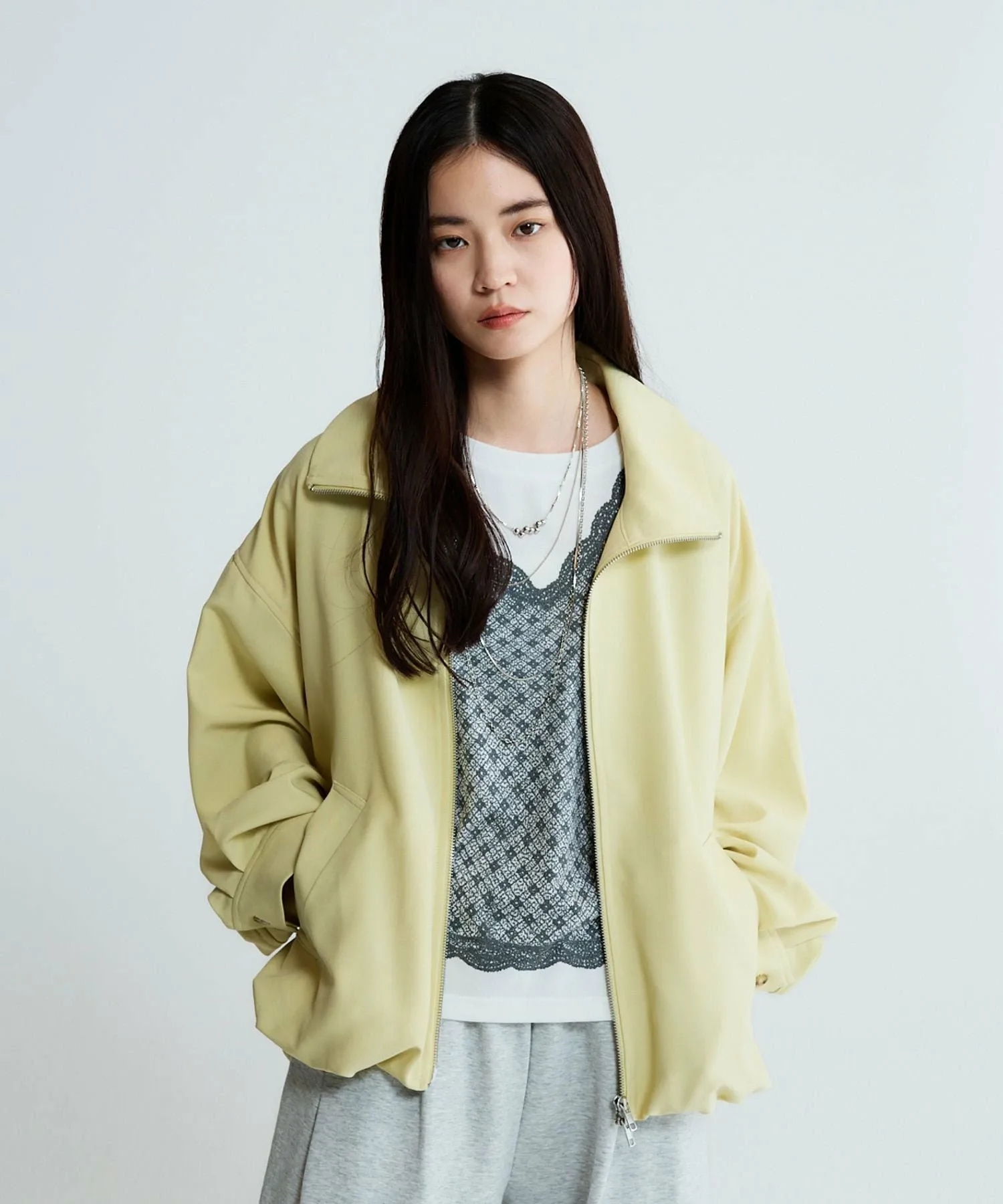 Полная молния позволяет поднять воротник или опустить его для создания образа, похожего на тренч.