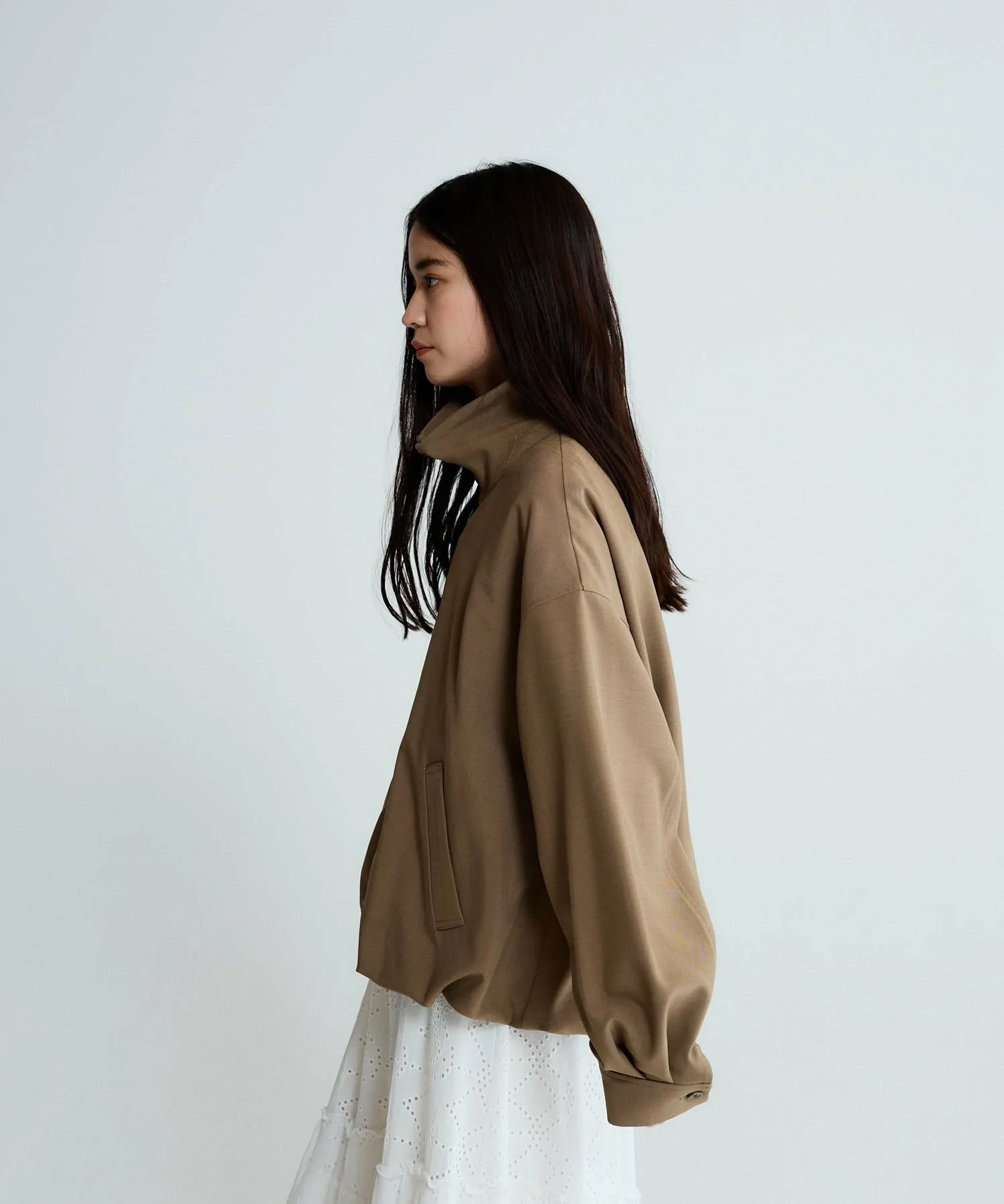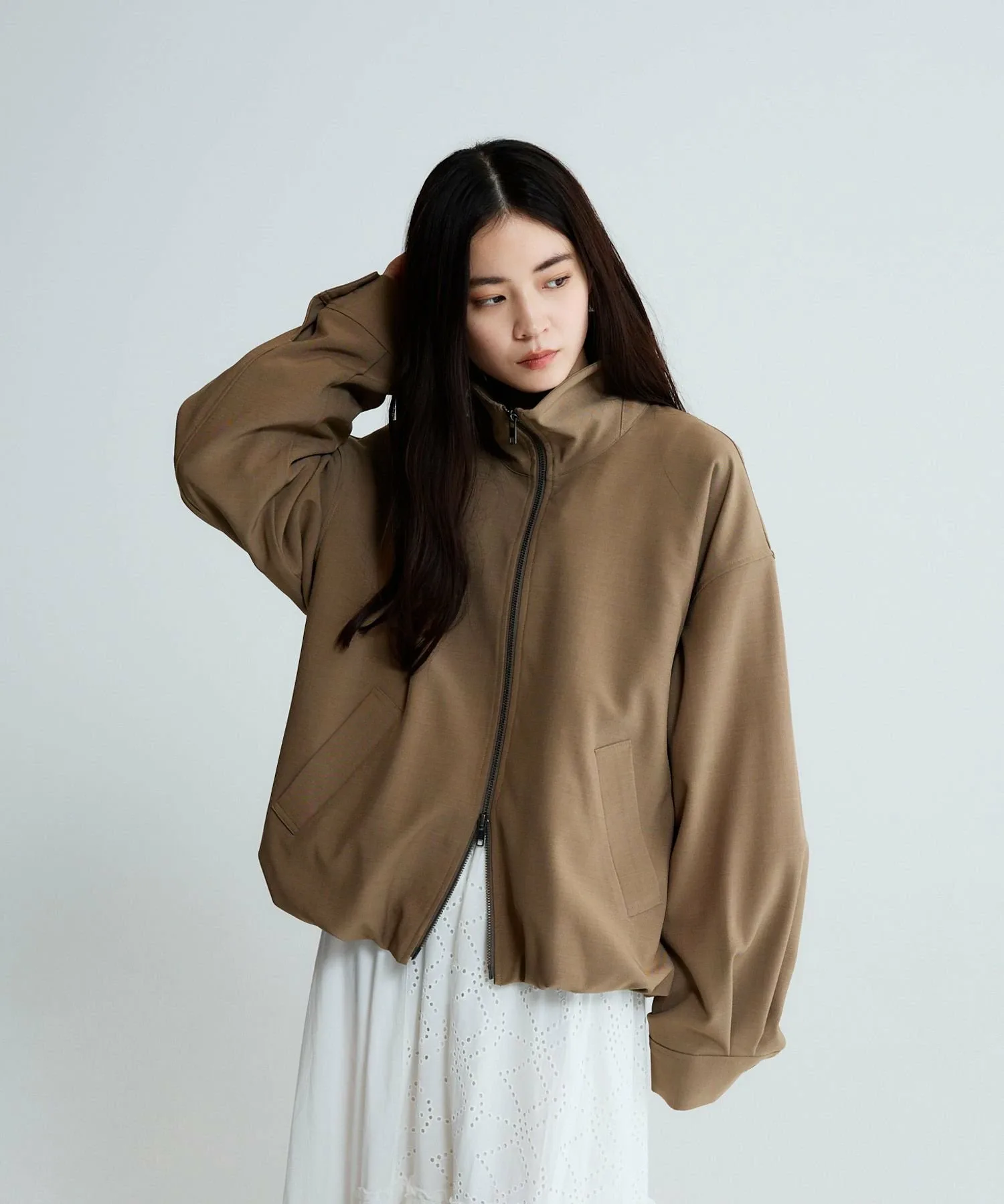 Блузон с воротником-стойкой, который можно носить как рубашку.