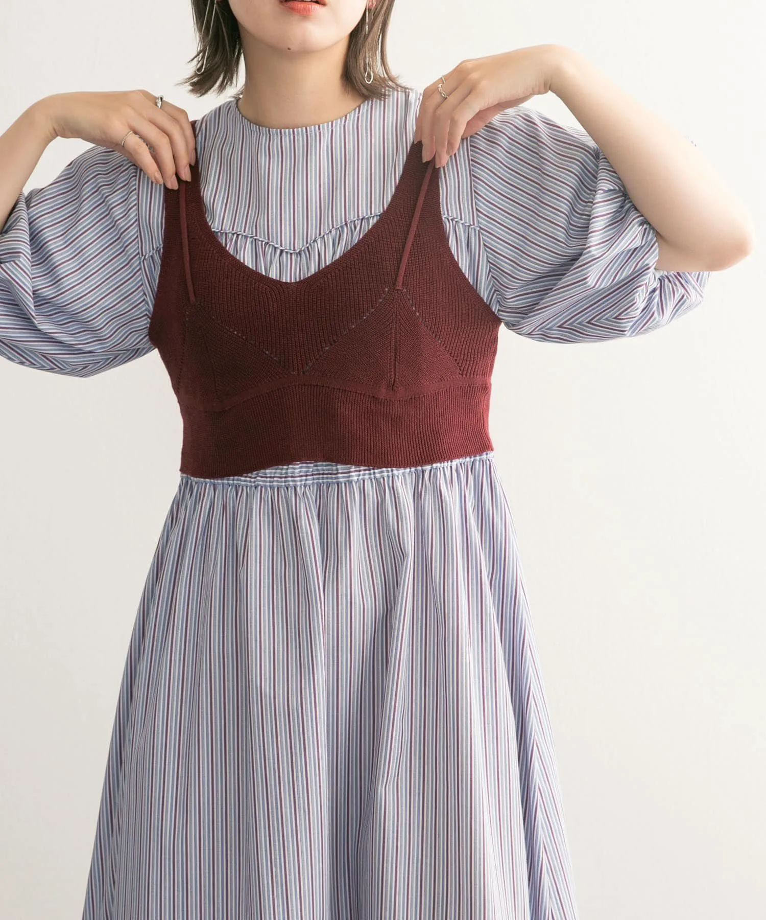 Этот вязаный бюстье изготовлен из материала, удобного для ношения даже летом. Особенностью является многослойный дизайн бретелей. ◎ Немного удлиненная длина позволяет сочетать его с брюками с высокой талией для создания укороченного образа. Цвета также привлекательны и подходят для многослойных стилей осенью.