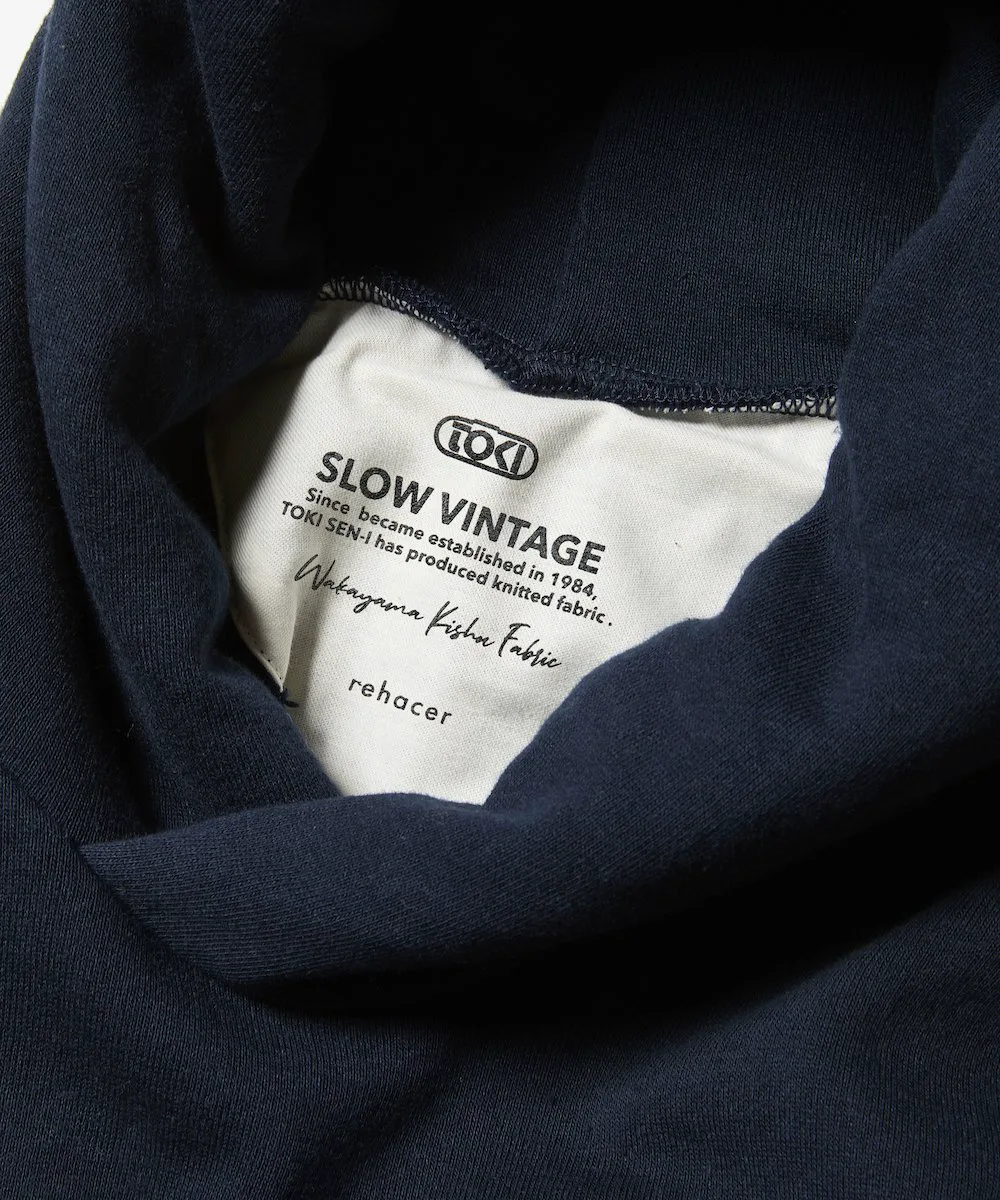 Это ткань с длинным ворсом, связанная на старинной петлевой вязальной машине в Вакаяме. Низкая скорость вязания позволяет получить рыхлое, плотное и аккуратное полотно, что делает этот материал уникальным.