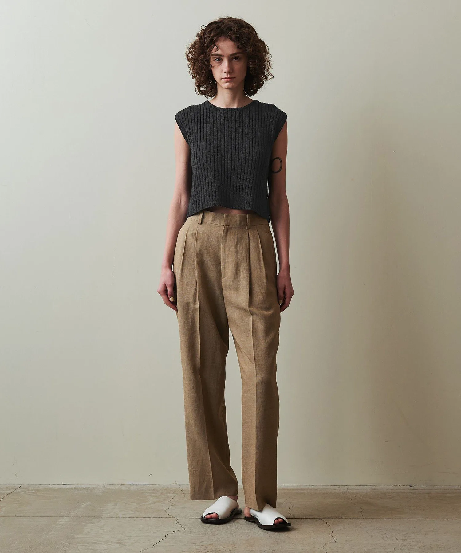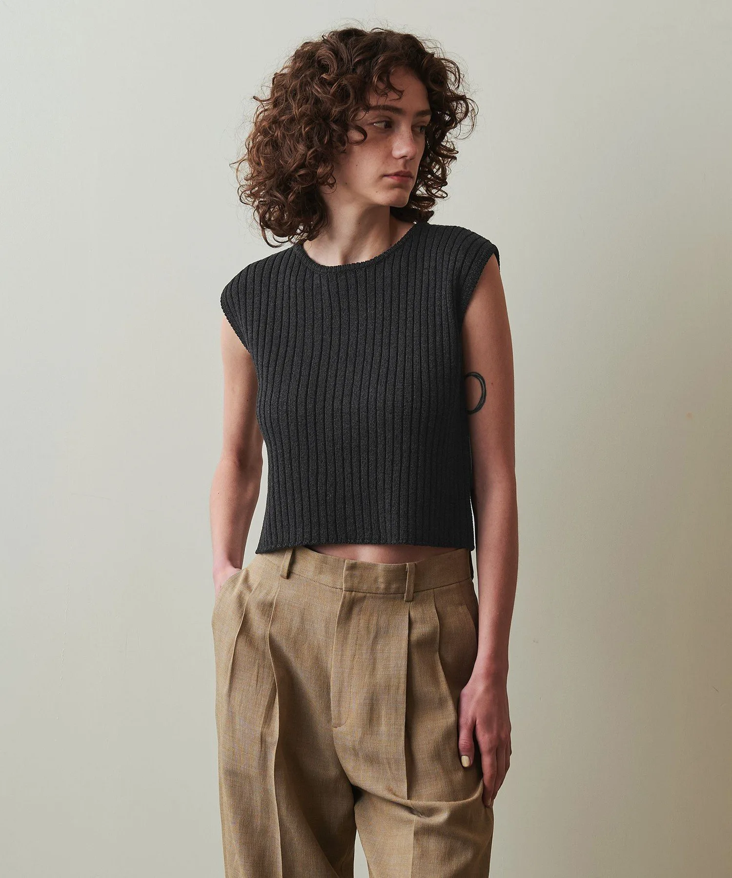 Короткий вязаный пуловер без рукавов.
