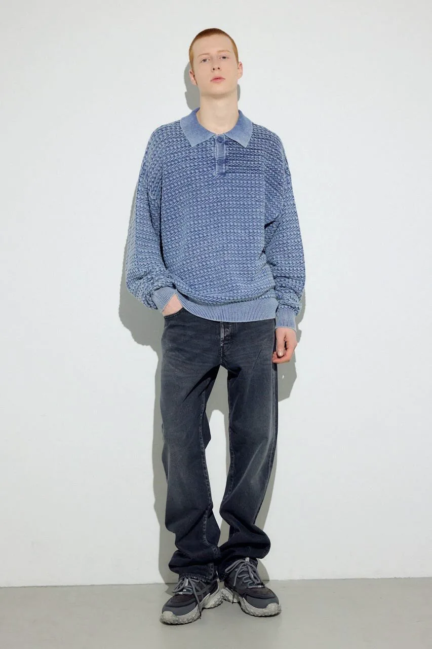 Трикотажное поло с винтажным эффектом, окрашенное серой и обработанное камнями.