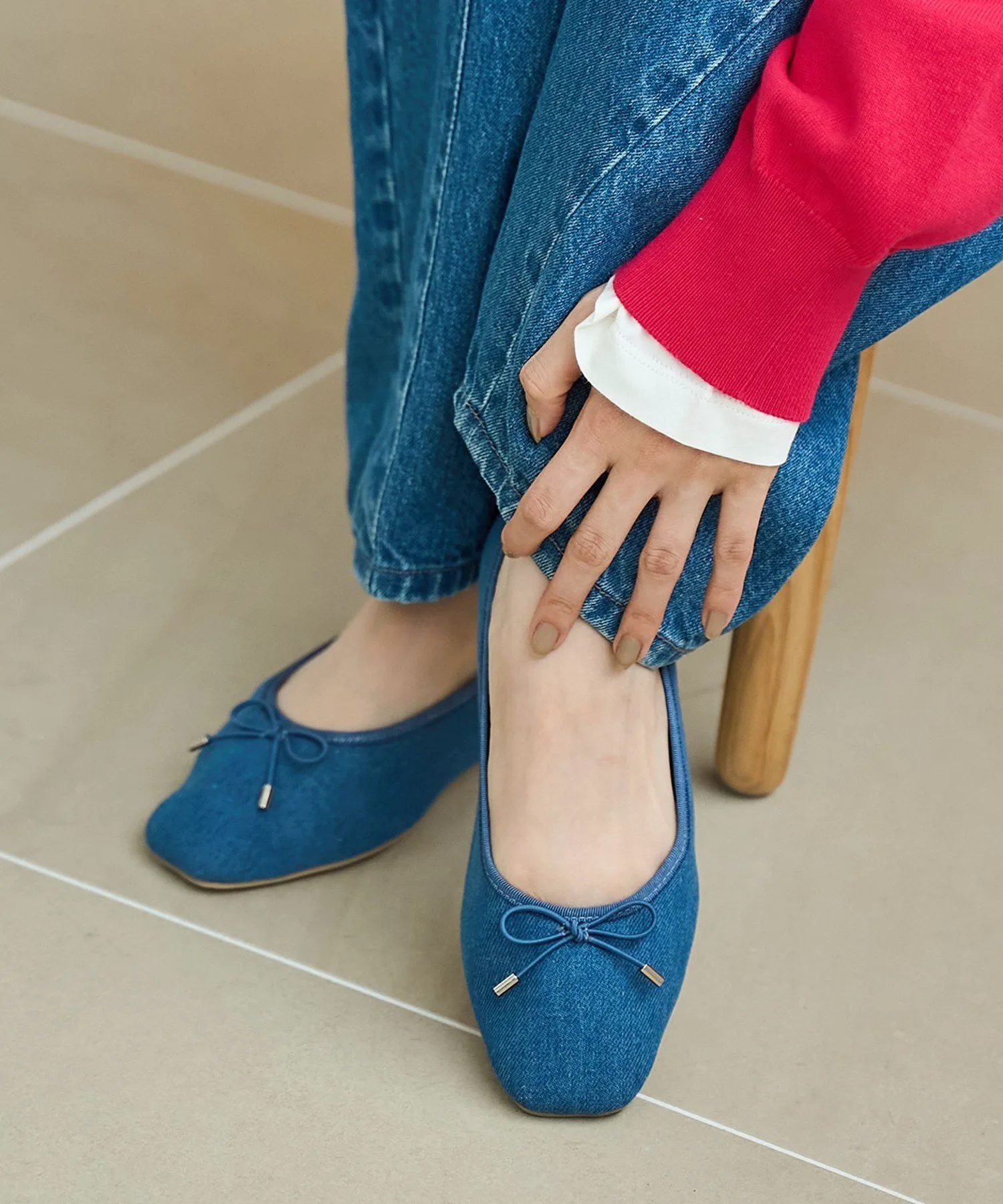 К популярным балеткам, вызывающим привыкание, добавилась новая модель из джинсовой ткани с умеренно чистым дизайном.