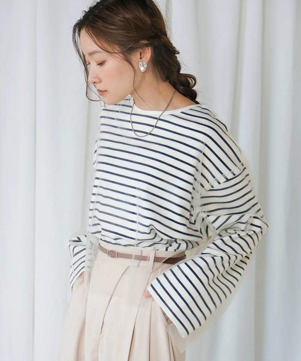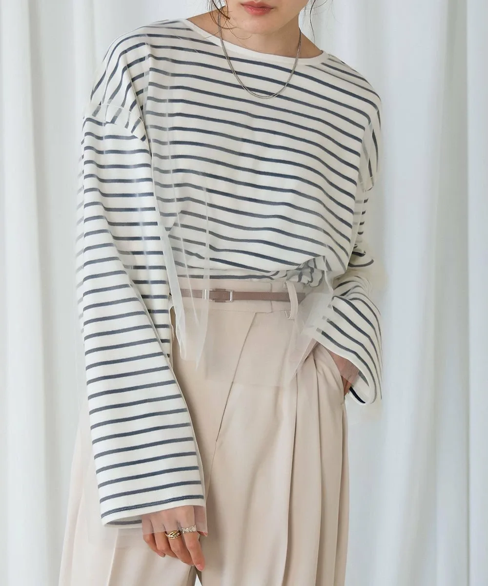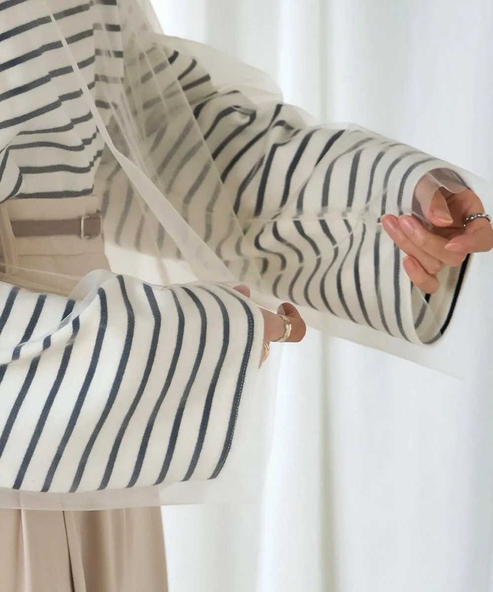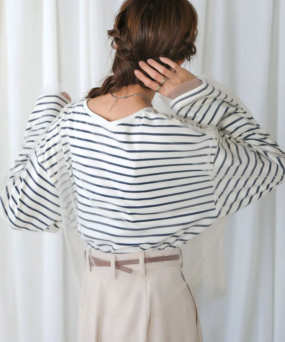 POINTЭтот легкий топ сочетает в себе нежную тюлевую ткань с повседневным полосатым узором. Короткая длина создает прекрасный баланс и визуально удлиняет ноги. Округлый силуэт, созданный приспущенными плечами, выглядит женственно и выгодно подчеркивает фигуру, что делает его отличным вариантом. Неглубокий вырез горловины создает утонченный образ, сочетая изысканность и непринужденность.