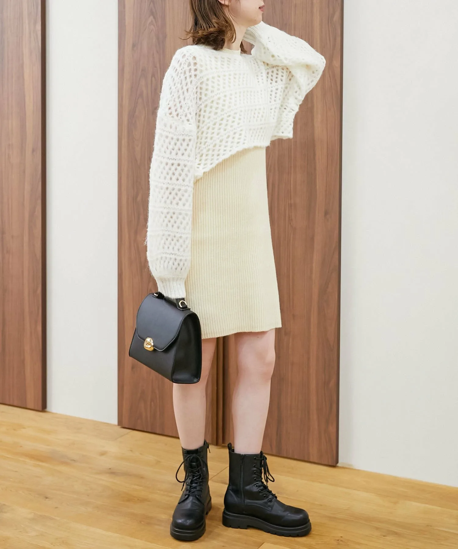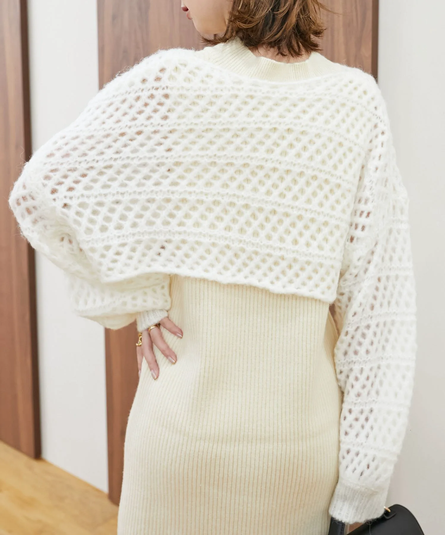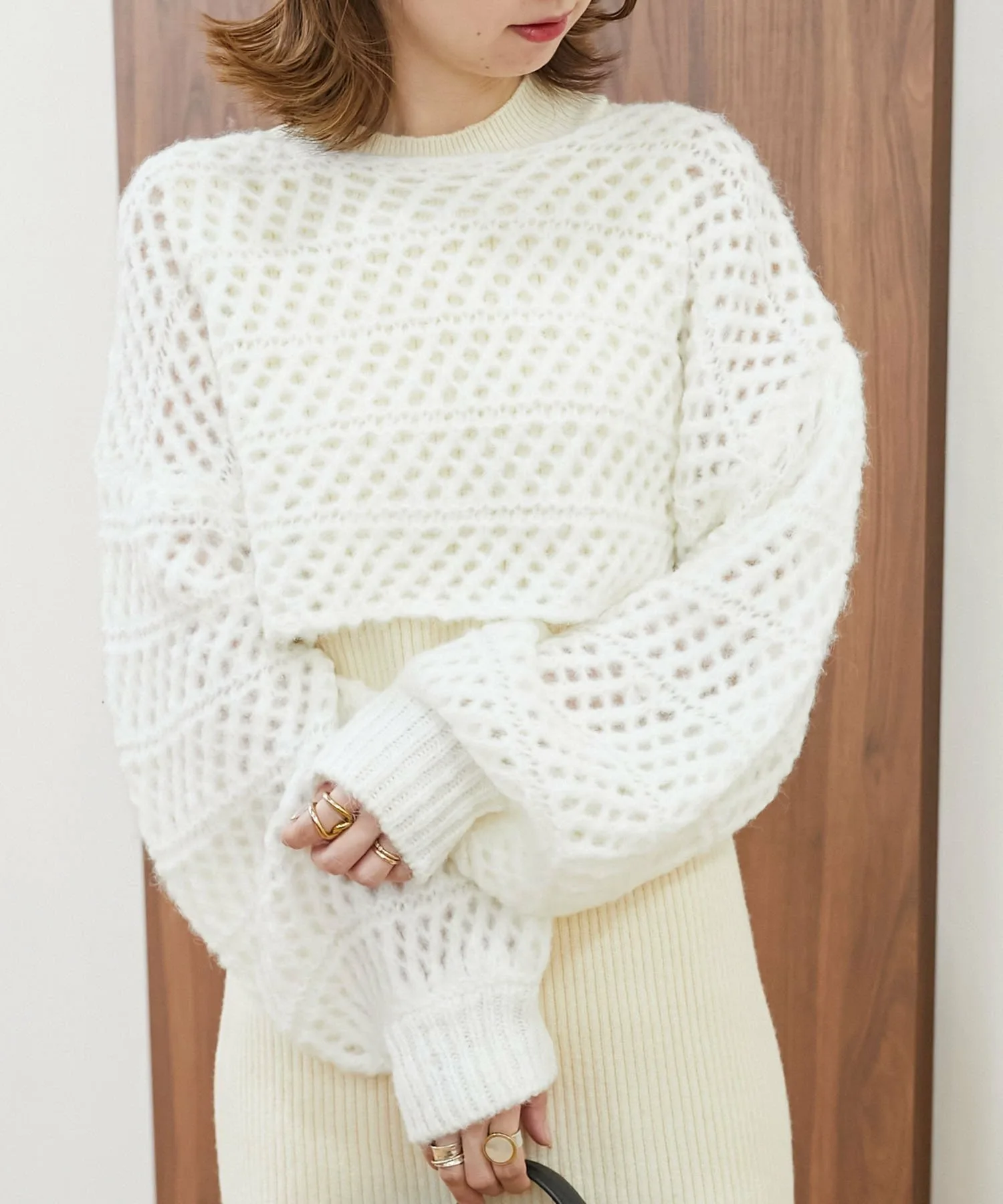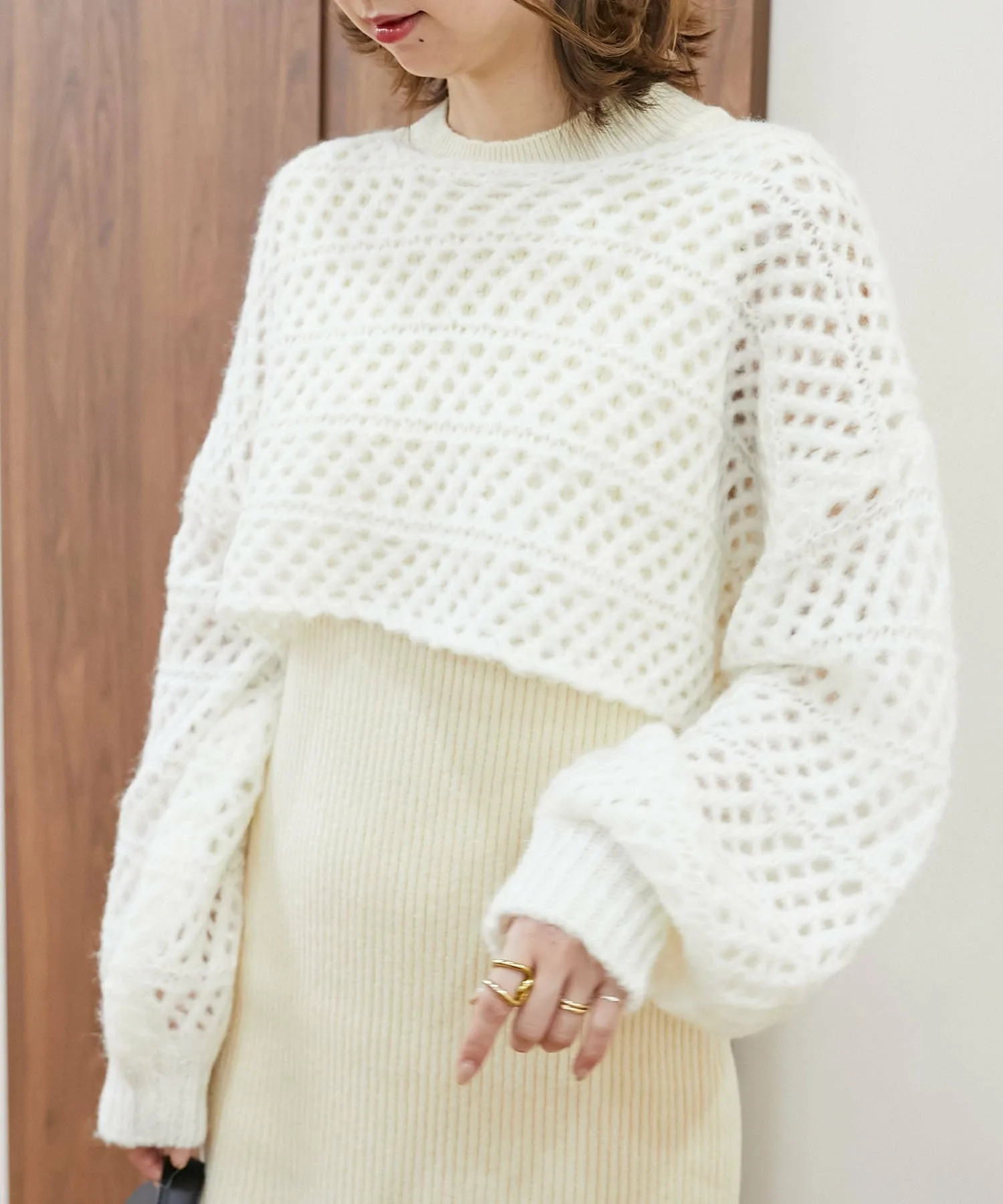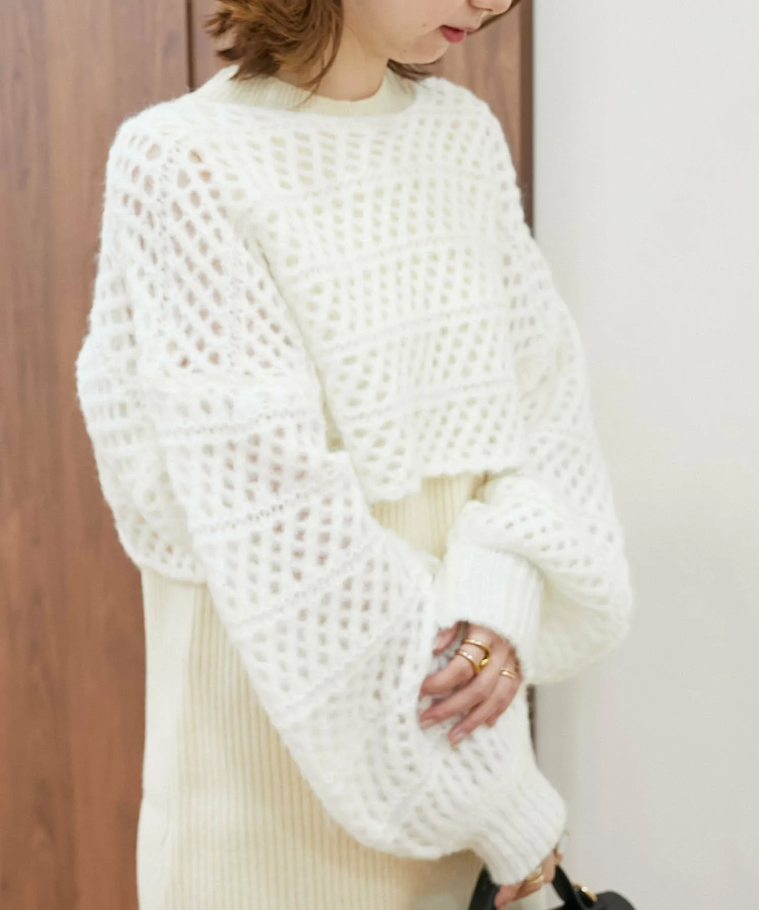 Благодаря крупному рваному узору, свободному силуэту и короткой длине, этот трикотаж идеально подходит для многослойных образов.