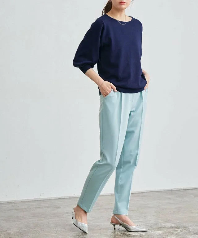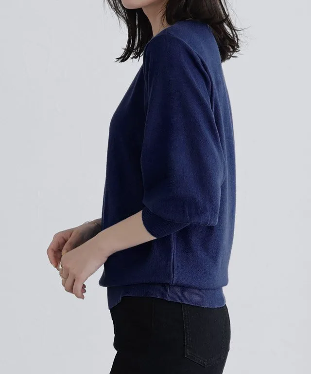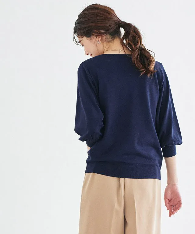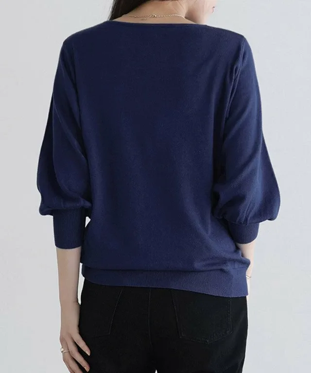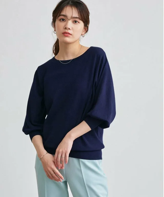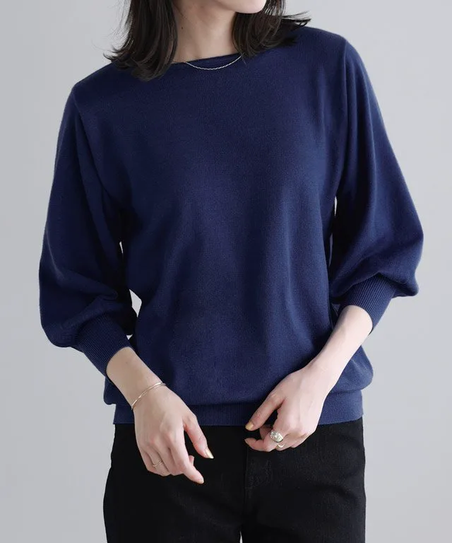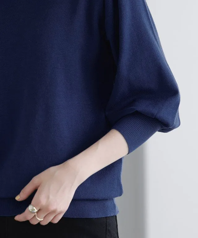 Трикотажное полотно с рукавами-фонариками и возможностью выбора выреза горловины, обеспечивающее одновременно женственный силуэт и удобство в носке.