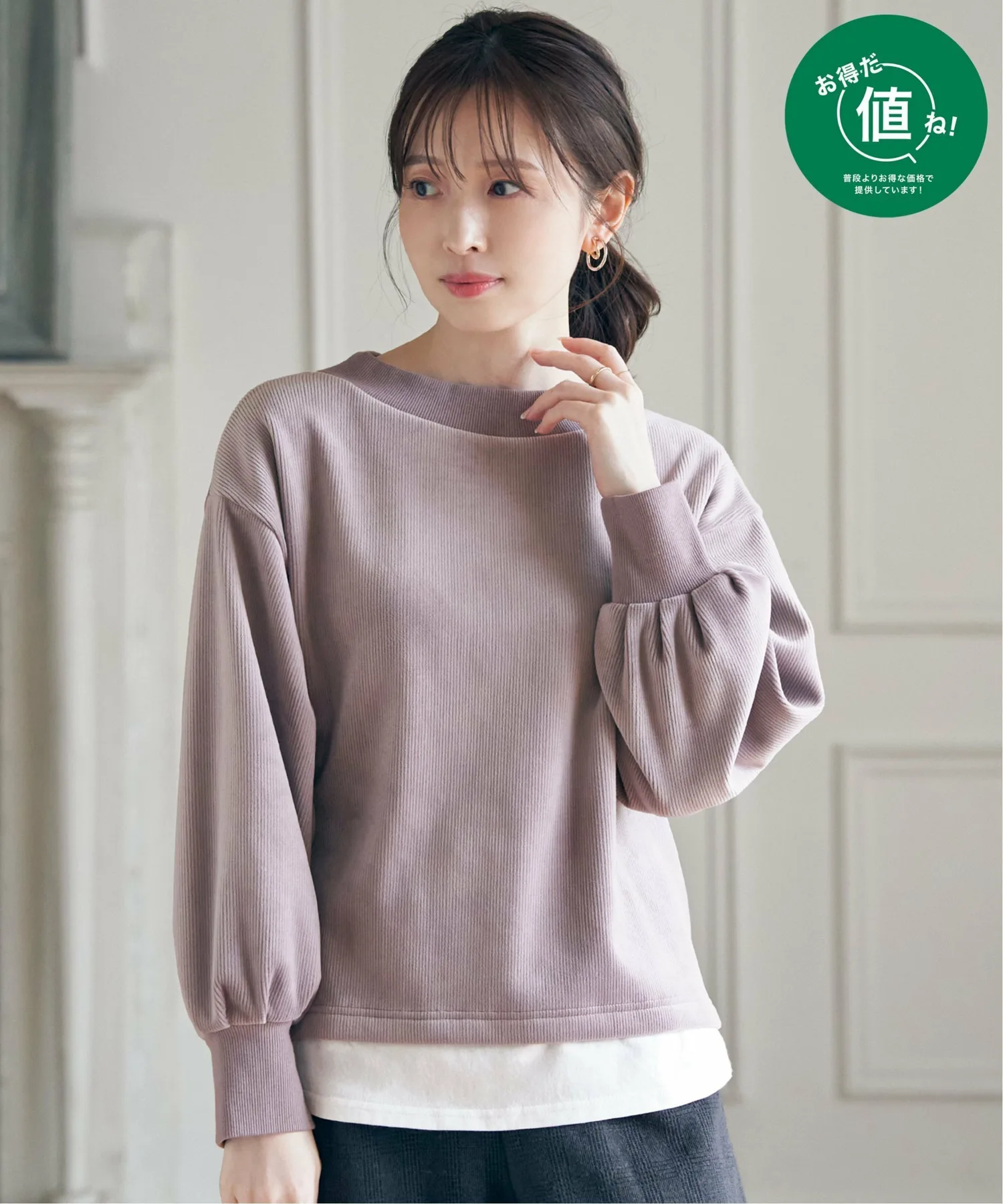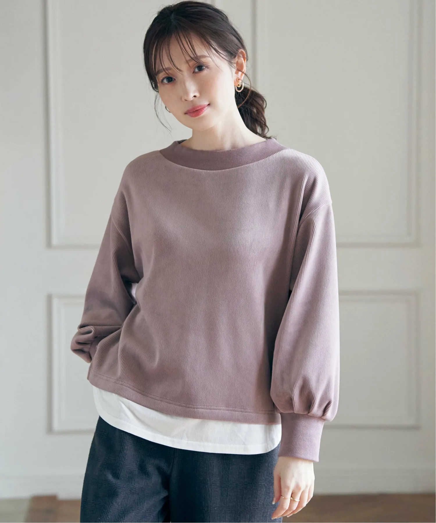 Пуловер с многослойным дизайном, с отдельным куском ткани, прикрепленным к подолу.
