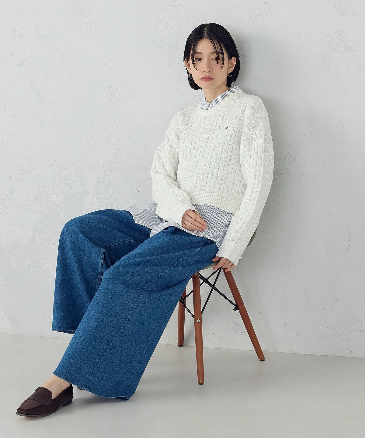 У нее приспущенные плечи и свободный крой,