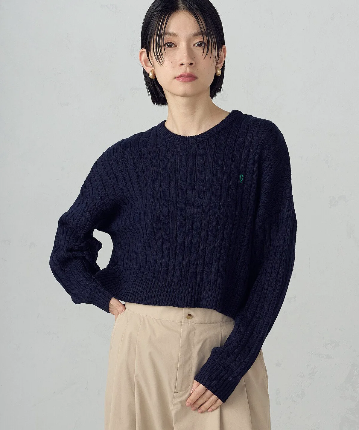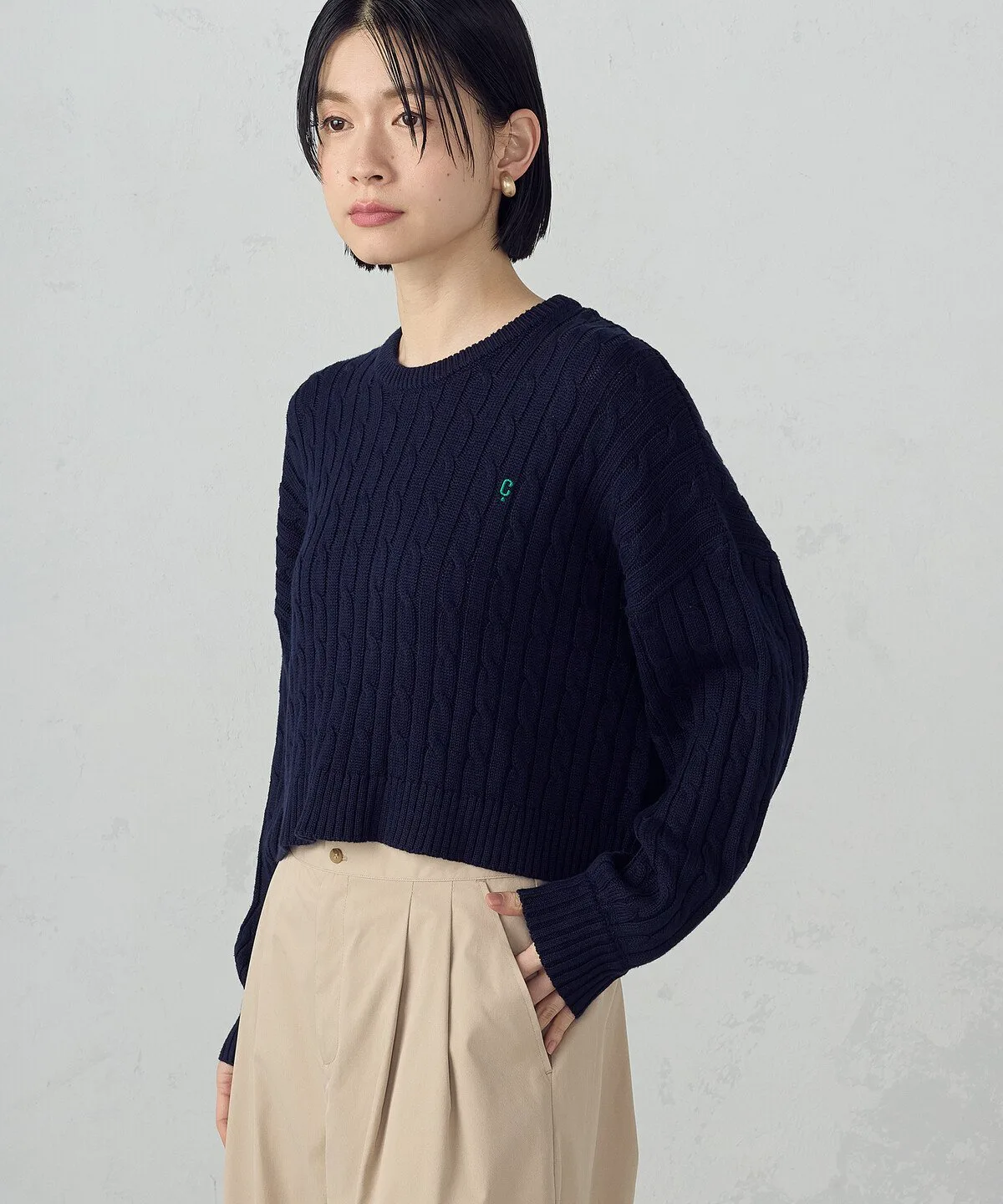 Эта блузка с круглым вырезом имеет тот же узор кос, что и мужская и детская версии.