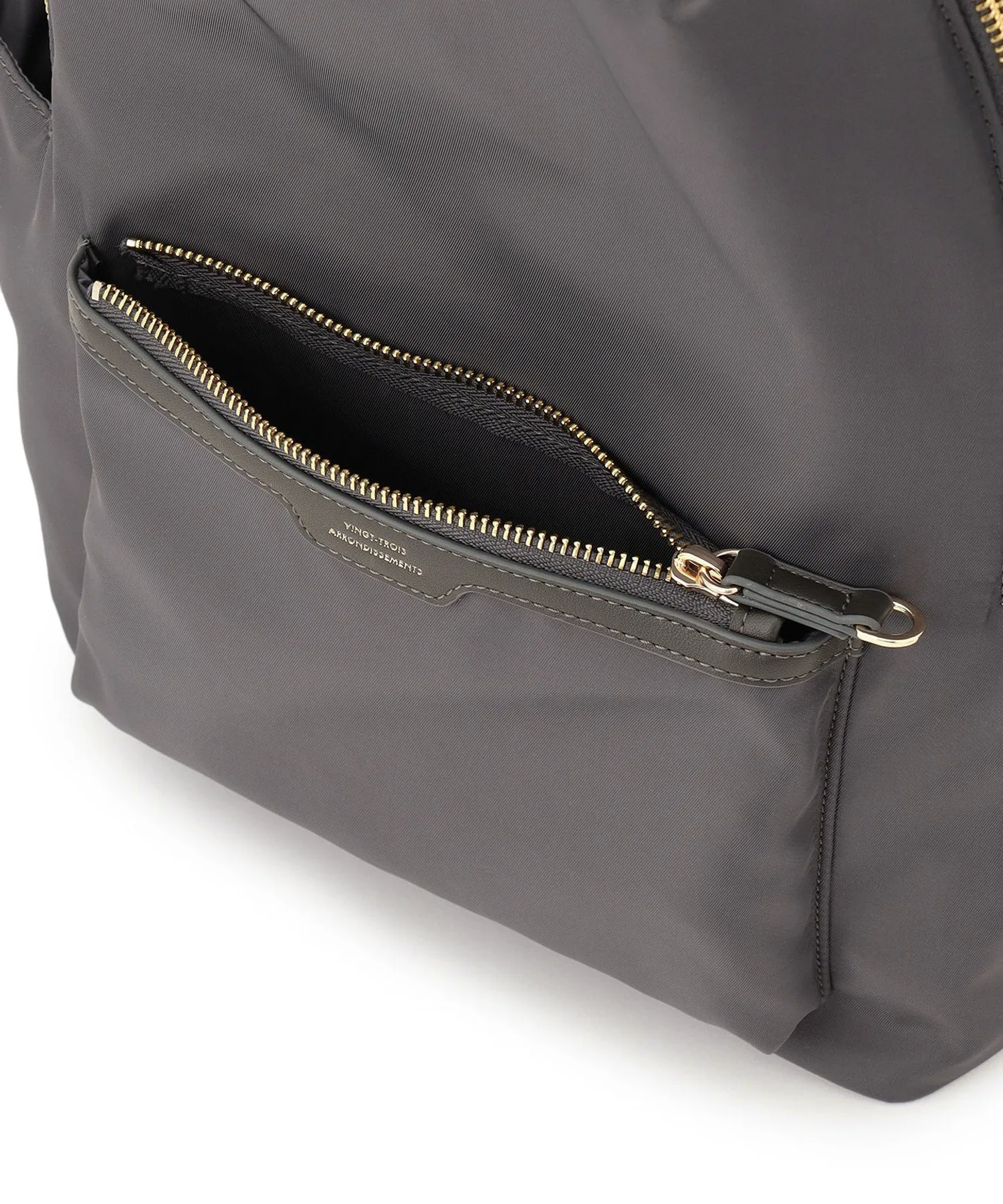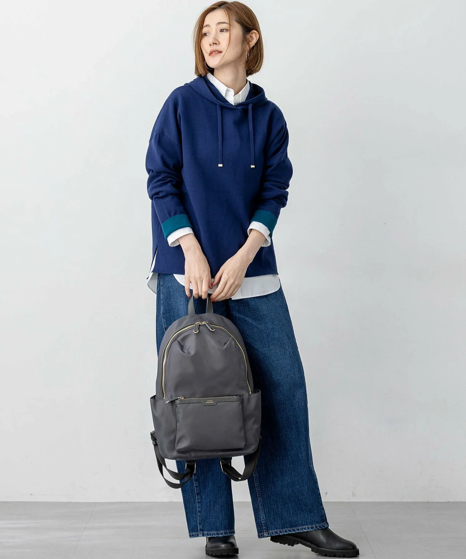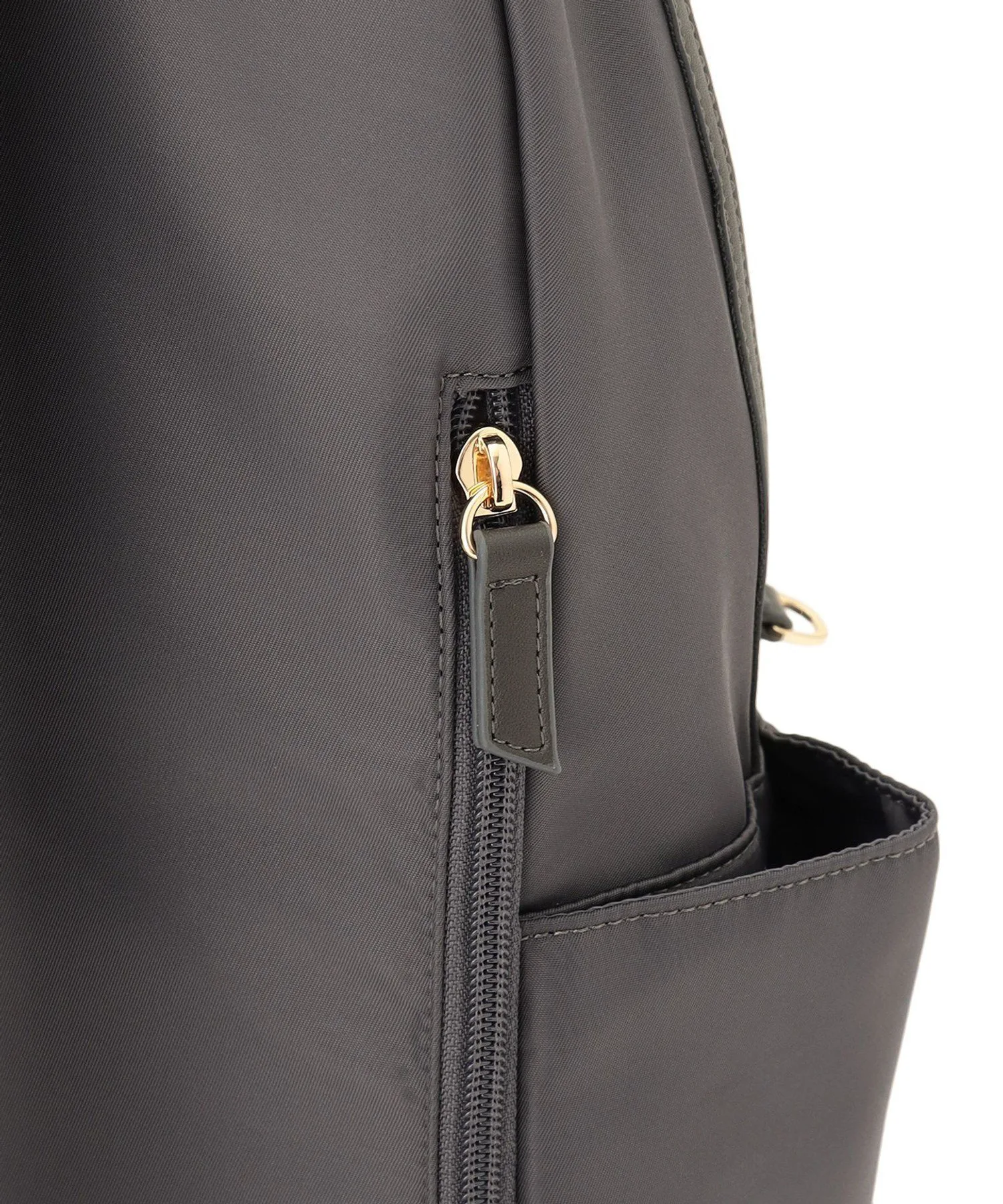 Этот новый нейлоновый рюкзак изготовлен из водоотталкивающего нейлона. Он имеет большой центральный карман, боковые карманы, достаточно большие для бутылки с водой или складного зонта, небольшой карман на молнии сзади с прямой молнией, ведущей внутрь, а также отделение для ноутбука и два открытых кармана для мелких предметов внутри, что делает его одновременно стильным и очень функциональным. Это наша сумка №1, рекомендуемая для повседневного использования. Доступен в трех цветах: легко сочетающийся с другими цветами черный (#005), мягкий бежевый (#033) и изысканный серый (#004).