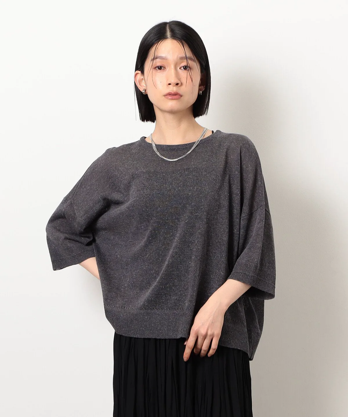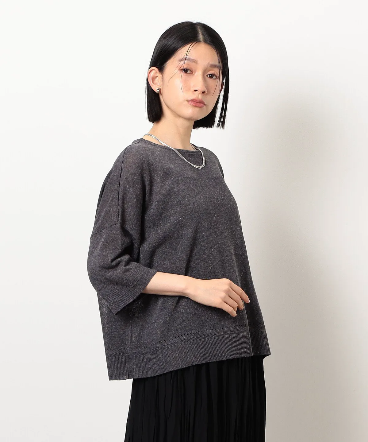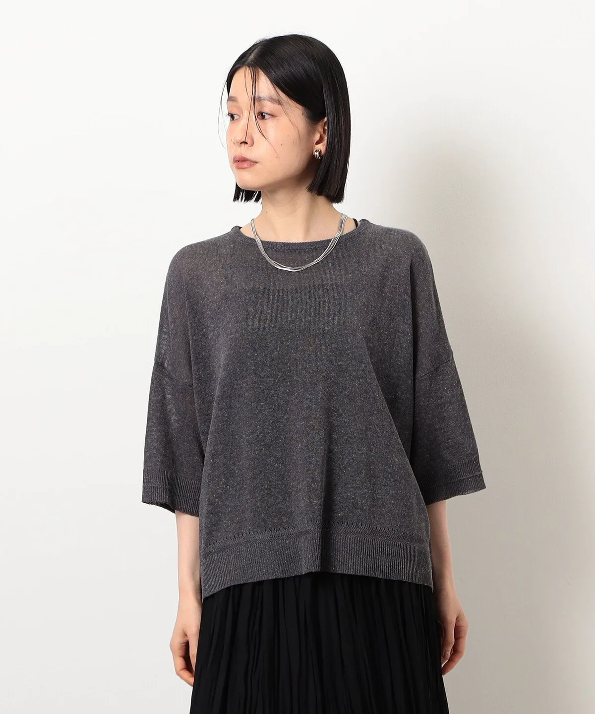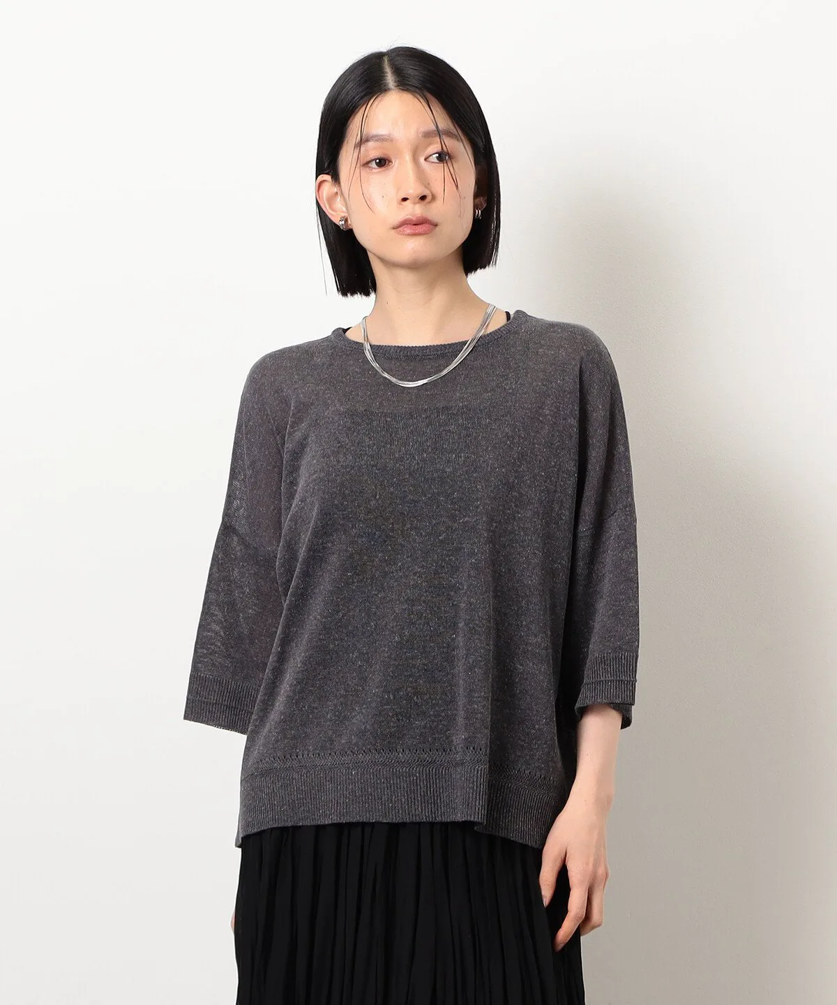 Этот трикотаж из льняной смеси с рукавами 5/4 имеет привлекательный свободный силуэт и естественную текстуру.