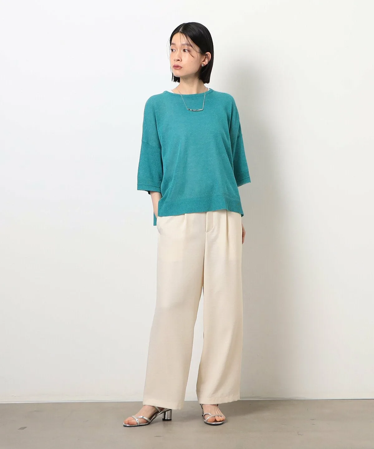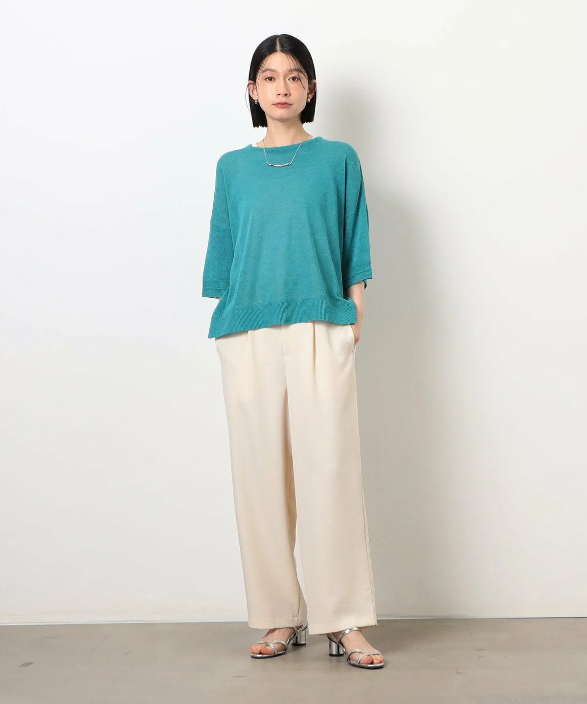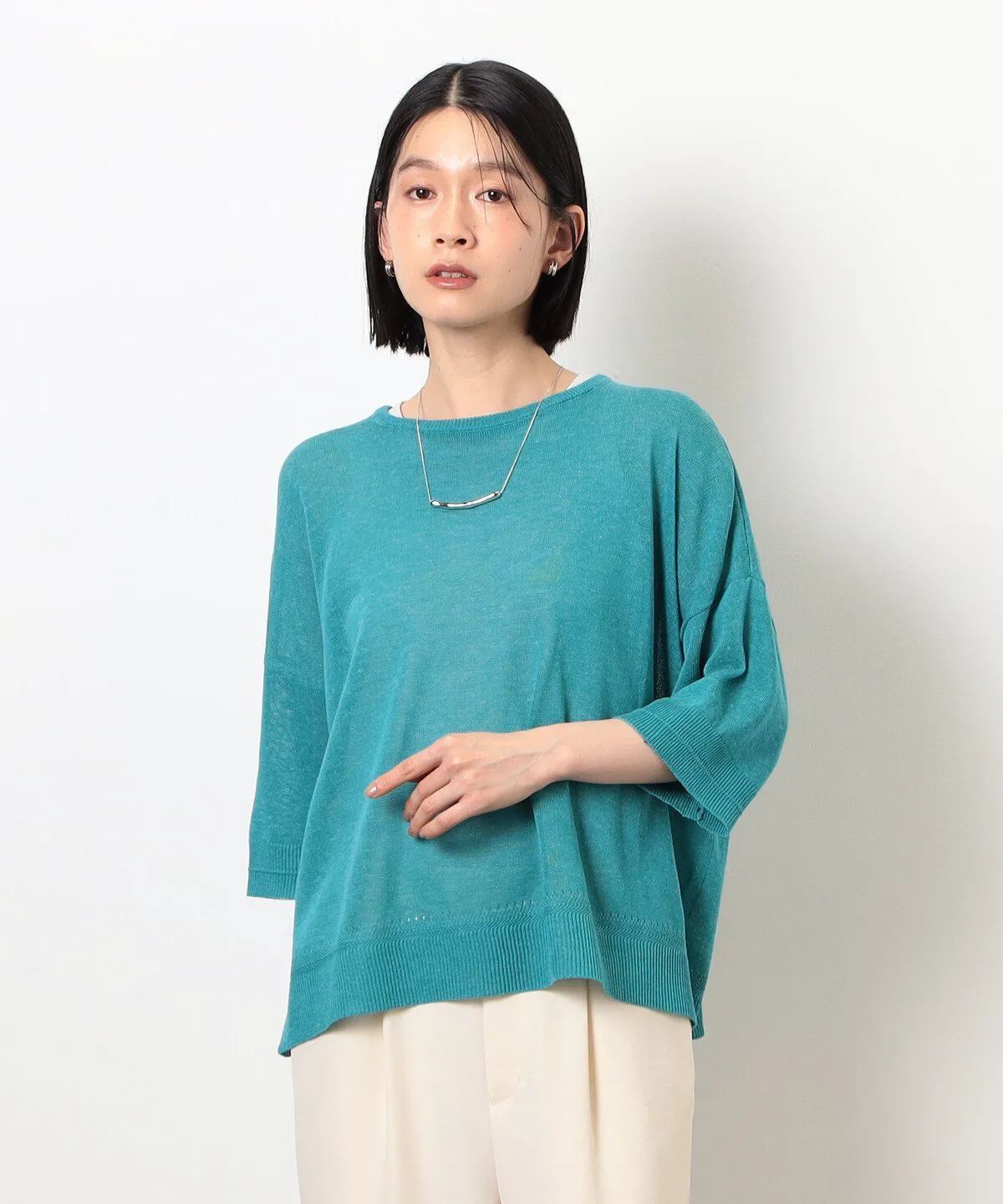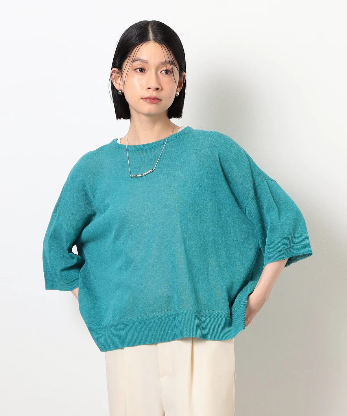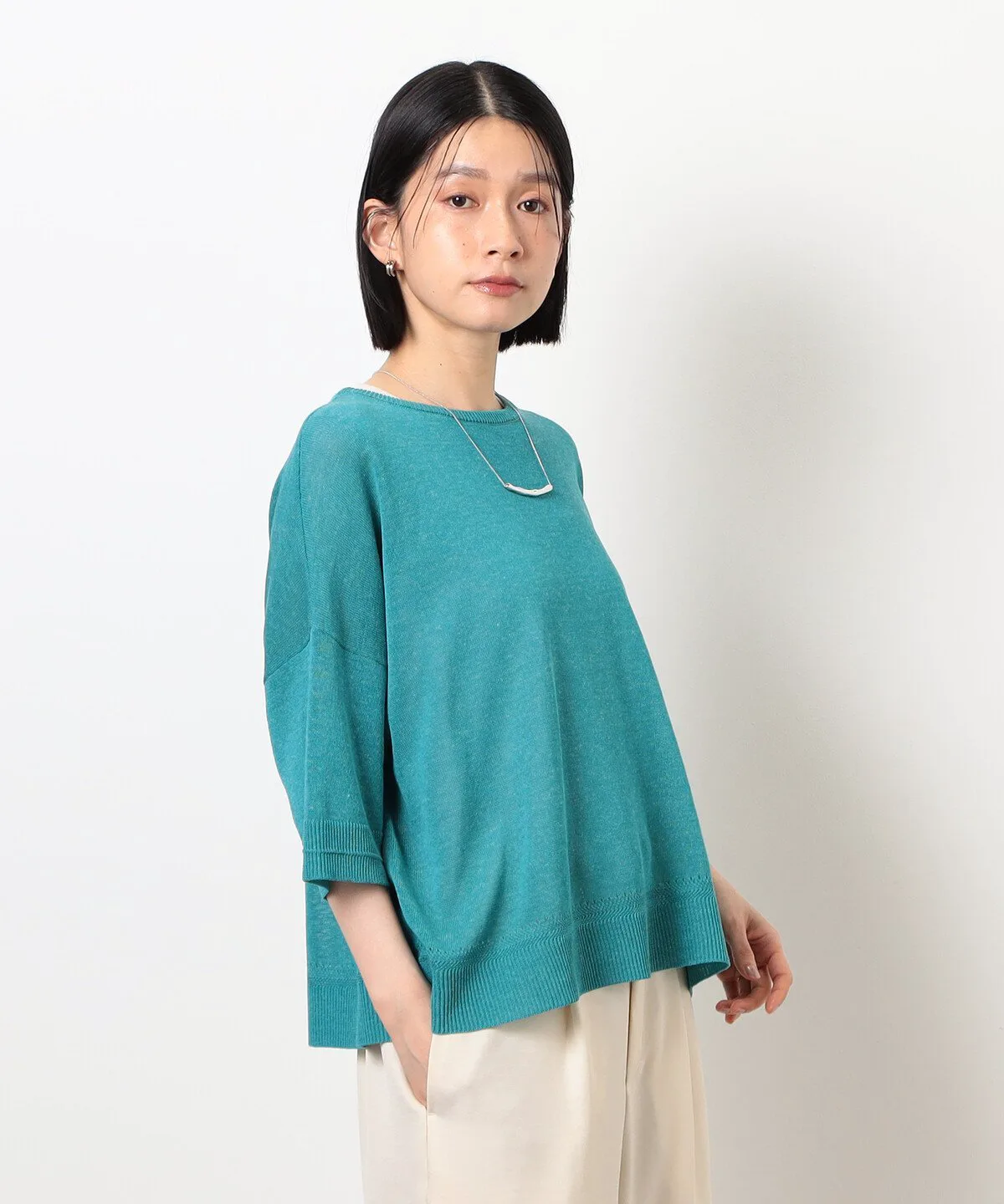 Этот трикотаж из льняной смеси с рукавами 5/4 имеет привлекательный свободный силуэт и естественную текстуру.
