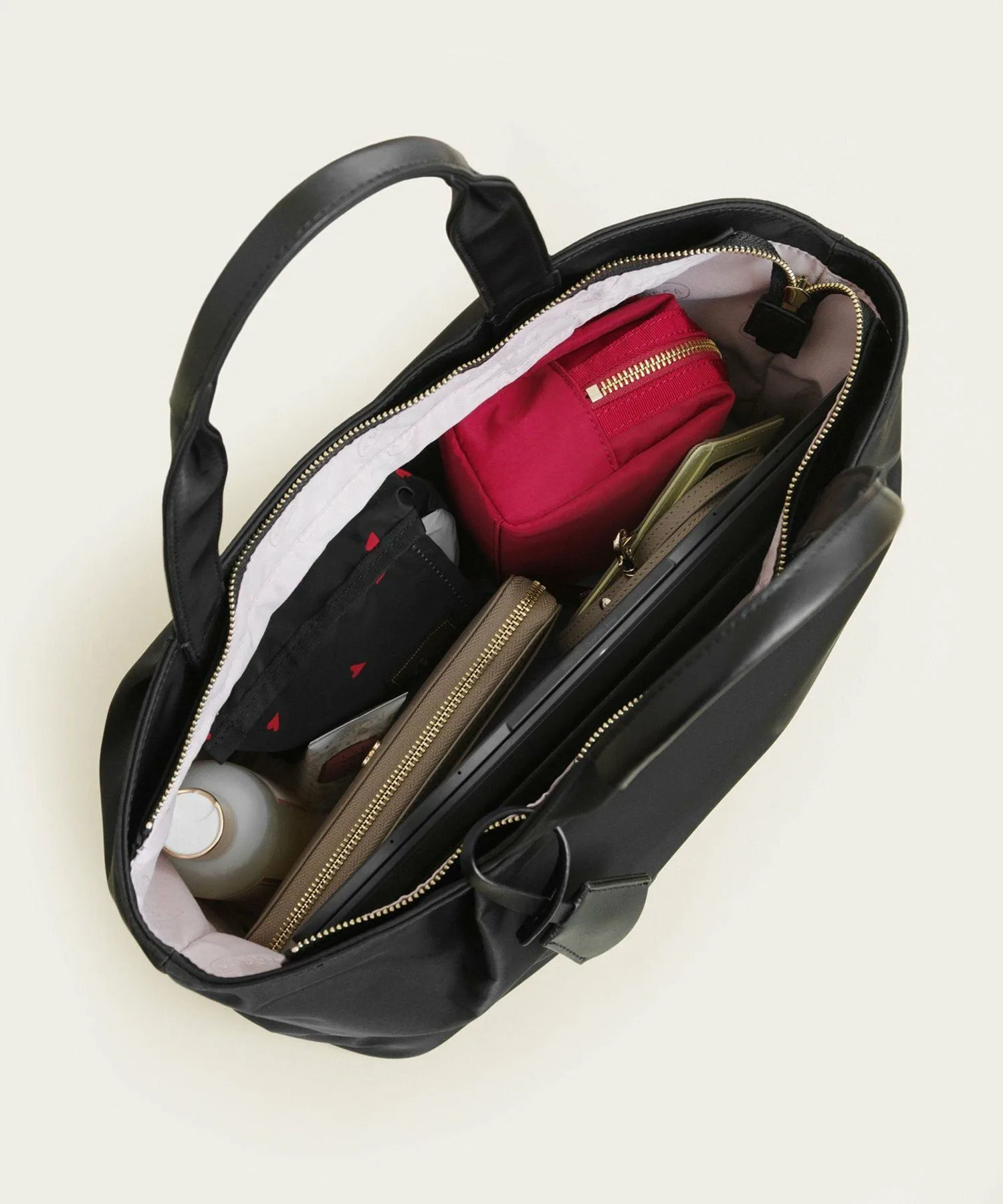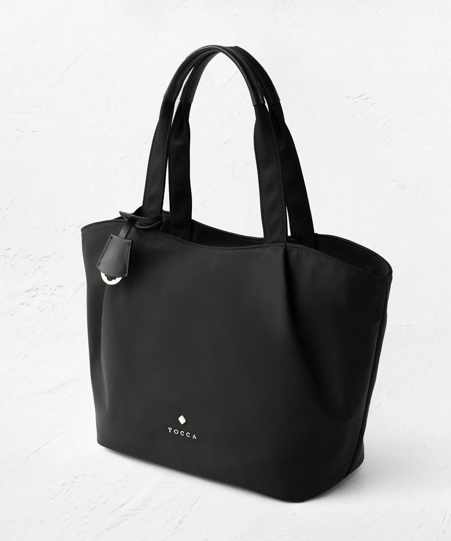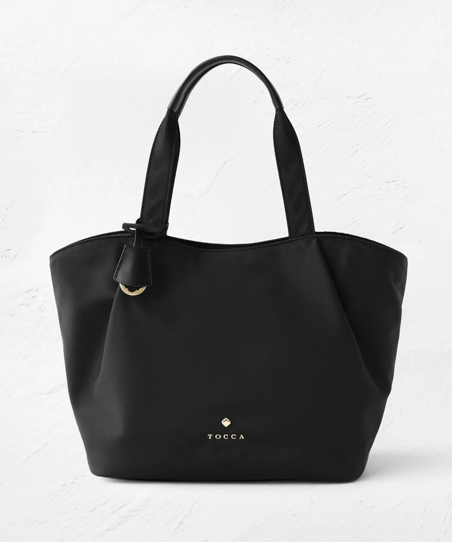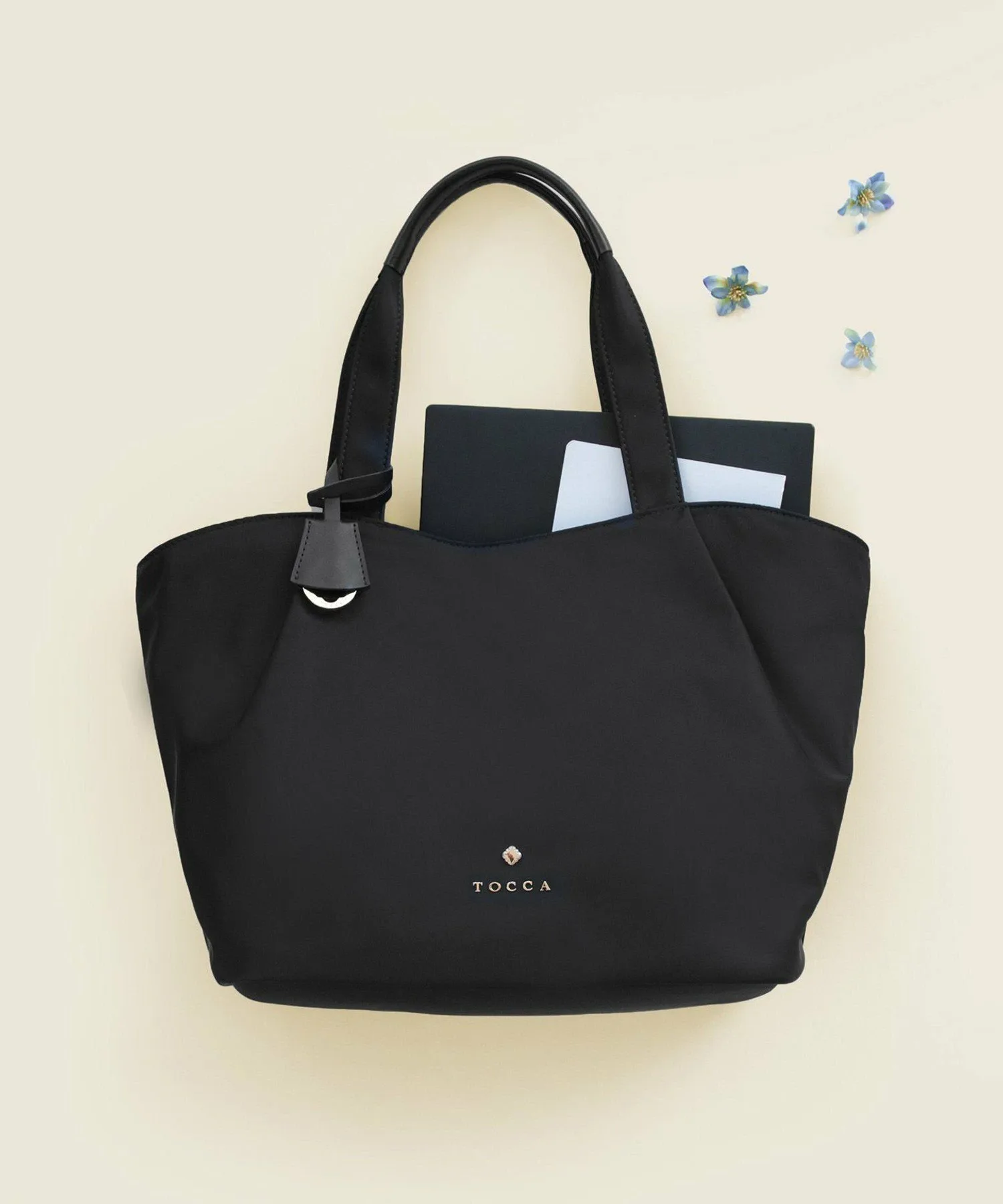 Эта нейлоновая сумка-тоут имеет красивую, воздушную форму, напоминающую прекрасный цветок, готовый распуститься. Мягкие изгибы отверстия создают нежное выражение, а металлический логотип в виде клевера на передней части и кольцо для ключей в виде клевера на ручке добавляют роскоши. Удобный размер позволяет легко носить документы формата А4 на плече, а также сумка имеет такие удобные функции, как длинная ручка и застежка-молния сверху. Эта вещь добавит элегантности вашим поездкам на работу или повседневной жизни.