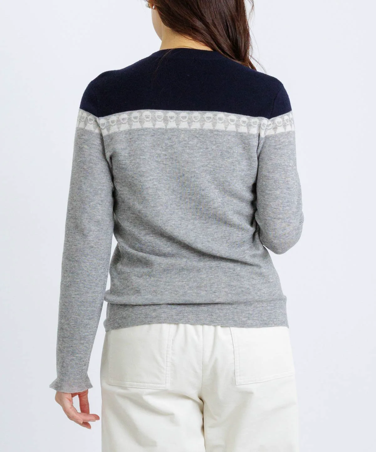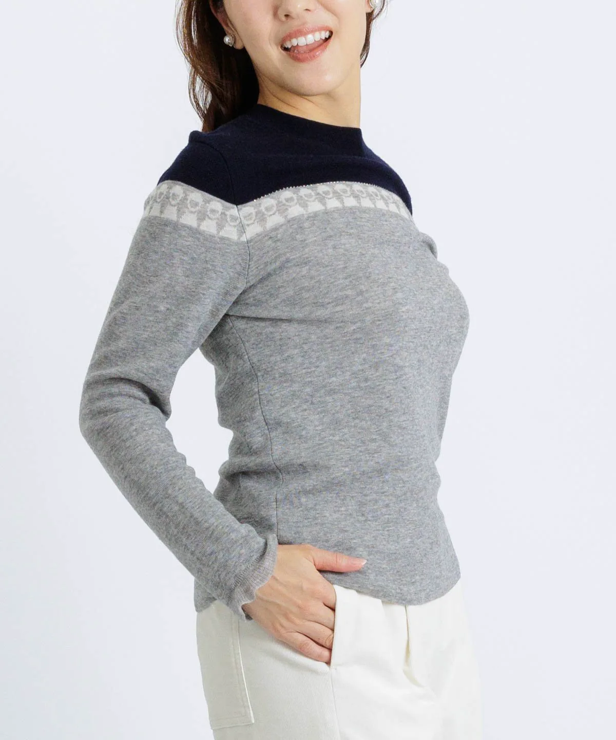 - Изменение цвета делает этот пуловер эффектным аксессуаром