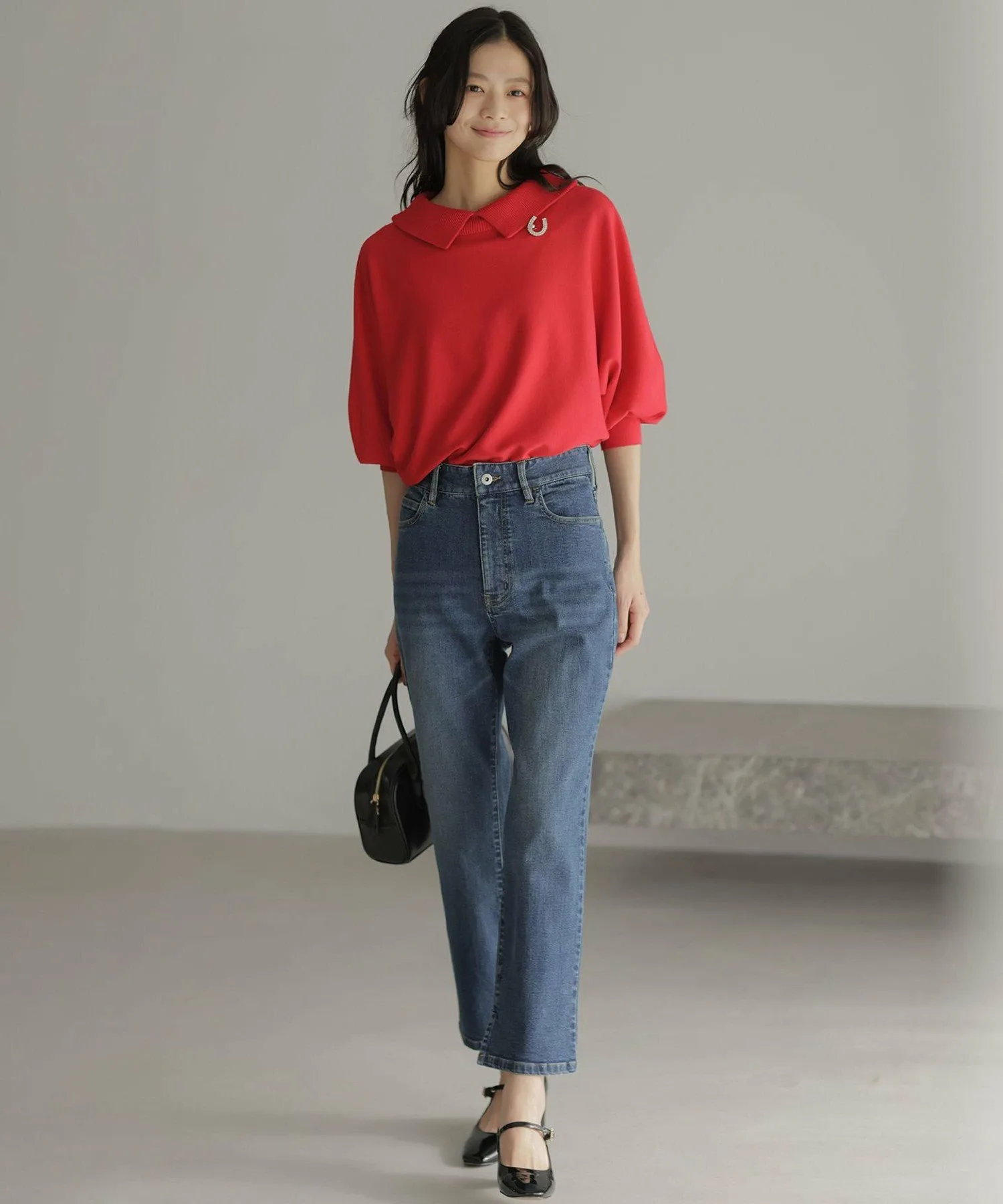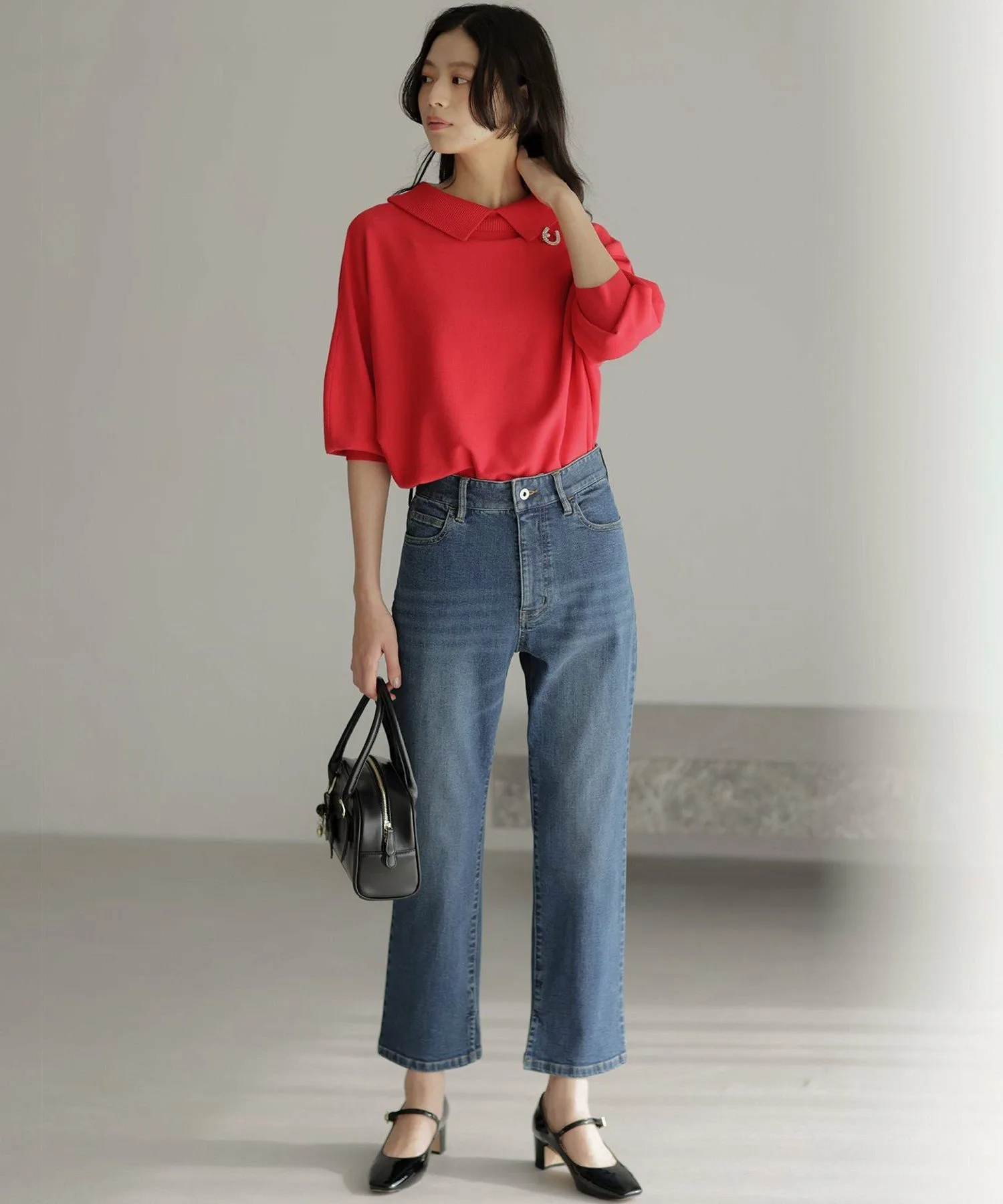 [Комментарии сотрудников]▼Рост: 158 см | Размер 2 (обычно ношу размер M) При ношении задом наперед создается воротникообразный дизайн для милого образа. Несмотря на свободный крой, длина не слишком большая, поэтому рекомендуется сочетать с расклешенной юбкой!