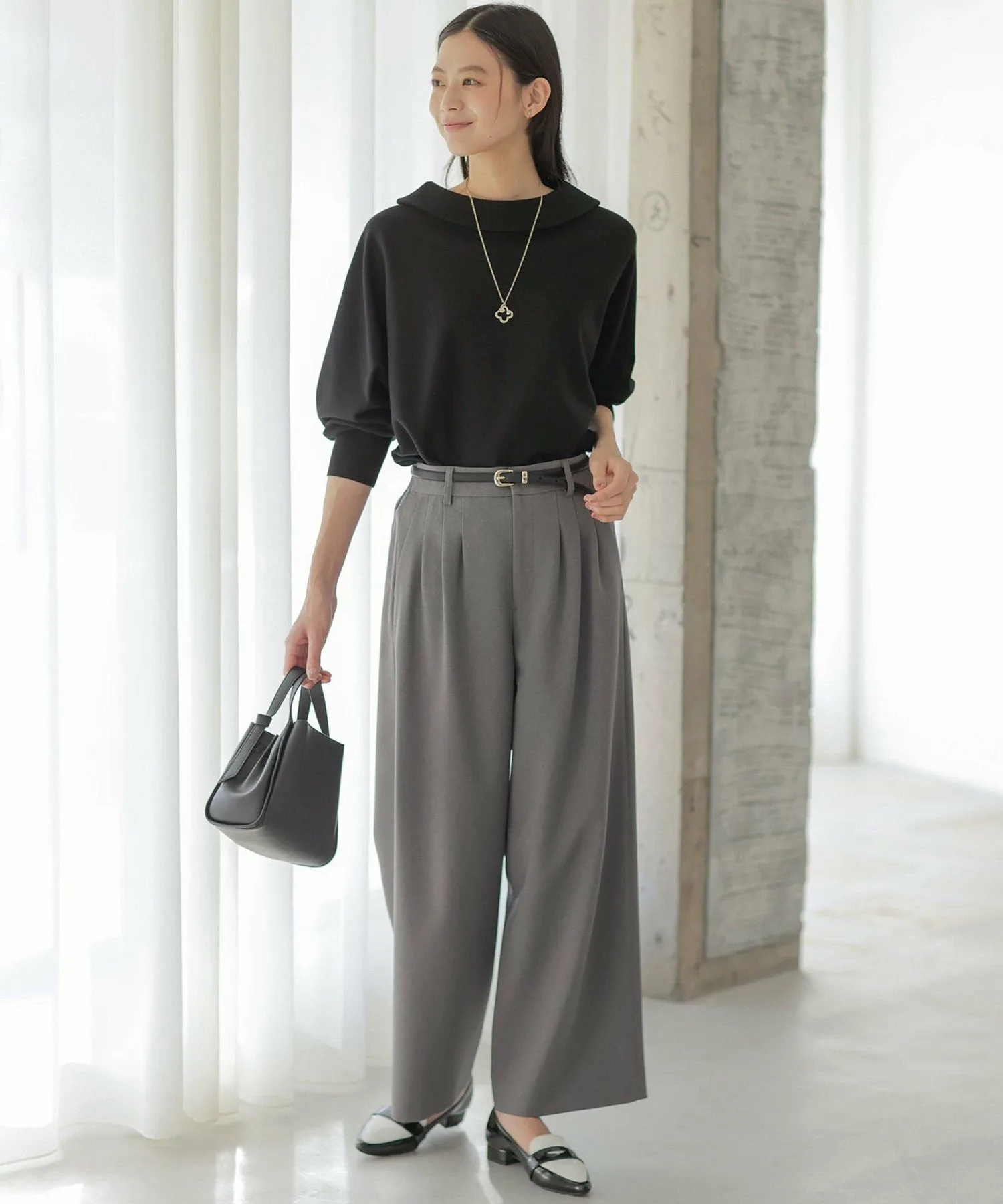 Дизайн・Трикотажный пуловер с оптимальным объемом и открытыми плечами. ・Можно носить как спереди, так и сзади, в любом случае он будет выглядеть безупречно. ・Обладает женственной мягкостью и эластичностью, но при этом имеет свободный силуэт, не подчеркивающий линии тела. ・Низ плотно прилегает и отлично смотрится, если заправить его в брюки или юбку. ・Универсальный трикотаж, который можно сочетать с самыми разными образами, от повседневных до нарядных.