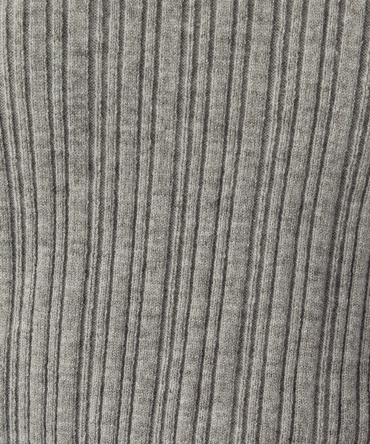 Этот трикотаж в рубчик с произвольным шагом украшен выразительной резинкой с неравномерным шагом.
