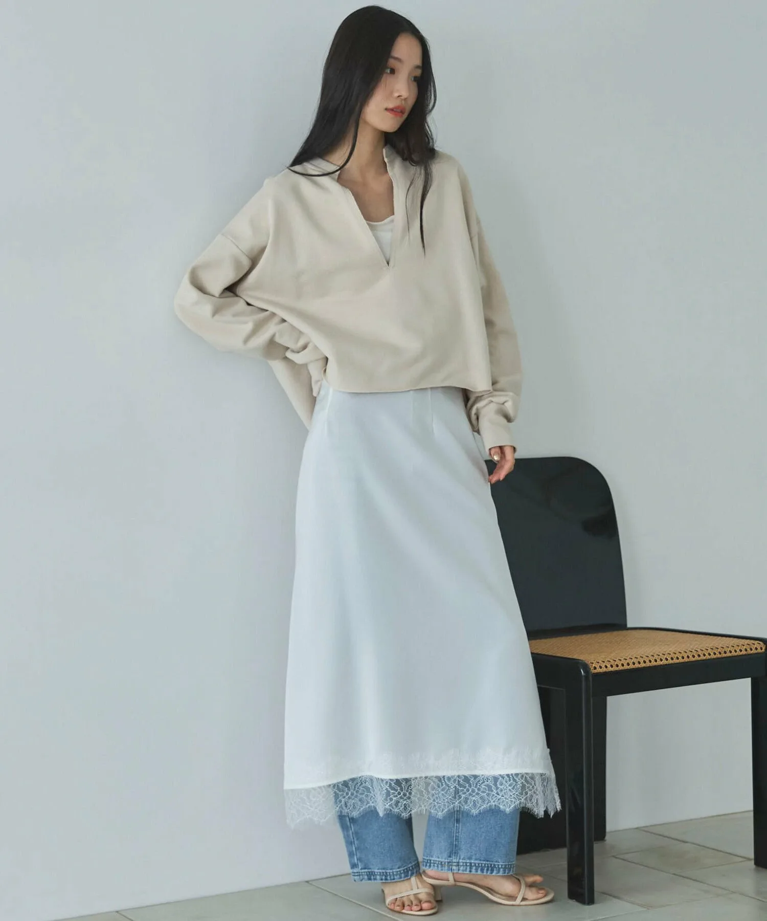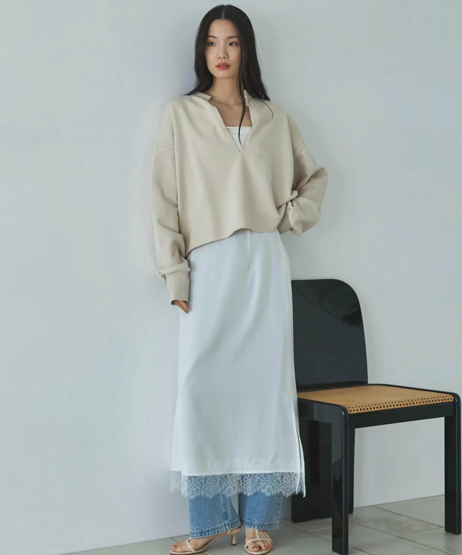 - Укороченный нижний край создает расслабленный образ, не делая его слишком повседневным