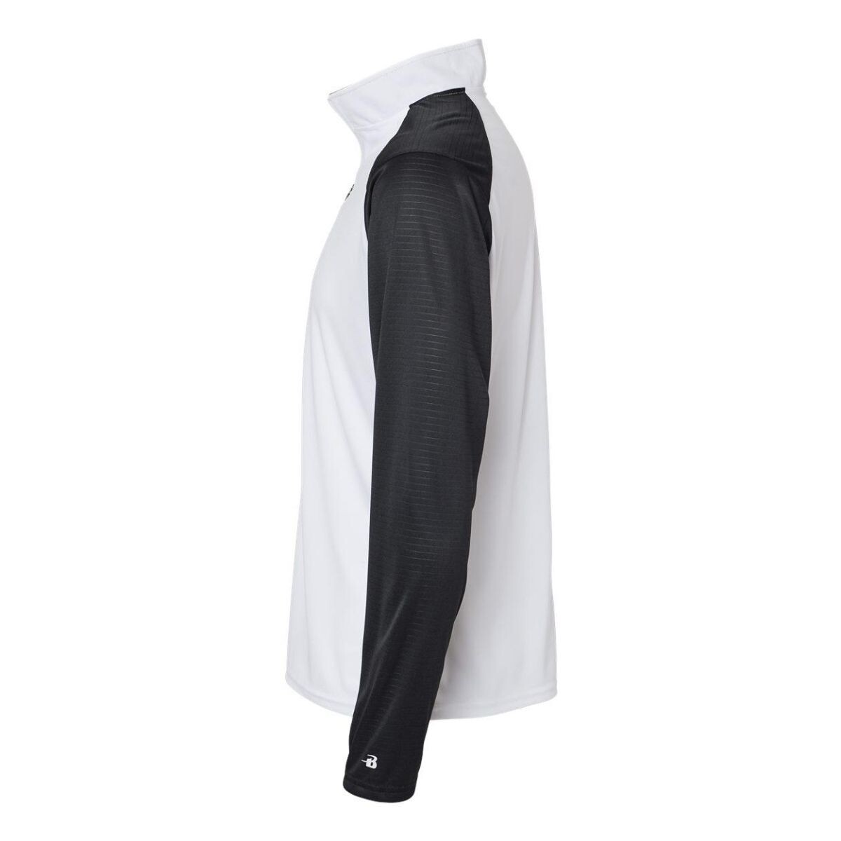Ткань из 100% полиэстера с влагоотводящими и антимикробными свойствами. Контрастные текстурированные плечи и рукава. Воротник из ткани с 8 замками-молниями. Спортивное плечо Badger для максимального движения. Воротник самодельный из ткани. Двойная игла. Термосвариваемый логотип Badger на левом рукаве.