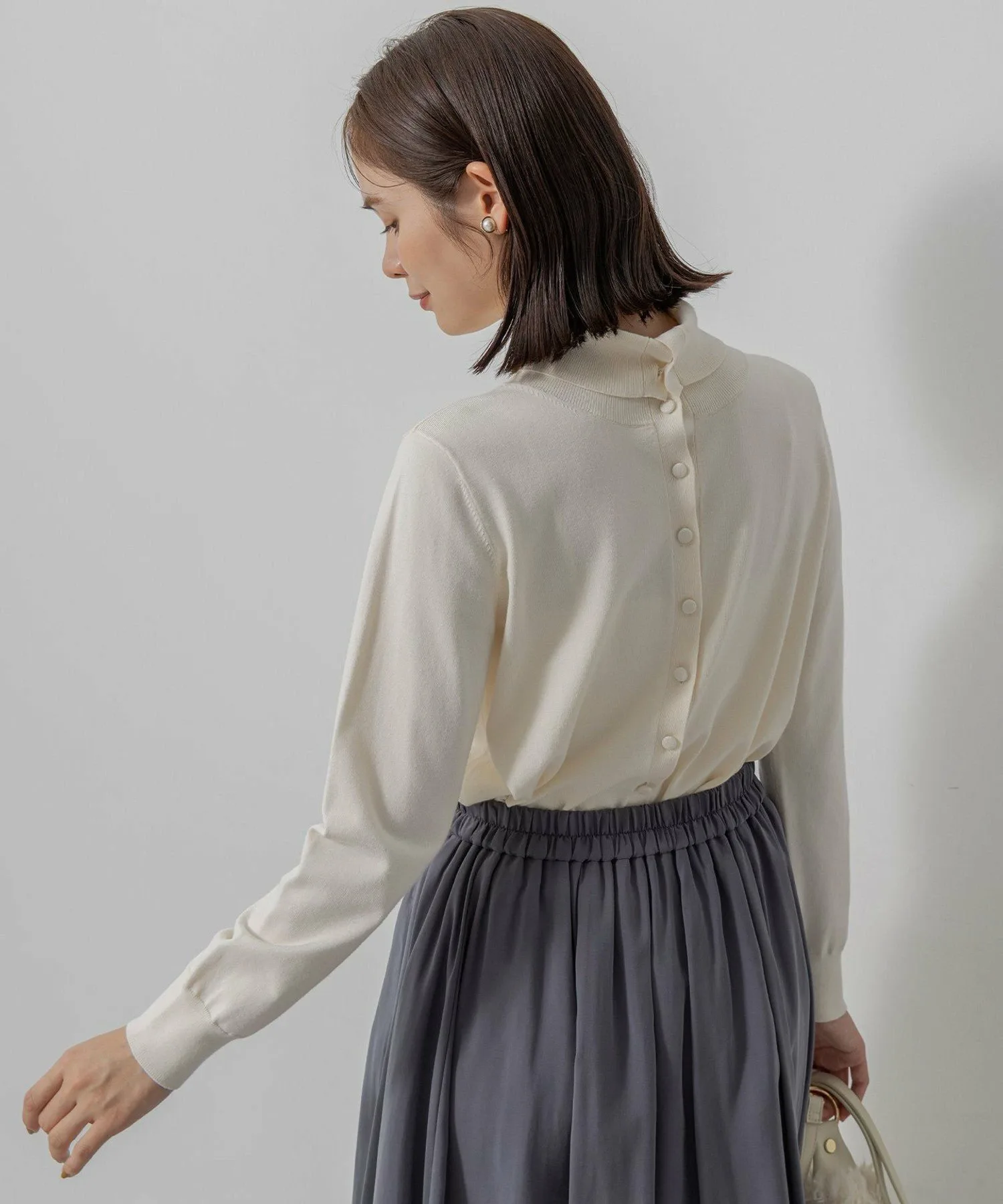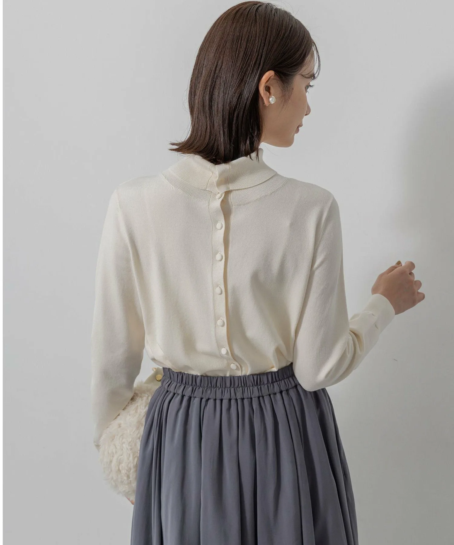 Дизайн: Мы сосредоточились на идеальном балансе между слегка свободным кроем, который немного отходит от тела, и привлекательной линией шеи и плеч. Дополнительные пуговицы в тон спереди и длинные манжеты из того же материала добавляют простой, но милый штрих. Ее можно носить спереди или сзади, создавая разнообразные образы. Ее можно носить как самостоятельно, так и в качестве нижнего слоя или кардигана. Идеальная длина, чуть ниже бедер, хорошо сочетается с любыми брюками или юбками.