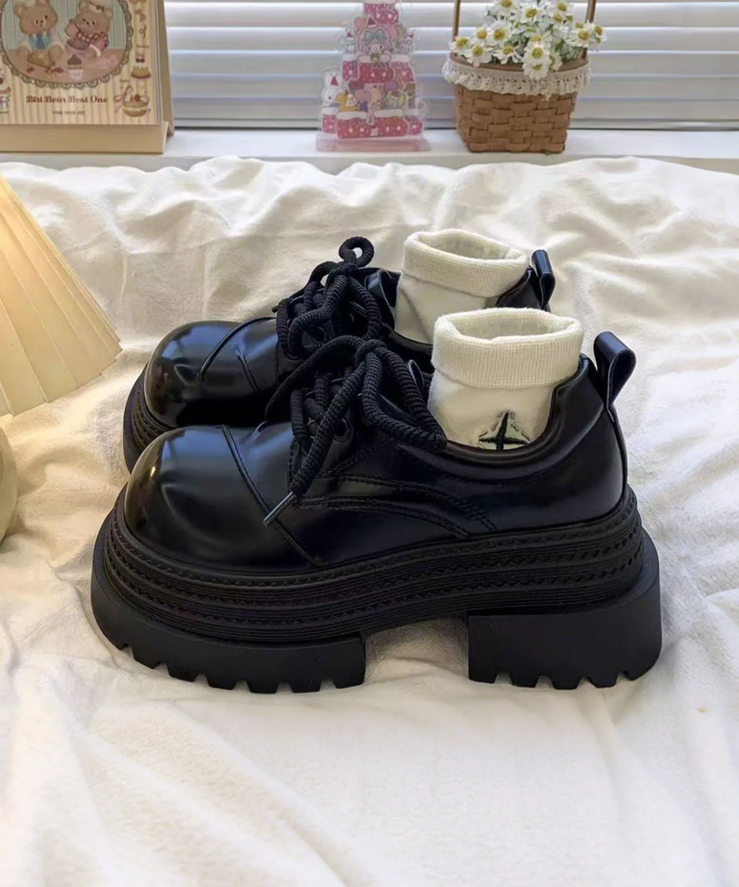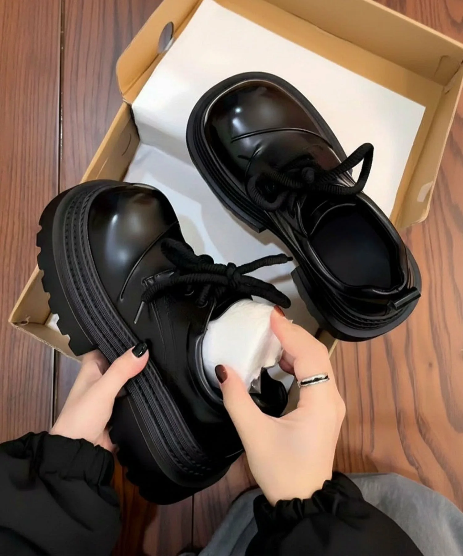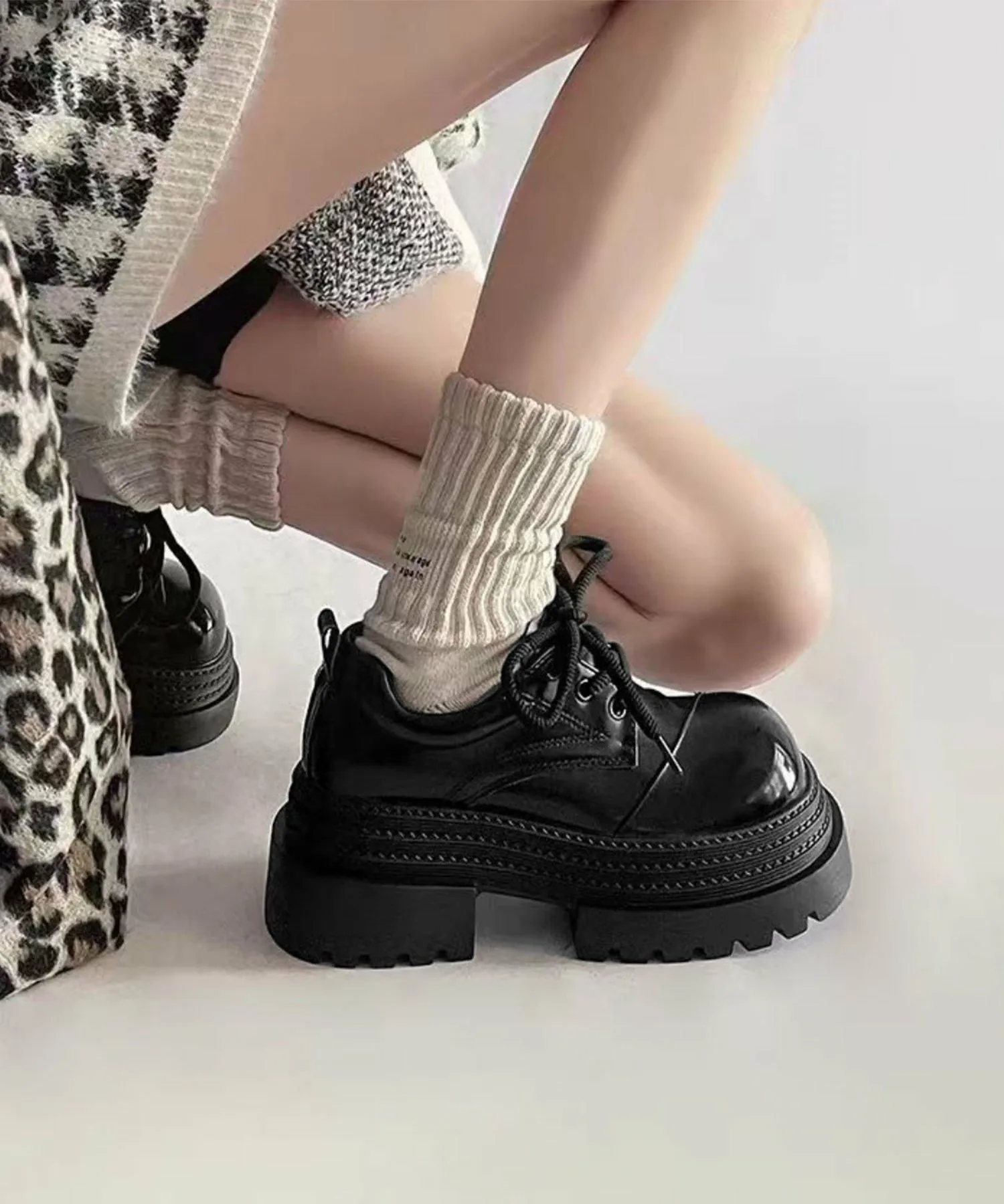 Туфли на платформе со шнуровкой и объемной подошвой, излучающие винтажный стиль.