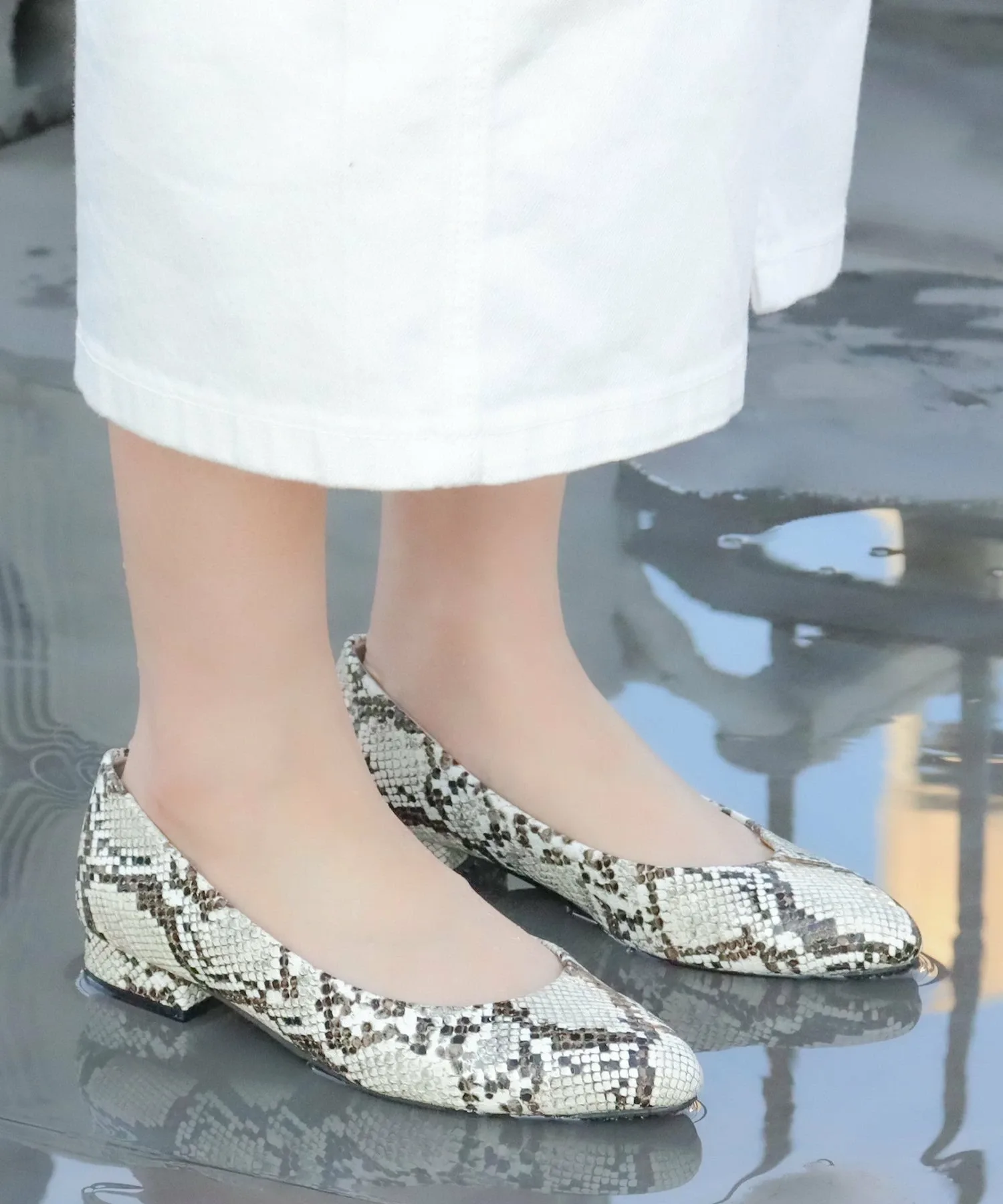 Эти туфли на низком каблуке с острым носком