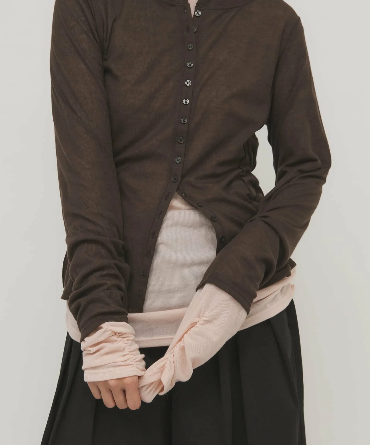 Популярная в прошлом году двухцветная многослойная сшитая модель была переработана и теперь возвращается в весенних цветах. Мягкий, комфортный материал и сборки по бокам рукавов и подола также являются изюминкой. Цветовая гамма привлекает внимание, и, просто добавив ее в свой стиль, вы можете создать модный образ.
