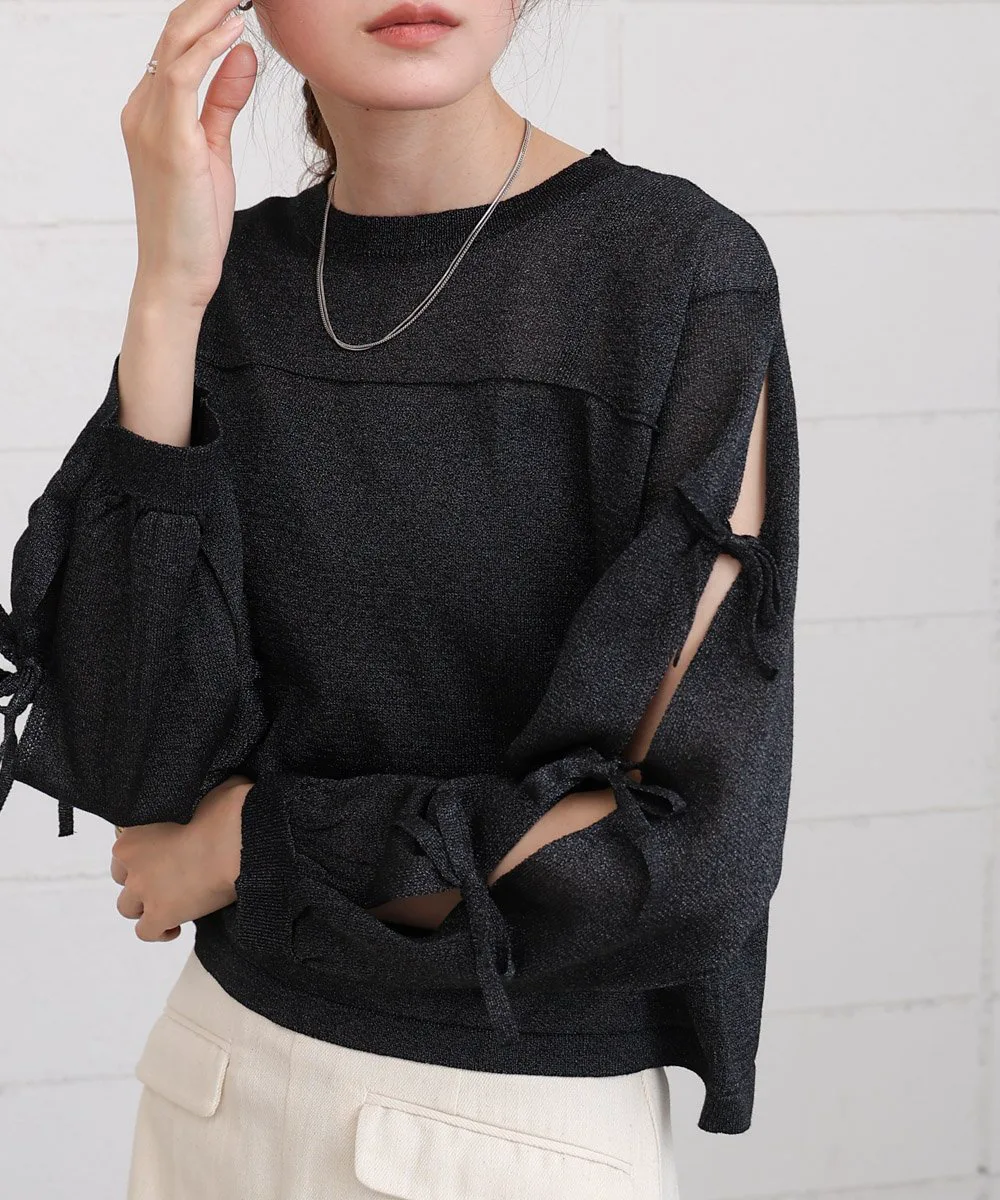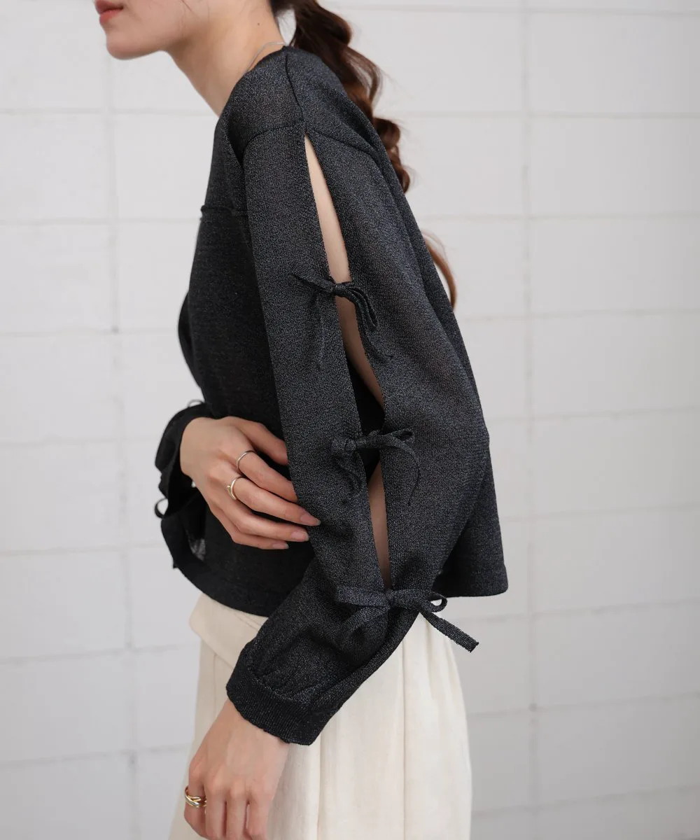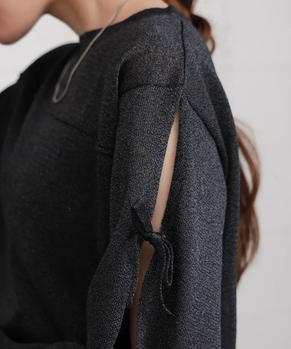 POINTЭтот вязаный топ имеет полупрозрачную текстуру и открытые рукава, что придает ему изысканный вид и делает его удобным в ношении даже для тех, кто не любит демонстрировать кожу. Умеренная прозрачность и легкий блеск пряжи создают освежающее впечатление, идеально подходящее для весны и лета. Ленты на рукавах добавляют элегантности, а компактный круглый вырез и легкие блестящие акценты создают утонченный образ, не будучи приторно-сладкими.