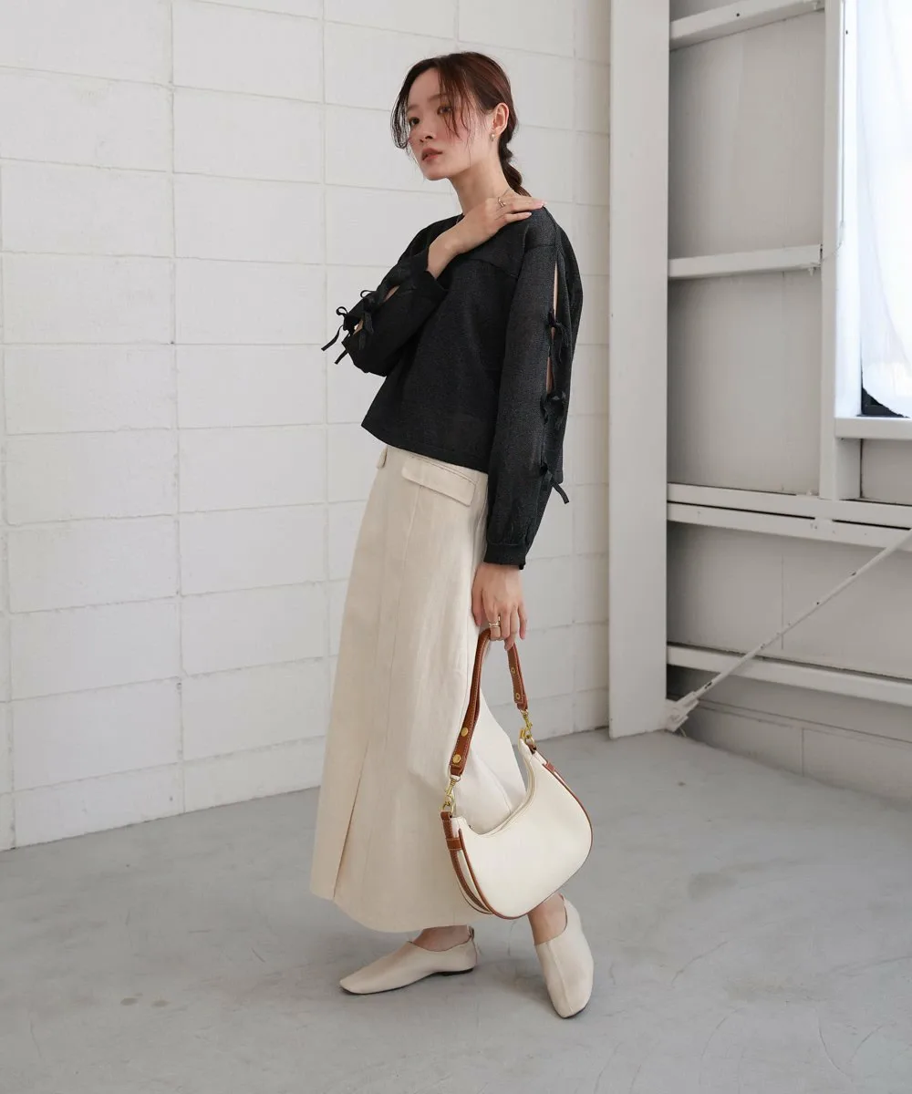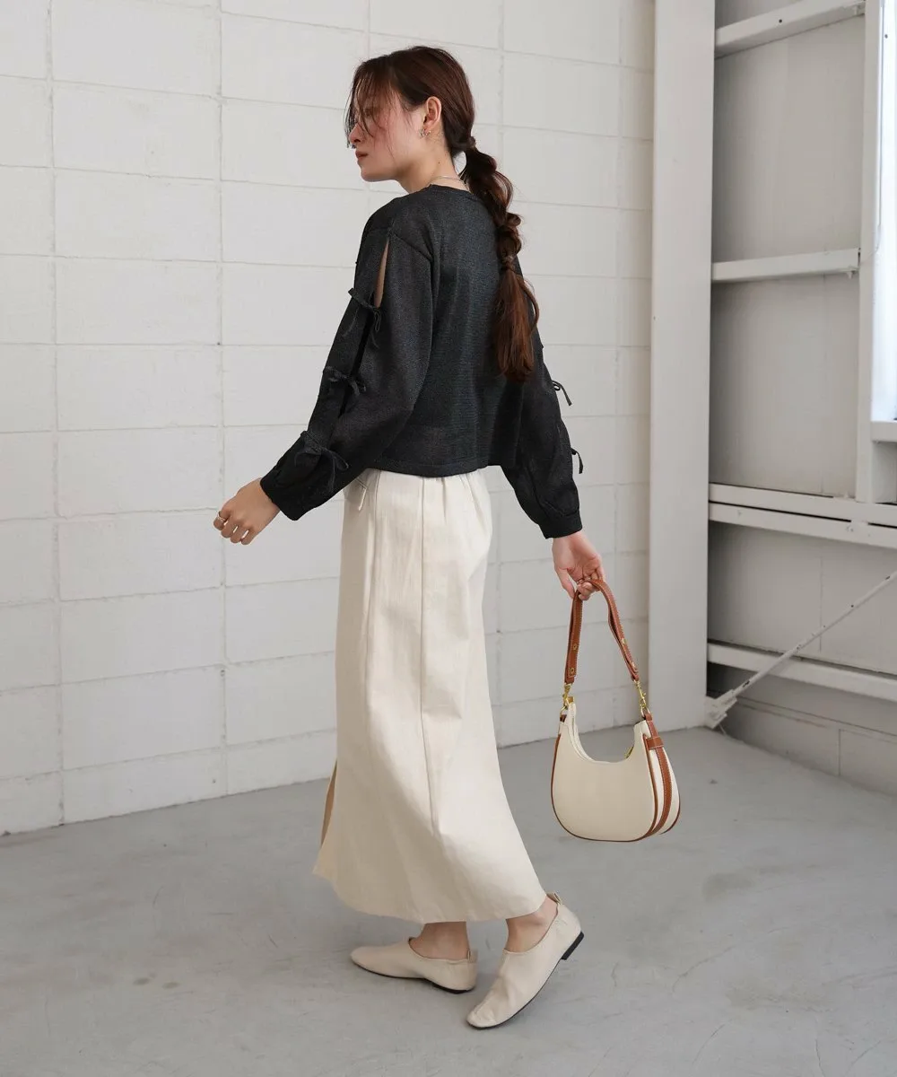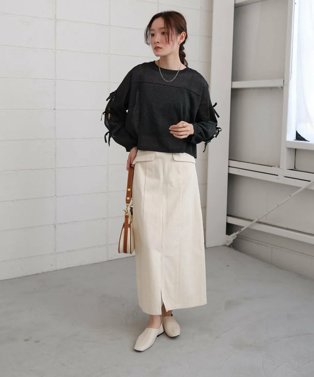 POINTЭтот вязаный топ имеет полупрозрачную текстуру и открытые рукава, что придает ему изысканный вид и делает его удобным в ношении даже для тех, кто не любит демонстрировать кожу. Умеренная прозрачность и легкий блеск пряжи создают освежающее впечатление, идеально подходящее для весны и лета. Ленты на рукавах добавляют элегантности, а компактный круглый вырез и легкие блестящие акценты создают утонченный образ, не будучи приторно-сладкими.