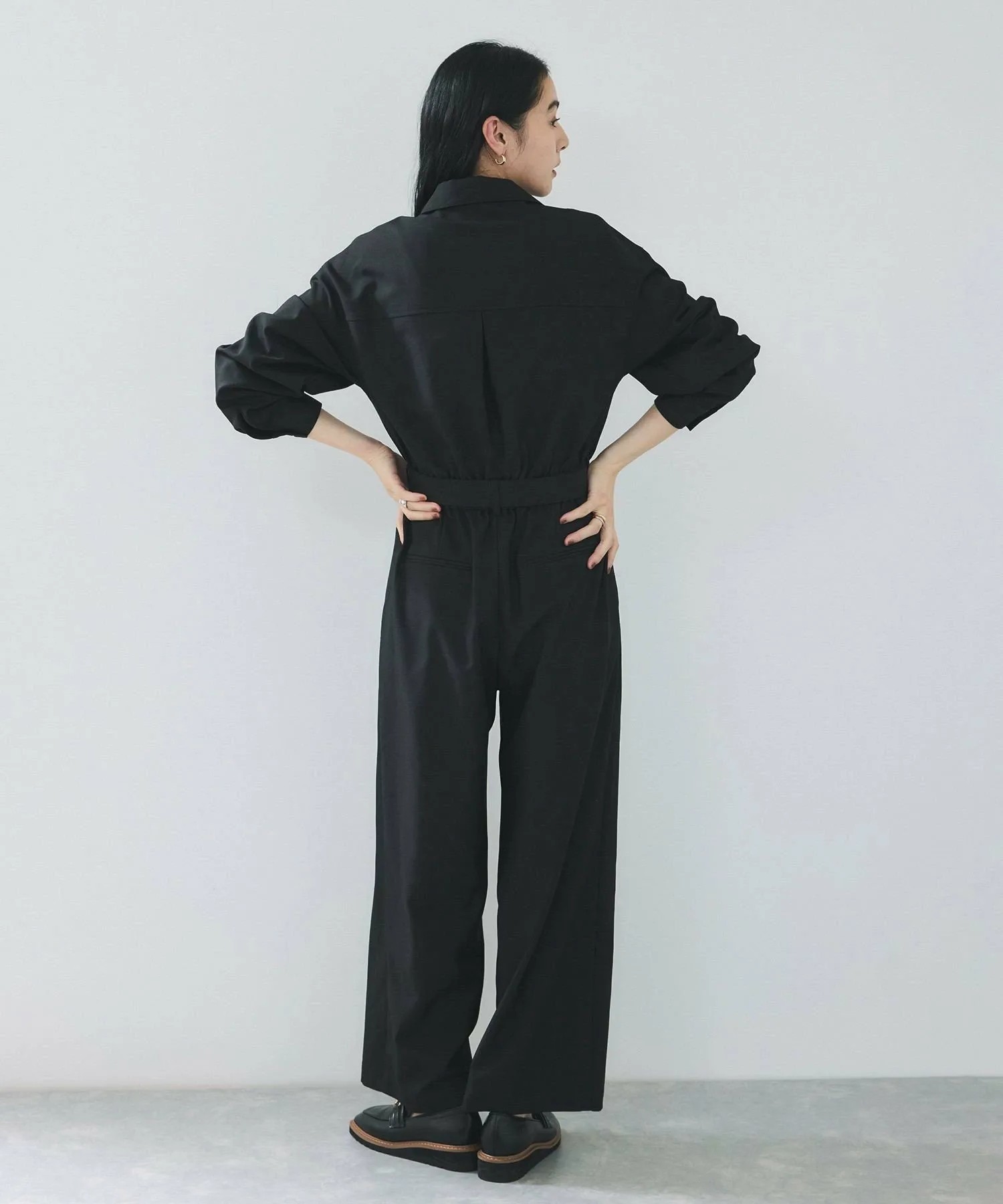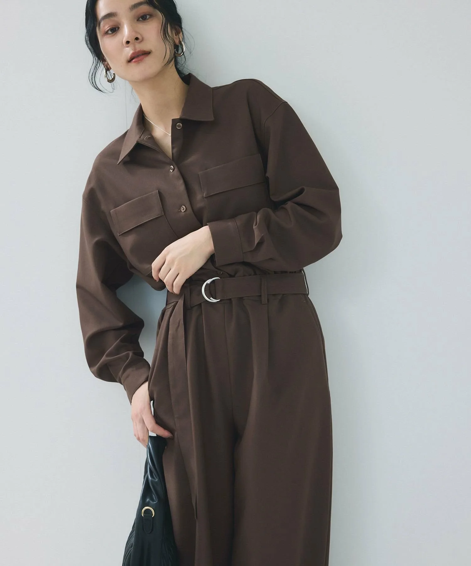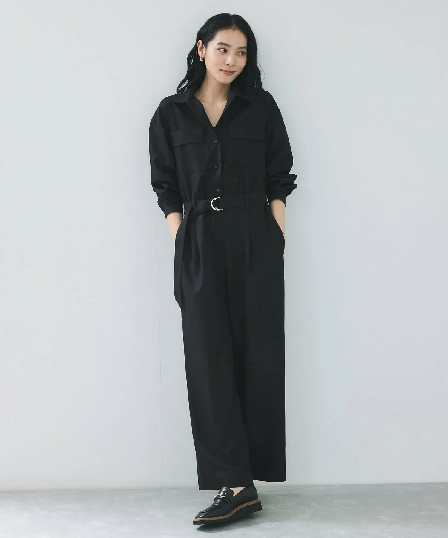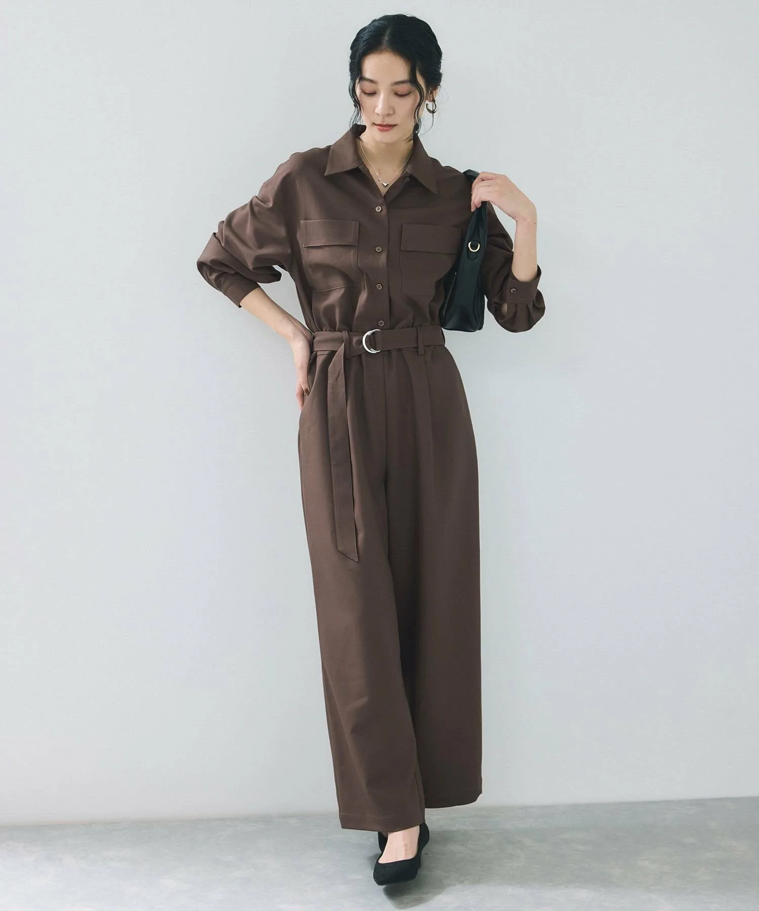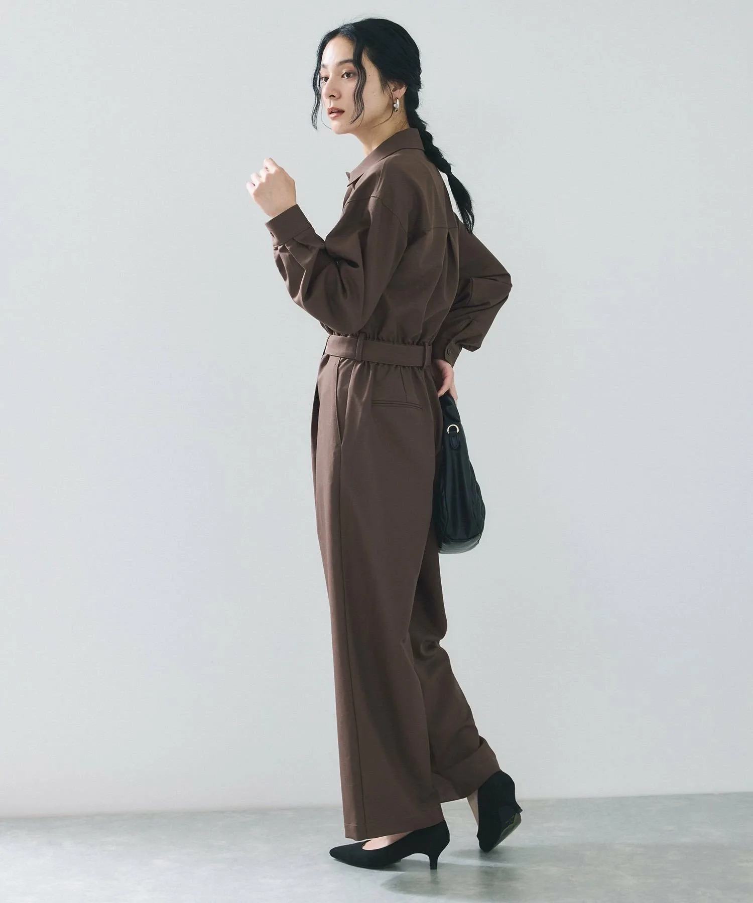 [Дизайн и силуэт] Этот комбинезон мгновенно создает изысканный образ, не требуя подбора сочетаний. Красивый, широкий силуэт, не подчеркивающий фигуру, и пояс, подчеркивающий талию, создают четкий силуэт и улучшают ваш стиль. Текстура, силуэт и вырез воротника создают изысканный, но не слишком приторный образ.