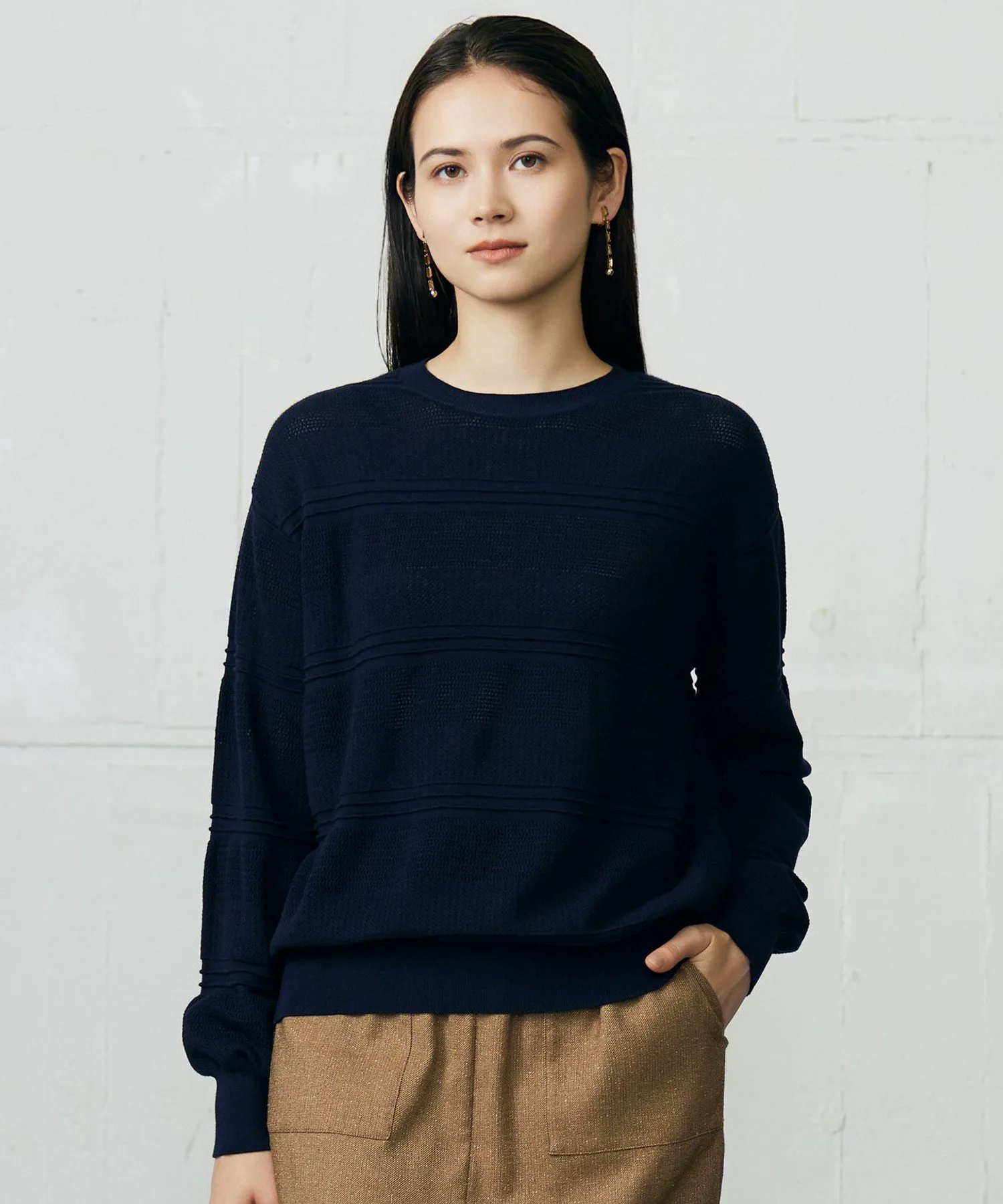 Вязаное изделие с простым, удобным ажурным узором. Дизайн: Это вязаное изделие имеет геометрический ажурный узор, который придает ему слегка стильный вид. Его сдержанный дизайн делает его базовой вещью, которую легко можно включить в самые разные стили. Материал: Смесь высококачественной, нежной шерсти и хлопка. Чтобы уменьшить пушистость, характерную для хлопка, ткань была обработана для удаления ворса с поверхности. Эта полукамвольная пряжа обеспечивает чистое, пушистое и легкое ощущение. Шерсть также была мерсеризована для удаления ворса и создания чистой отделки, что делает ее подходящей для длительного ношения, даже в жаркое время года.