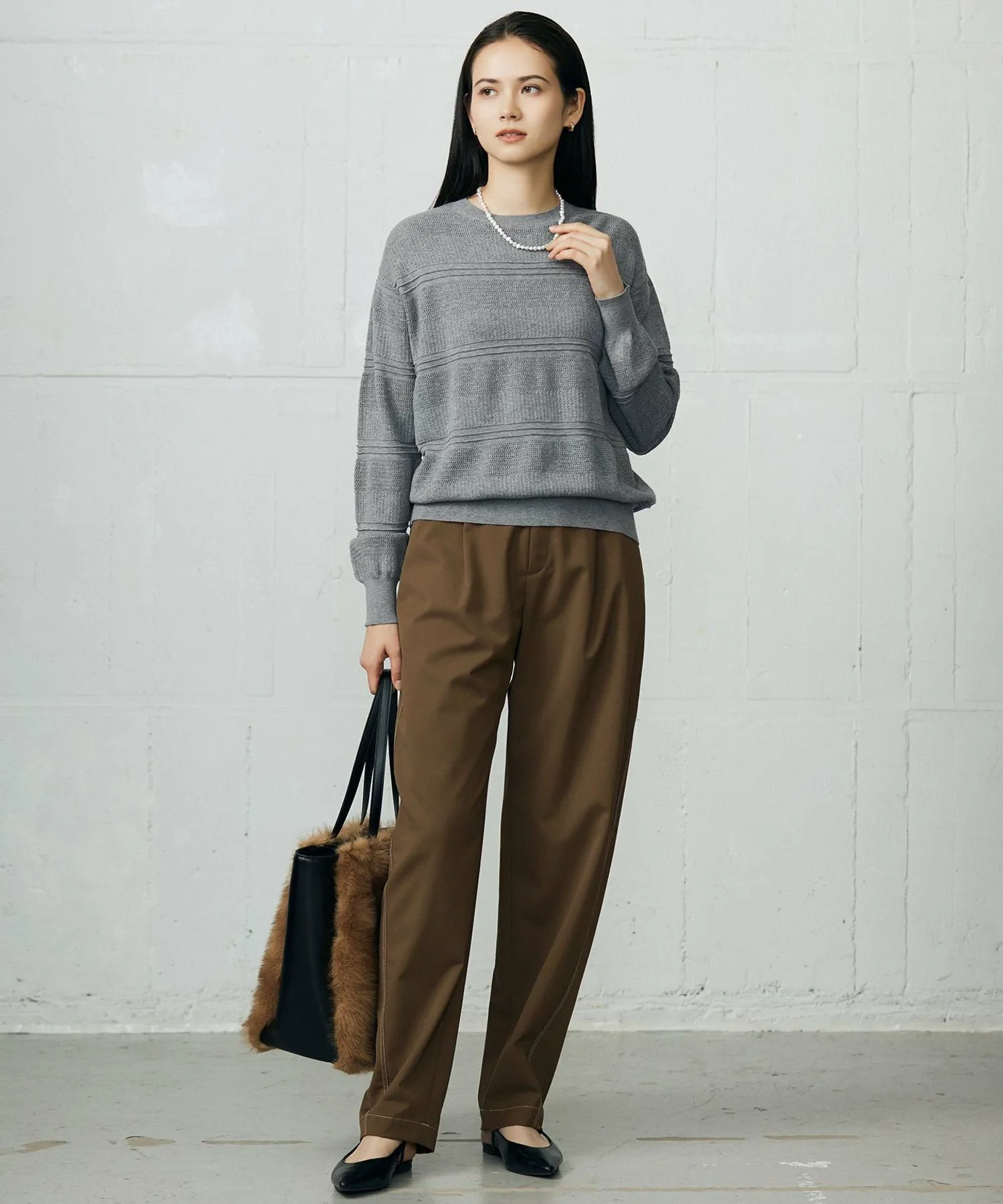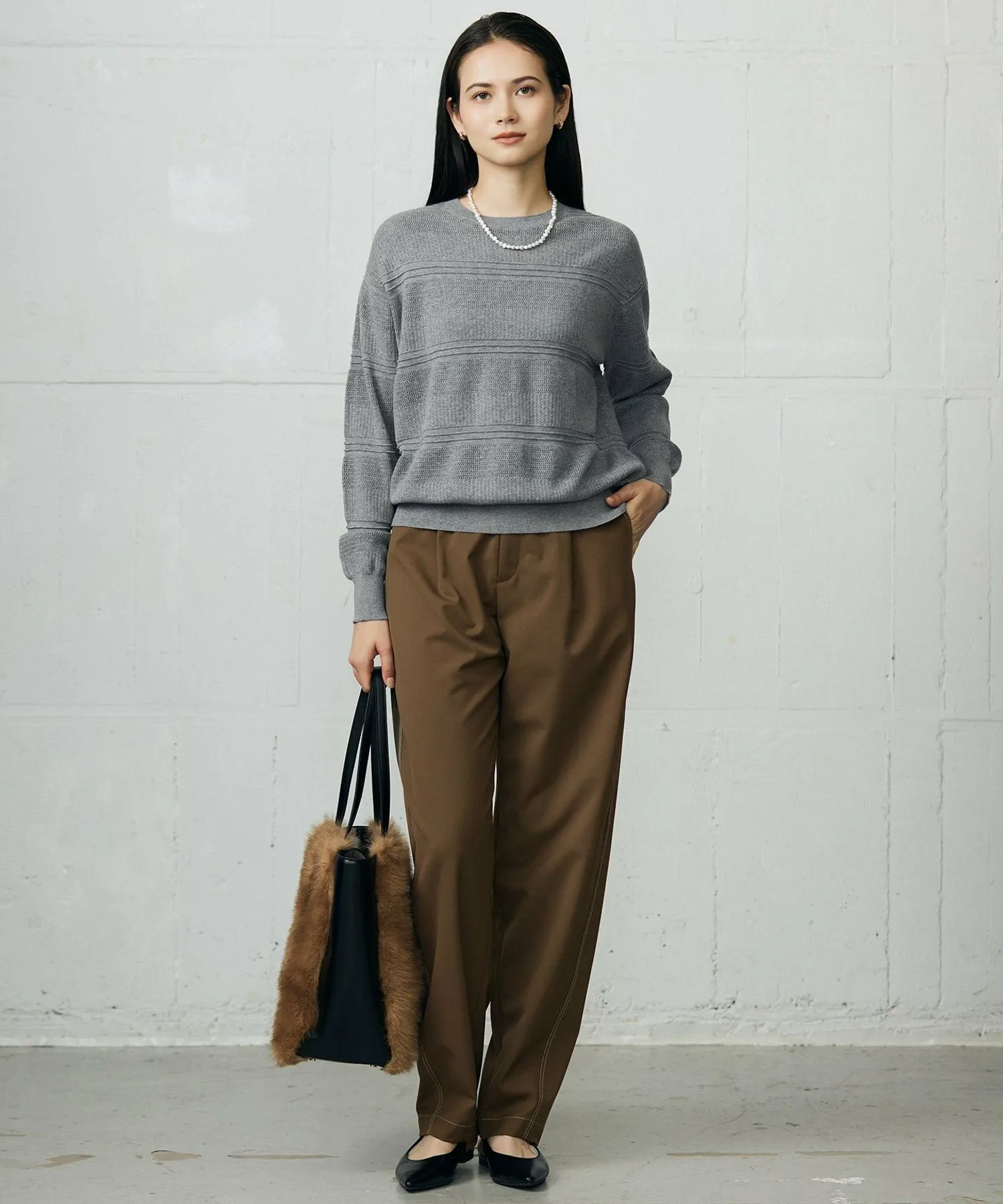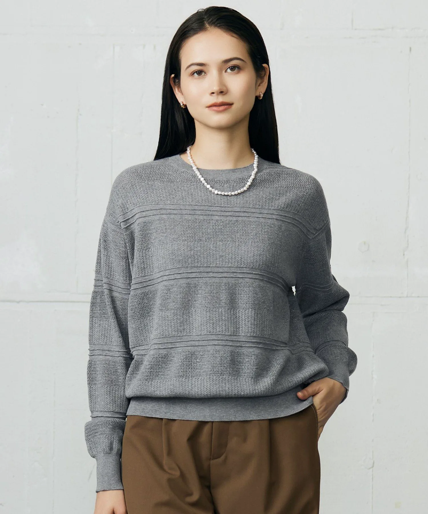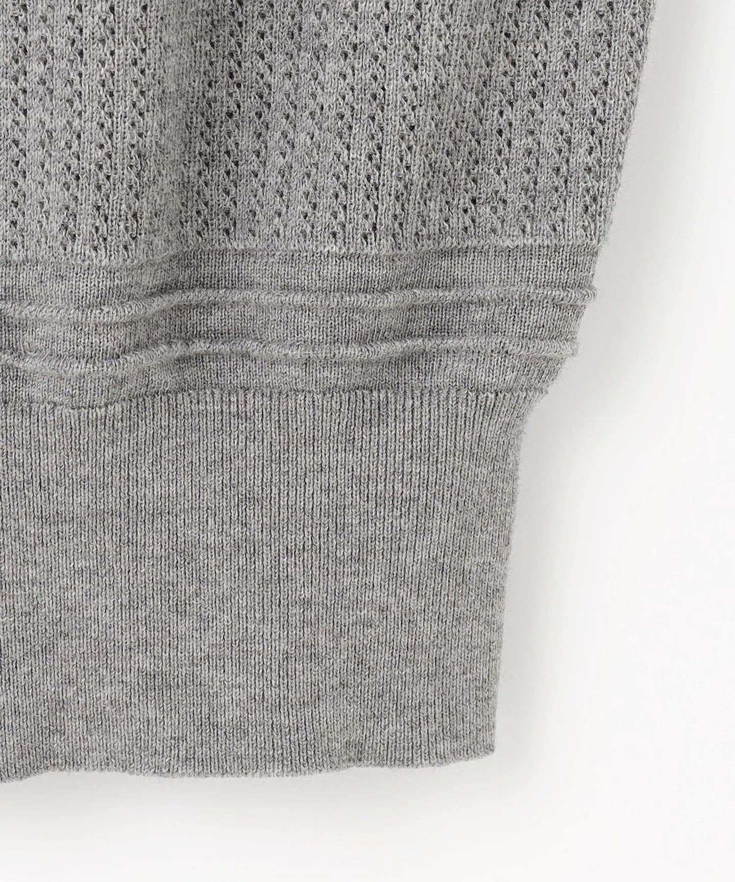 Вязаное изделие с простым, удобным ажурным узором. Дизайн: Это вязаное изделие имеет геометрический ажурный узор, который придает ему слегка стильный вид. Его сдержанный дизайн делает его базовой вещью, которую легко можно включить в самые разные стили. Материал: Смесь высококачественной, нежной шерсти и хлопка. Чтобы уменьшить пушистость, характерную для хлопка, ткань была обработана для удаления ворса с поверхности. Эта полукамвольная пряжа обеспечивает чистое, пушистое и легкое ощущение. Шерсть также была мерсеризована для удаления ворса и создания чистой отделки, что делает ее подходящей для длительного ношения, даже в жаркое время года.