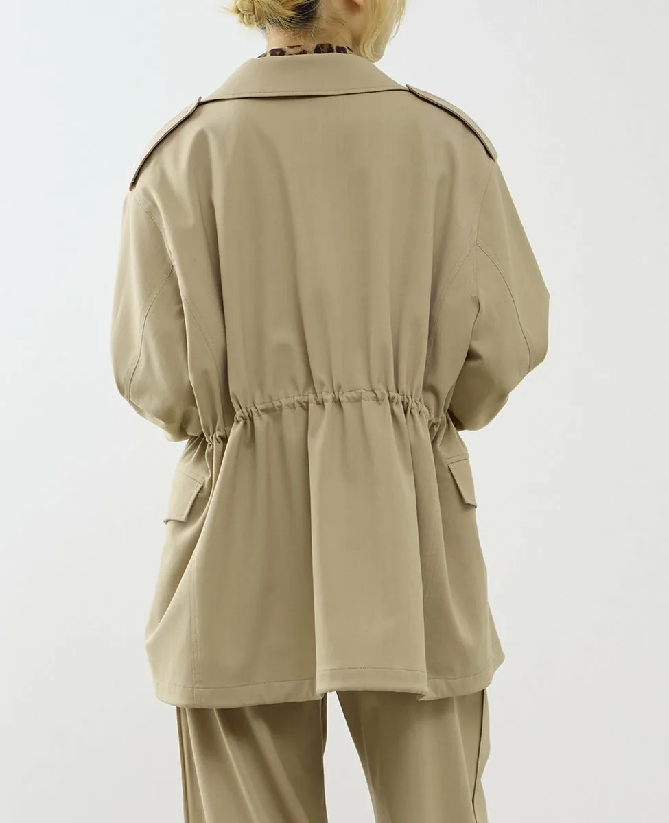 Военная куртка-блузон из гладкого материала, которую можно быстро надеть в зависимости от сезона.