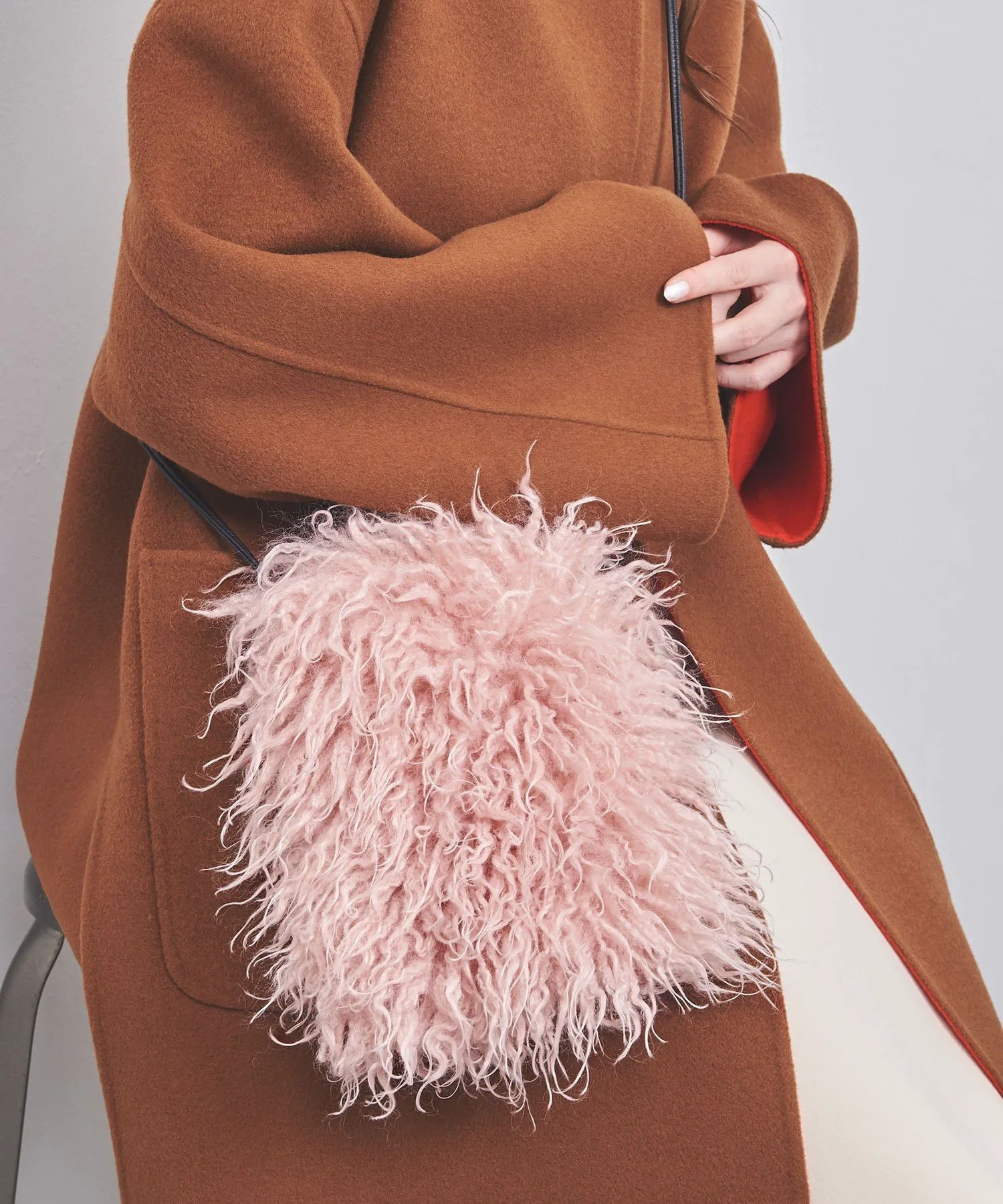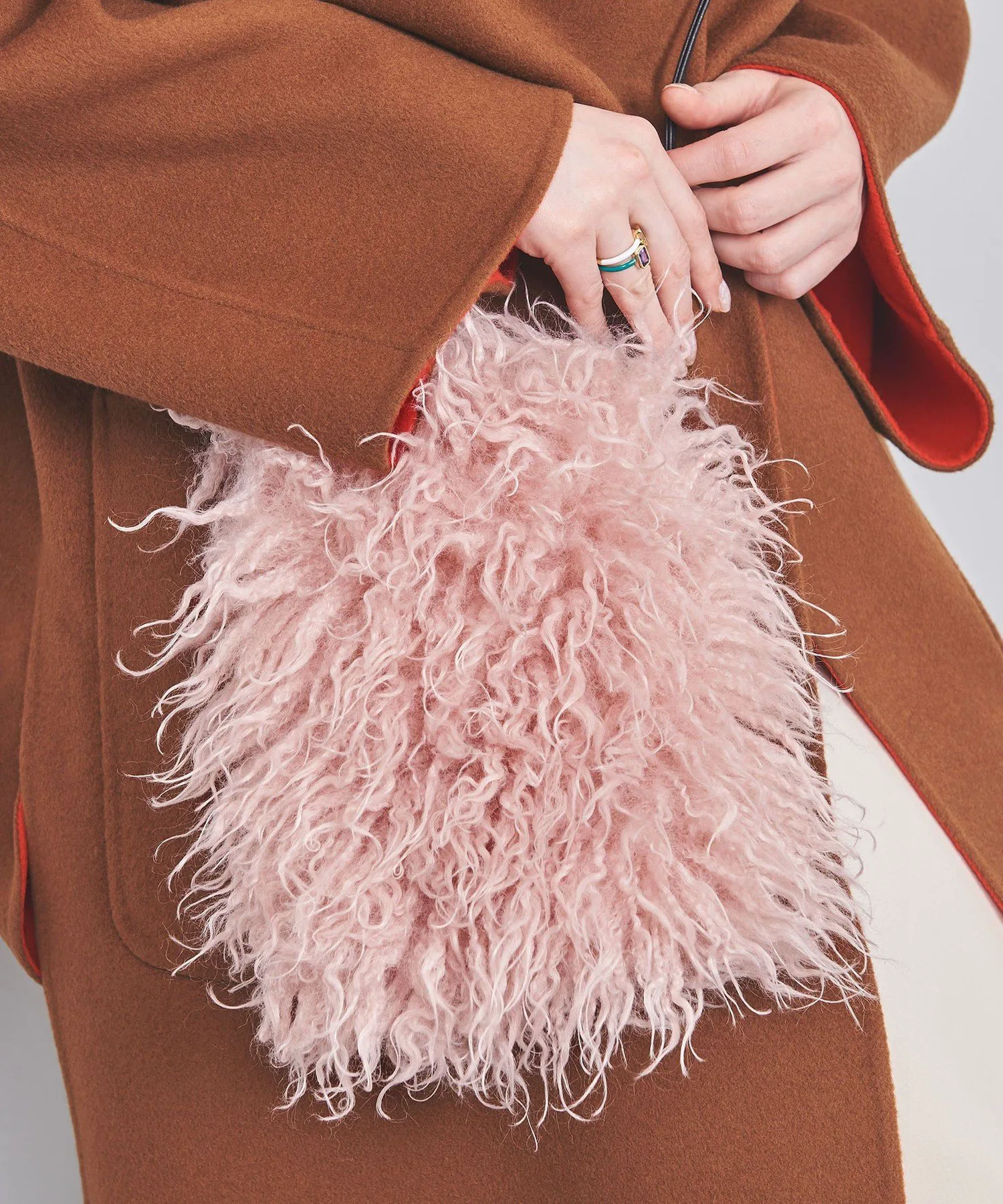 Вместительная мини-сумочка из искусственного меха, напоминающего мех ягненка Kargool, с длинным ворсом.