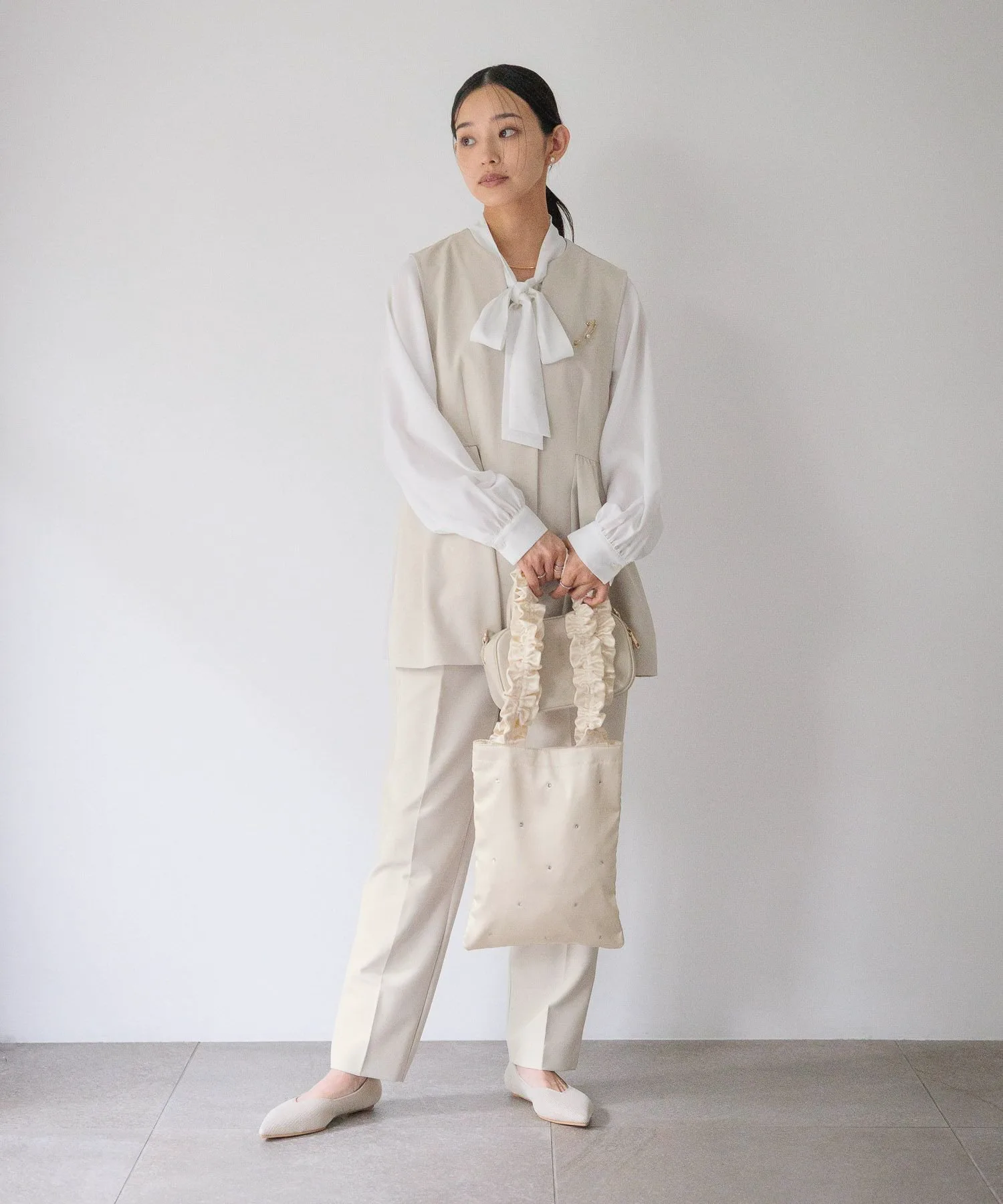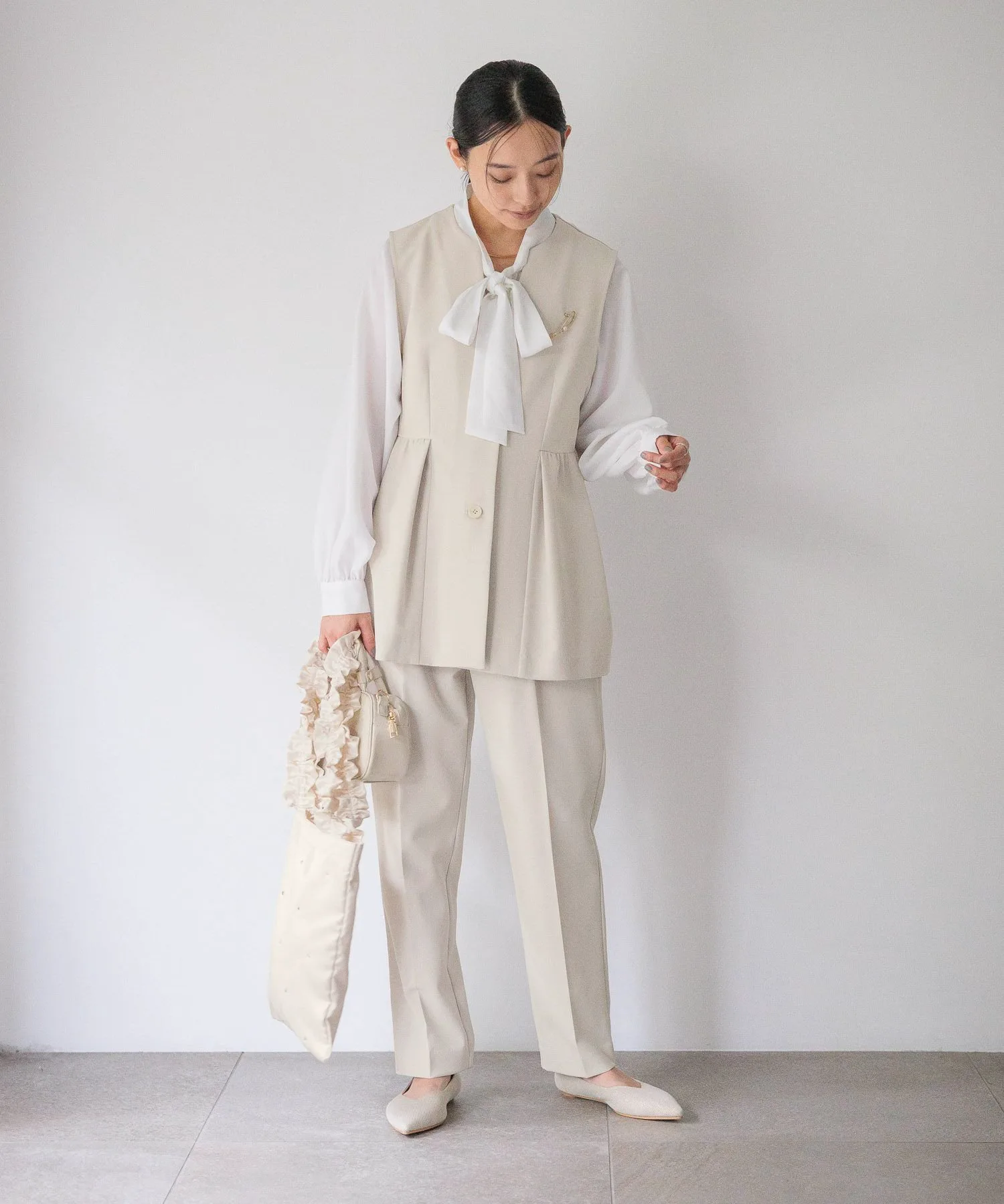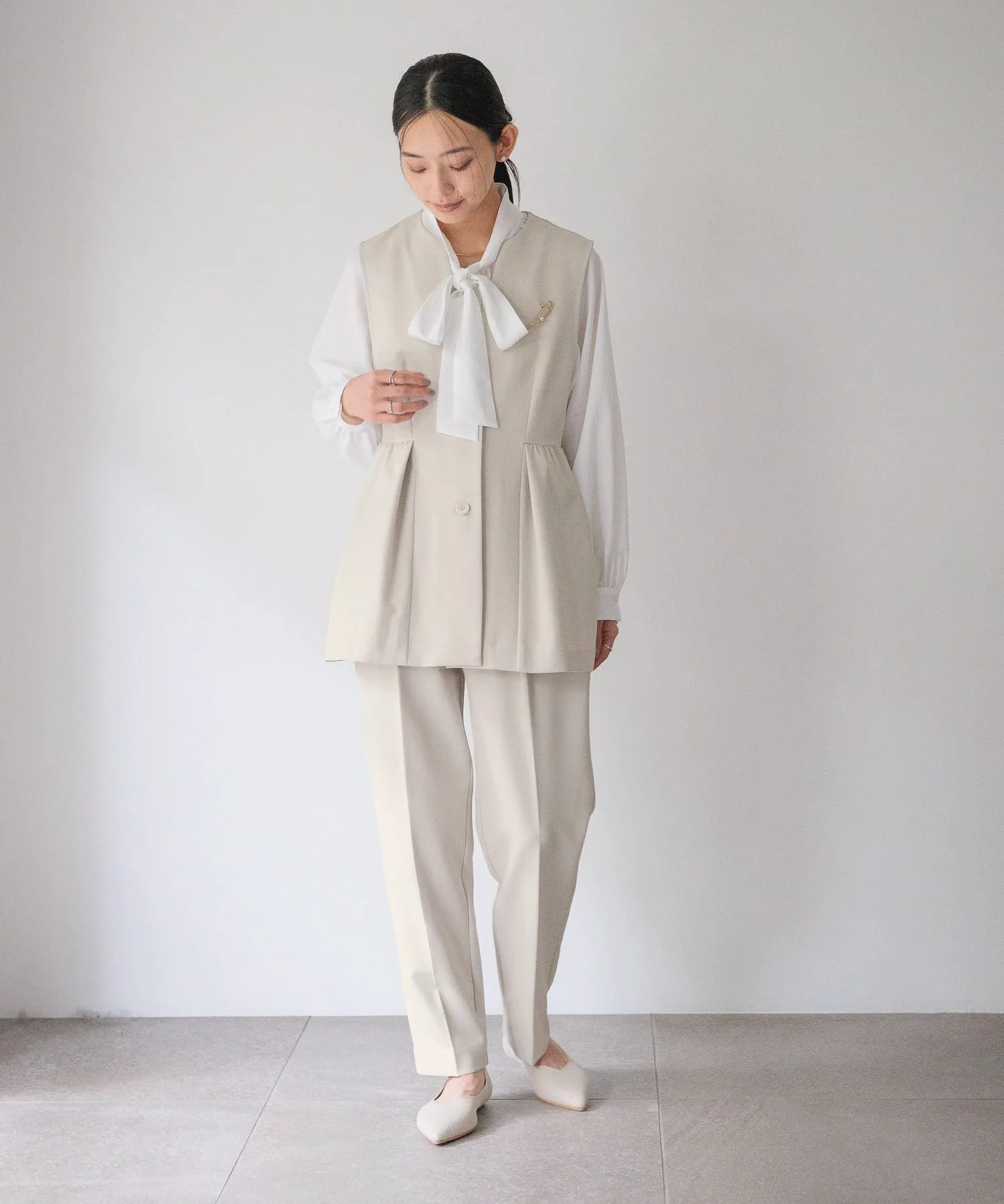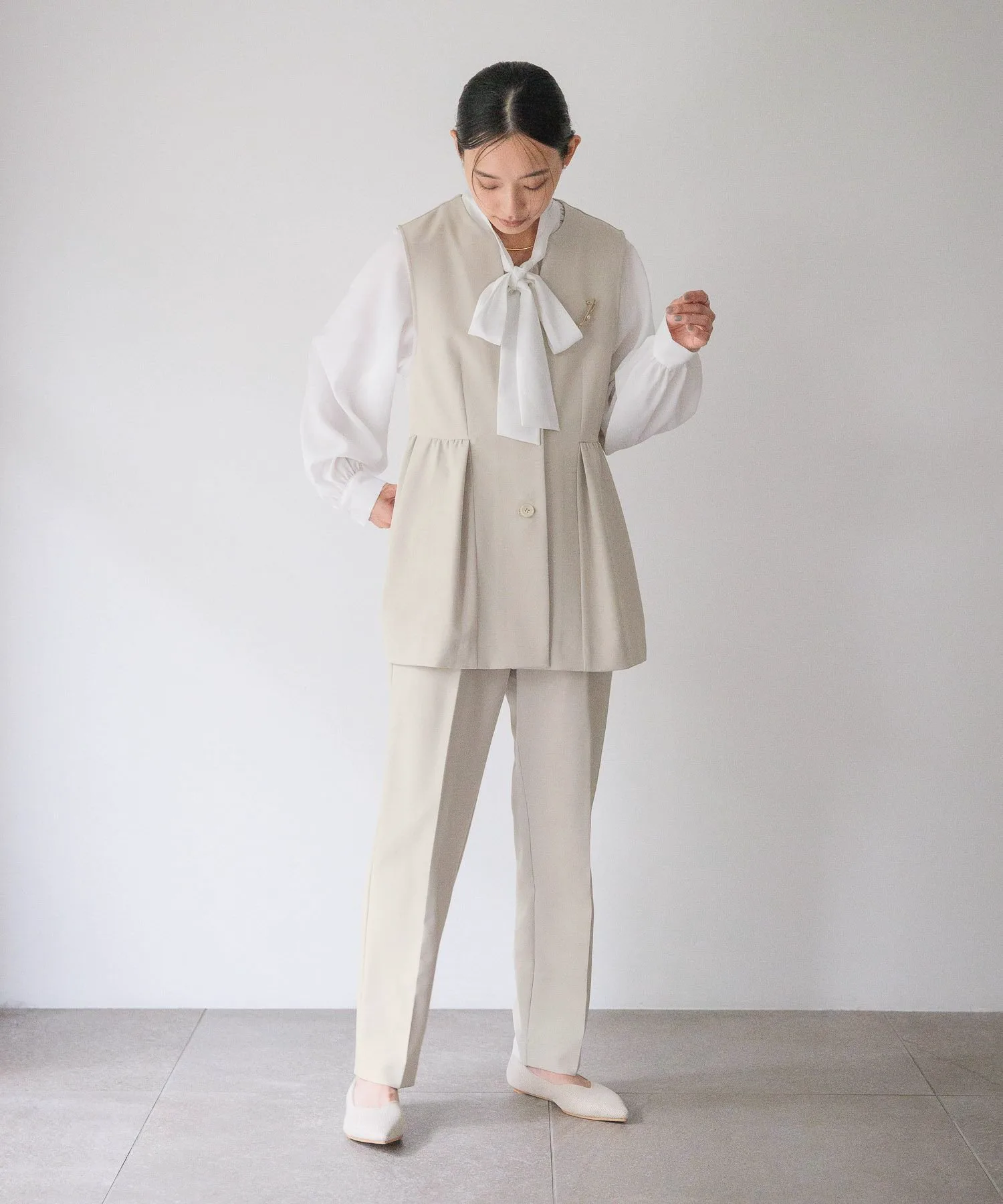 Этот жилет имеет элегантный силуэт с баской благодаря расклешенным складкам ниже талии.