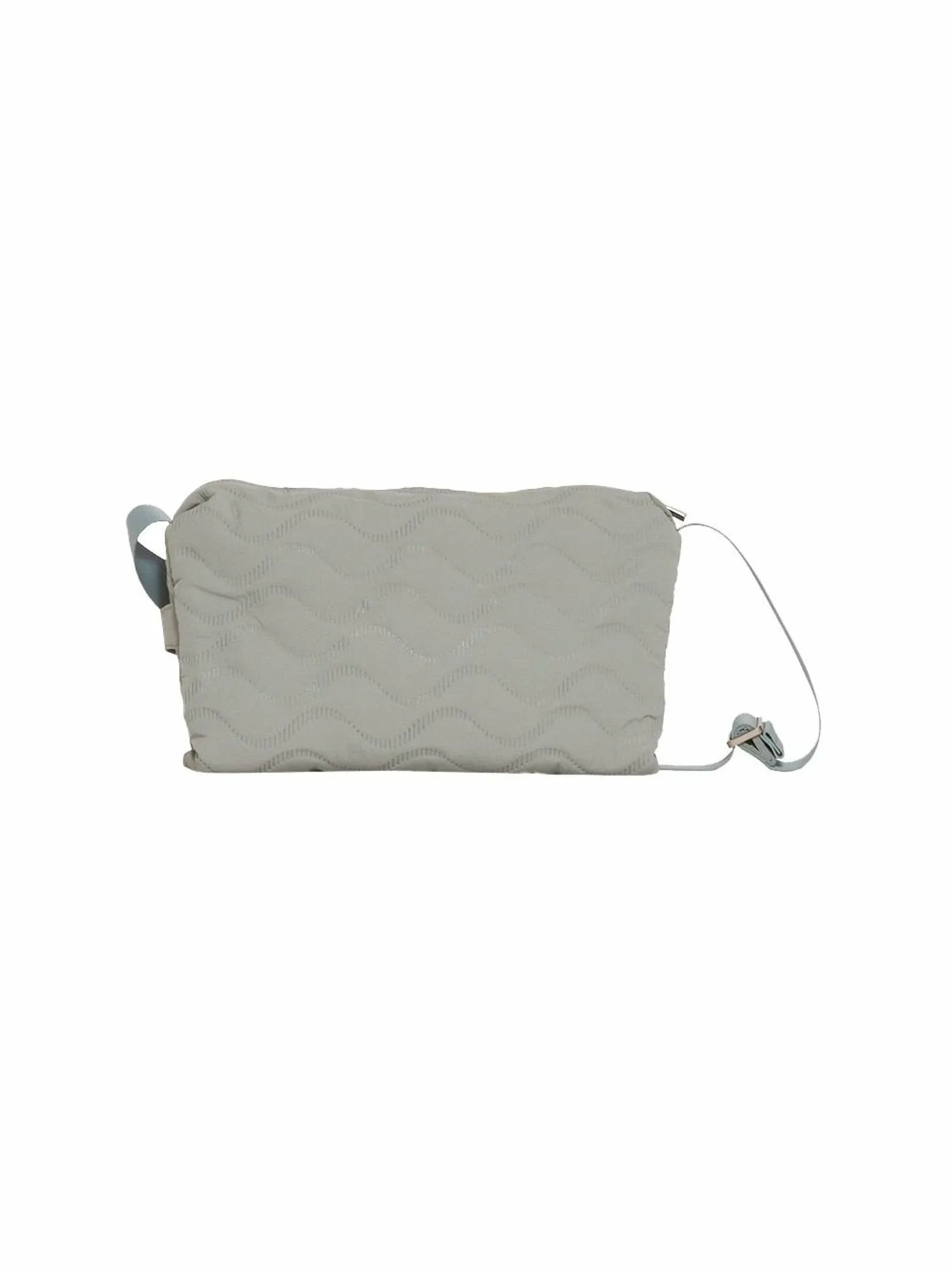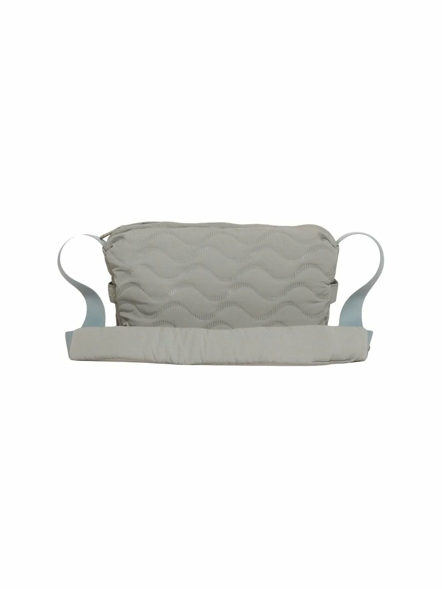 Волнообразный узор, вдохновленный расслабленной атмосферой сезона, нанесен на всю ткань с помощью технологии пинсонической обработки. Этот метод использует термосварку вместо швейной машины, что обеспечивает гладкую поверхность, отсутствие торчащих ниток и чистый, четкий узор. Повседневная, но элегантная цветовая гамма создает сдержанное впечатление.