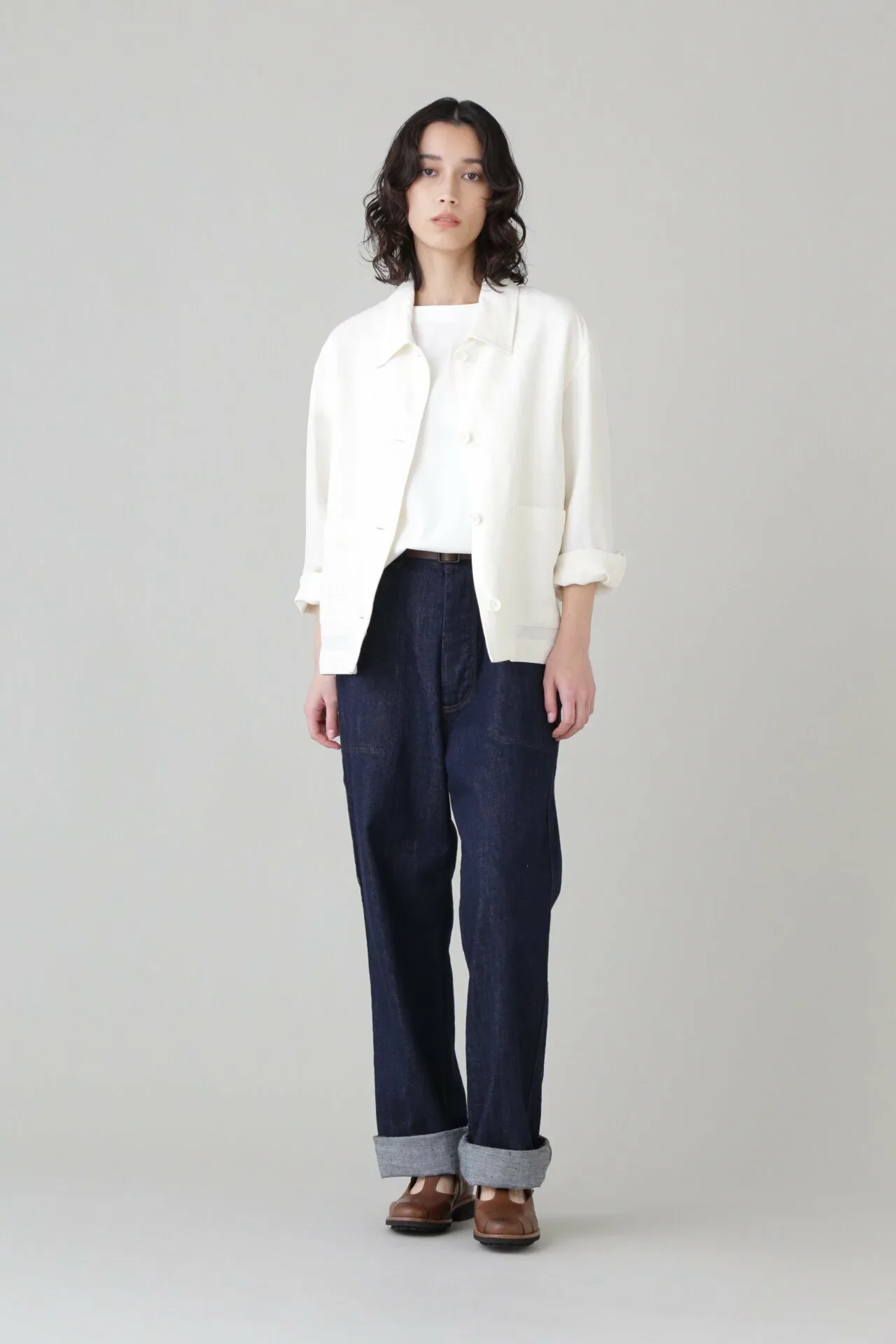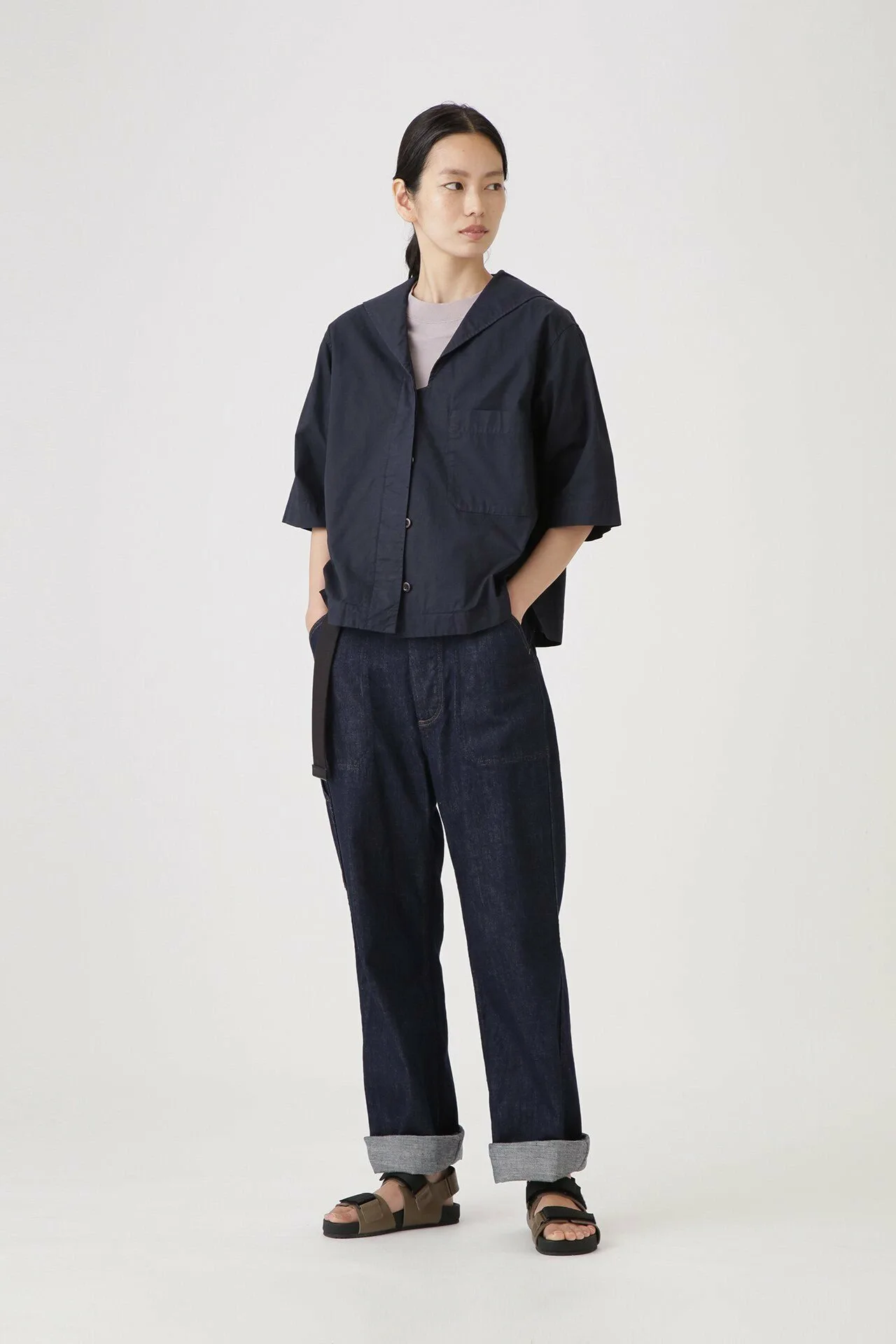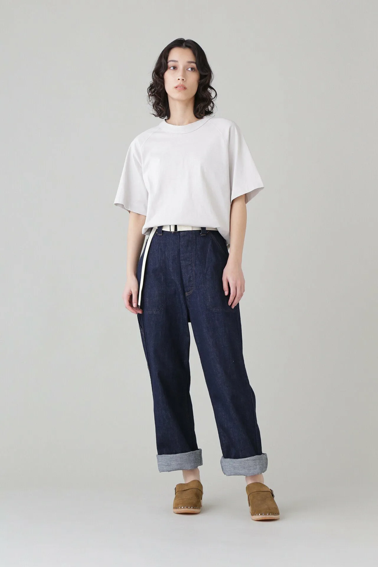 Тонкий, но объемный, прочный деним плотностью 100 г/м² с плотной текстурой. Отличительные детали, такие как регулируемые застежки на поясе и прошитые карманы. Глубокая посадка для современного силуэта.