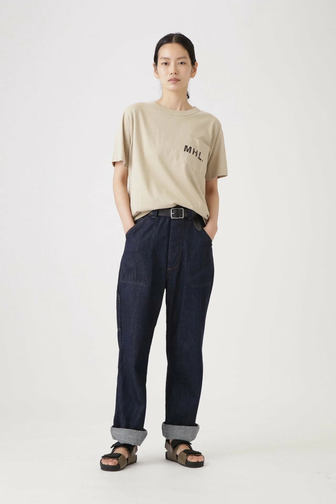 CANTON был основан в 1963 году как первые в Японии джинсы отечественного производства, конкурирующие с американскими. MHL использует оригинальную ткань CANTON, характеризующуюся неравномерным ворсом. Ворс создает сбалансированный, грубоватый вид, напоминающий рабочую одежду, а вертикальные потертости, которые появляются по мере носки, являются отличительной особенностью.