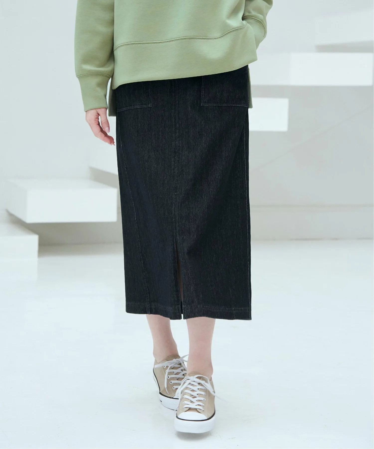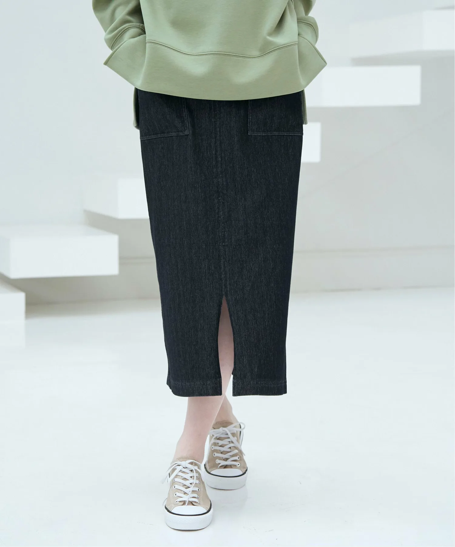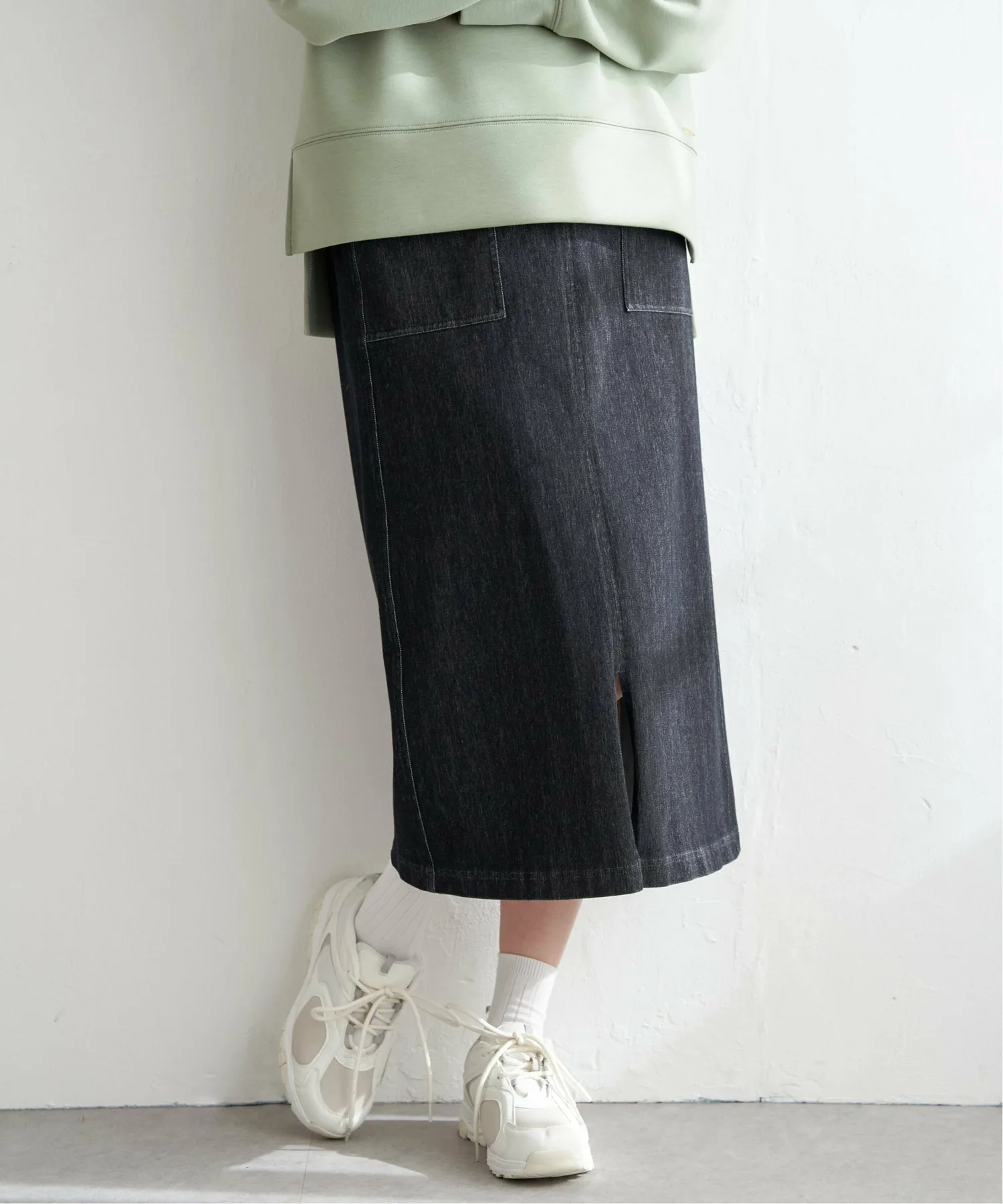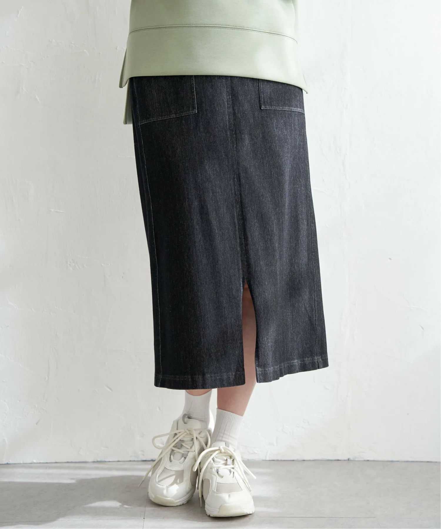 Передняя часть имеет карман, создающий ощущение рабочей юбки, что делает ее облегающей и удобной для повседневной носки.
