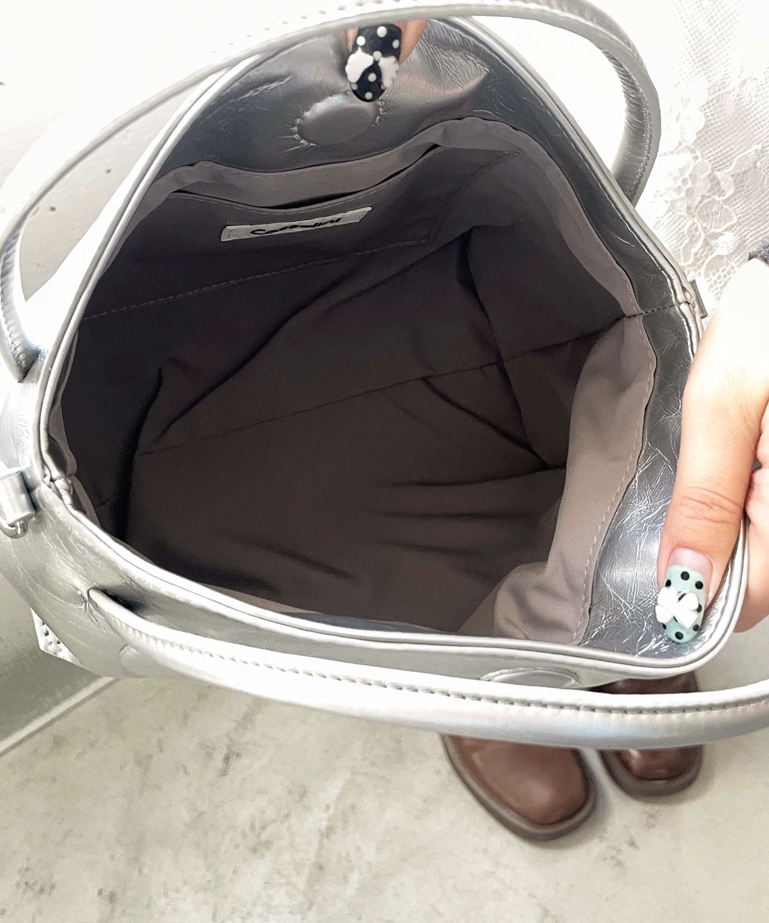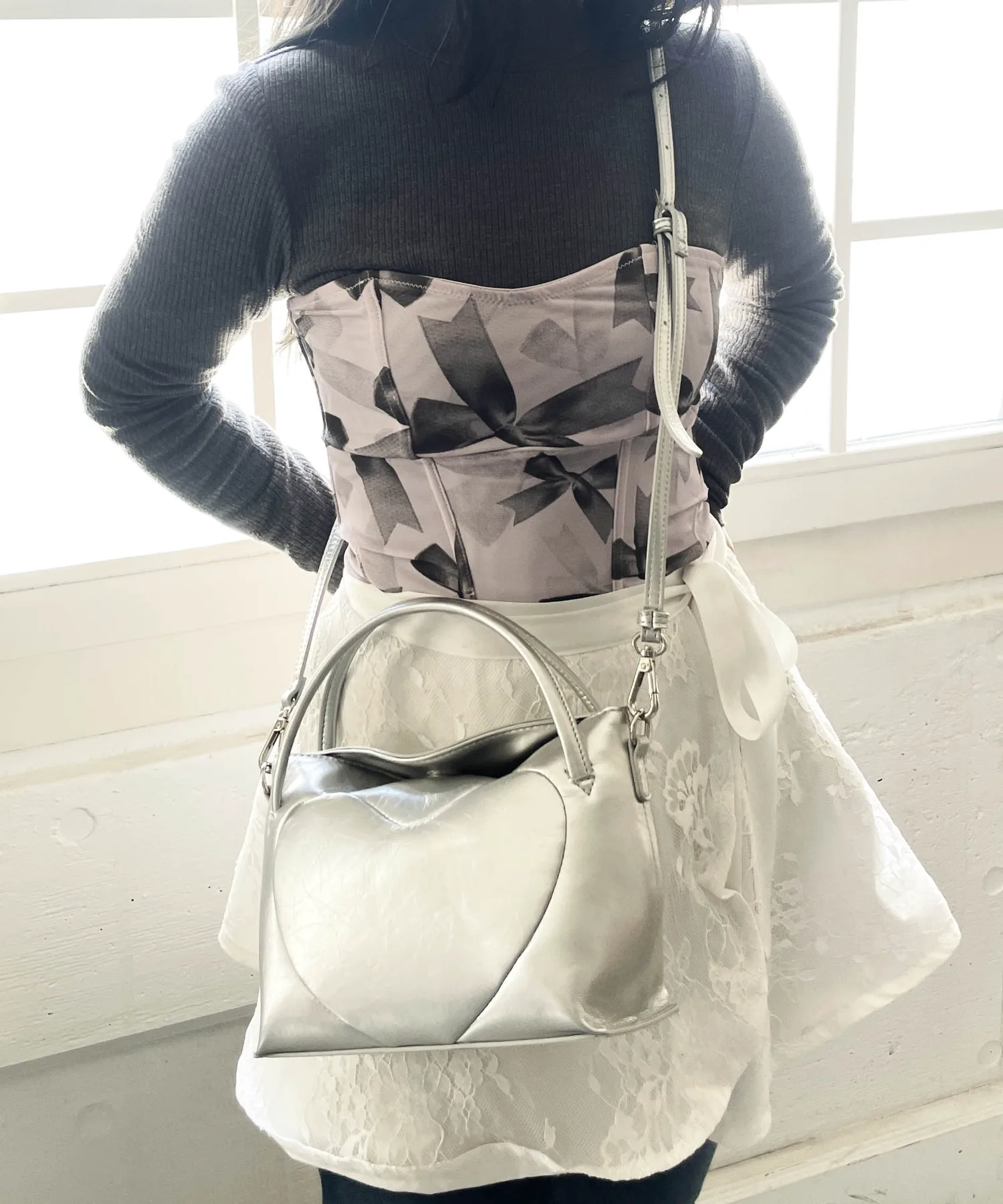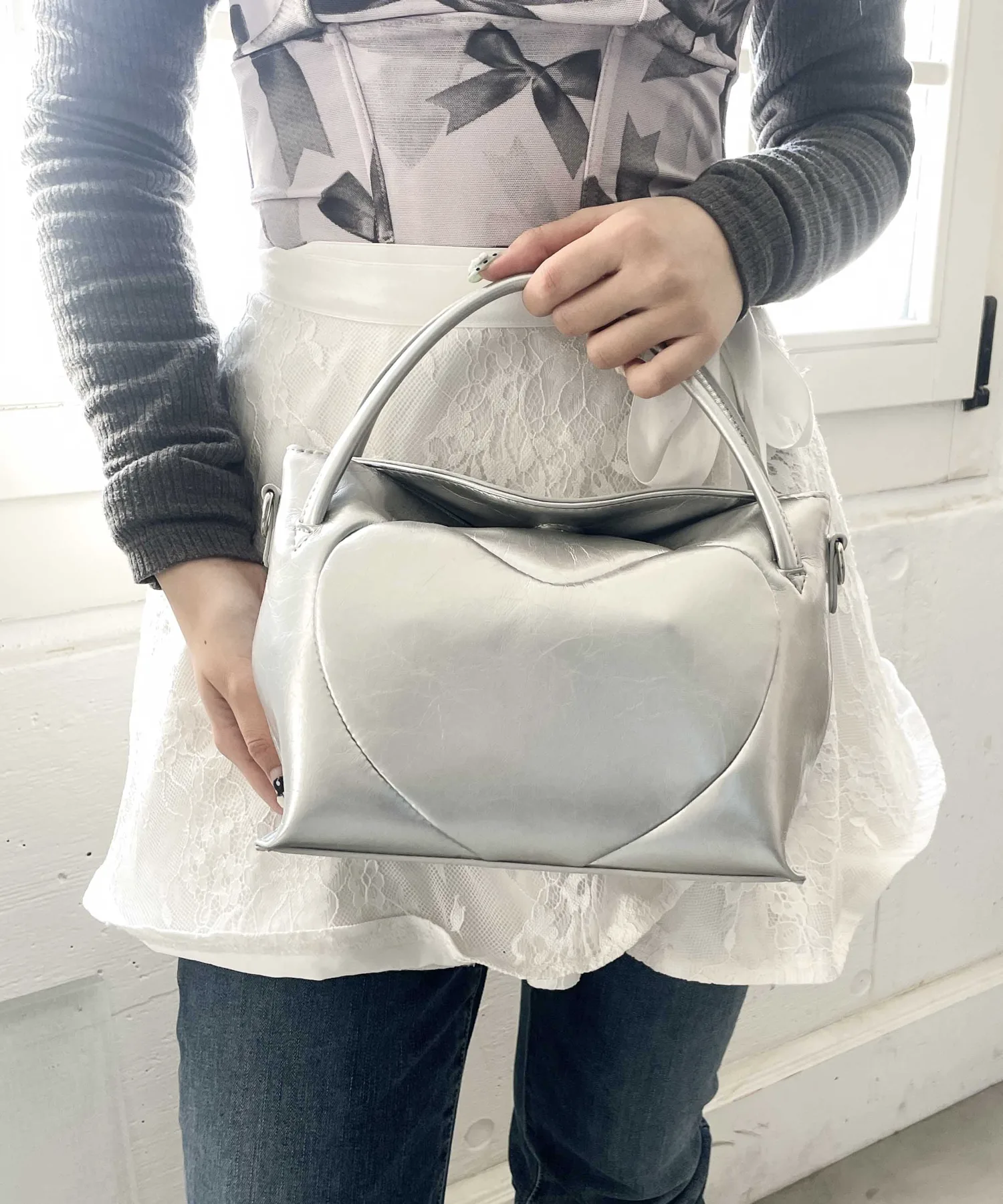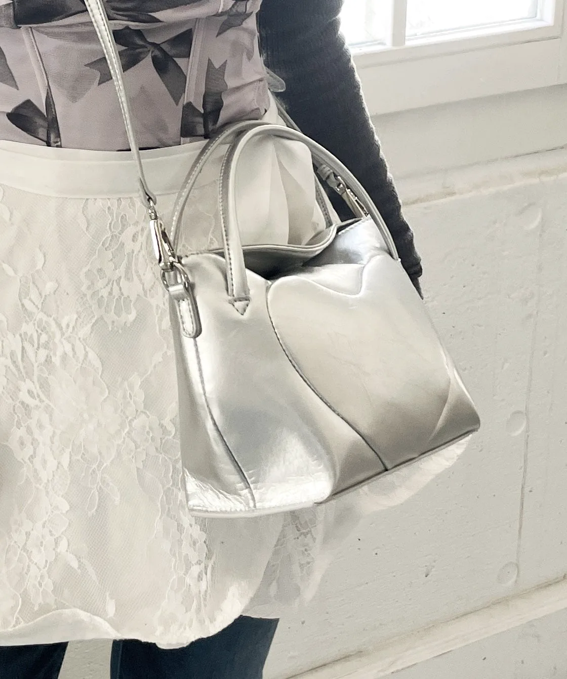 Изготовленная из полиуретана с умеренным блеском и винтажной текстурой, эта сумка с тонким сердечком и однотонной отделкой рекомендуется и для взрослых.