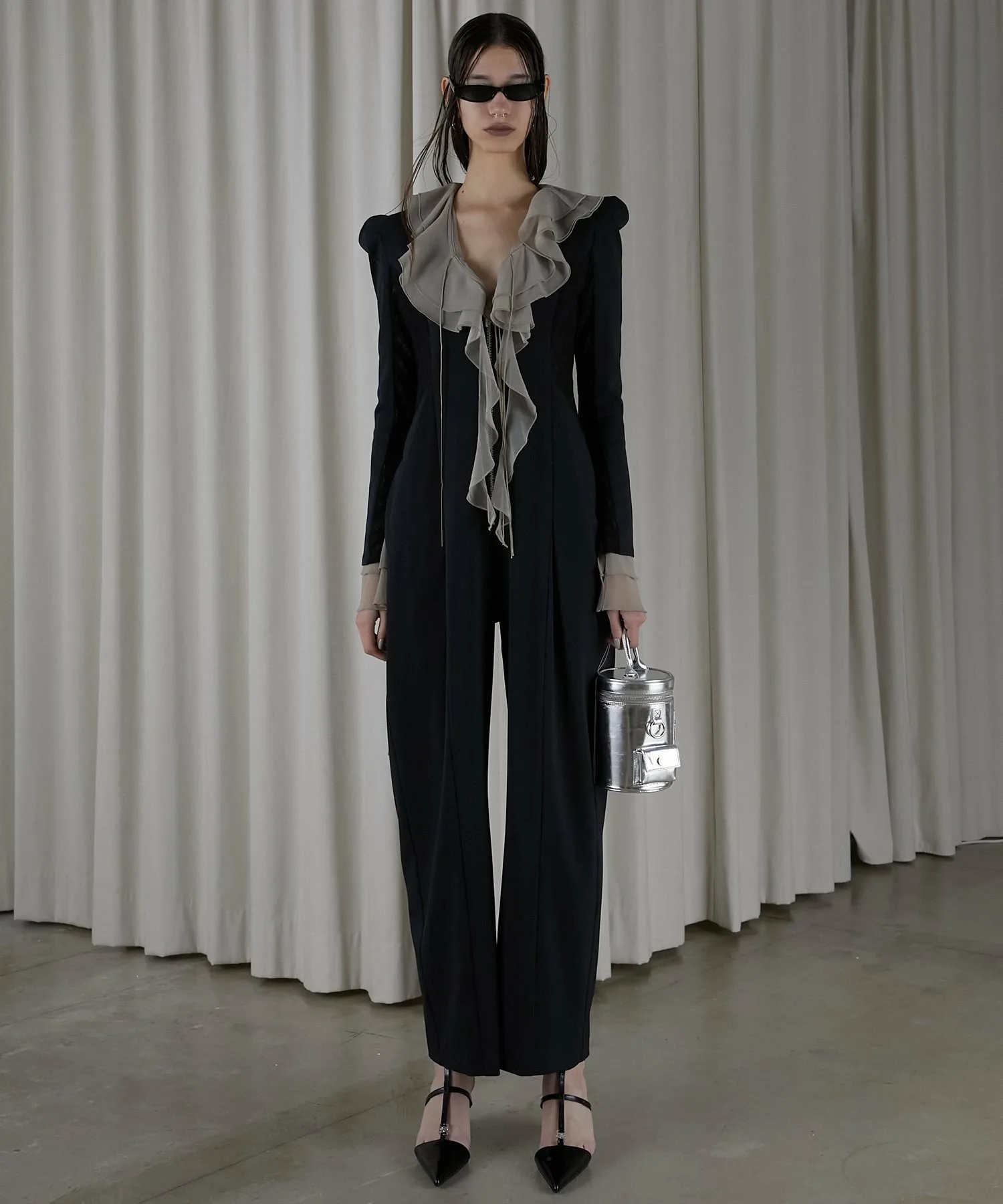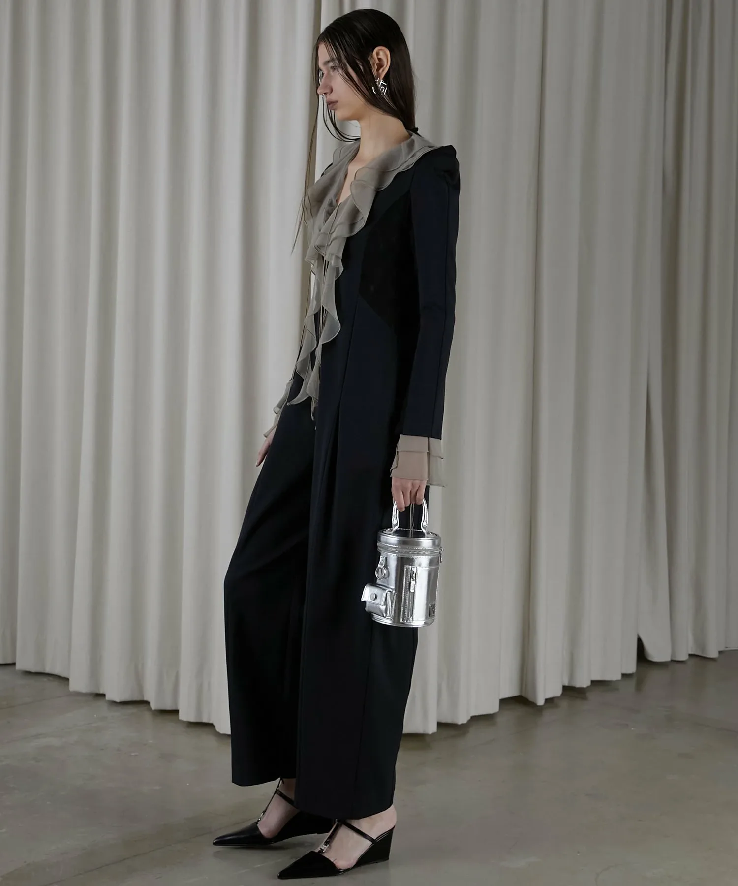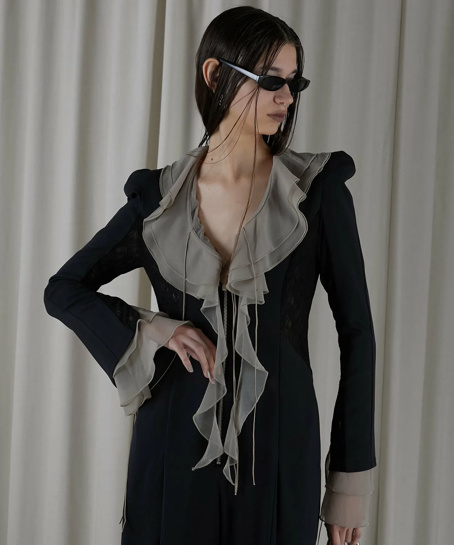 Глубокий V-образный вырез также визуально уменьшает лицо. ◎