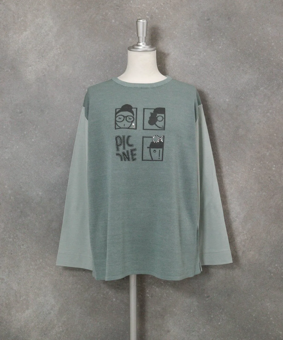 Пуловер с длинными рукавами, изготовленный из двух разных материалов: