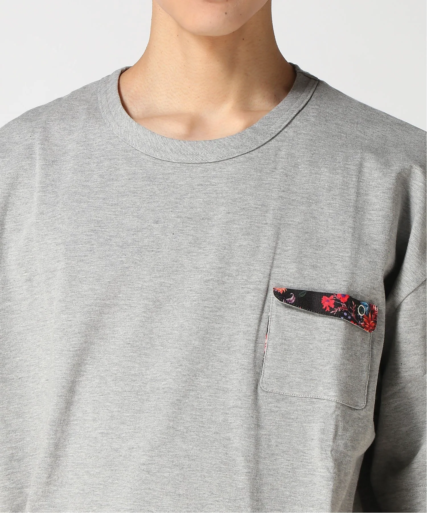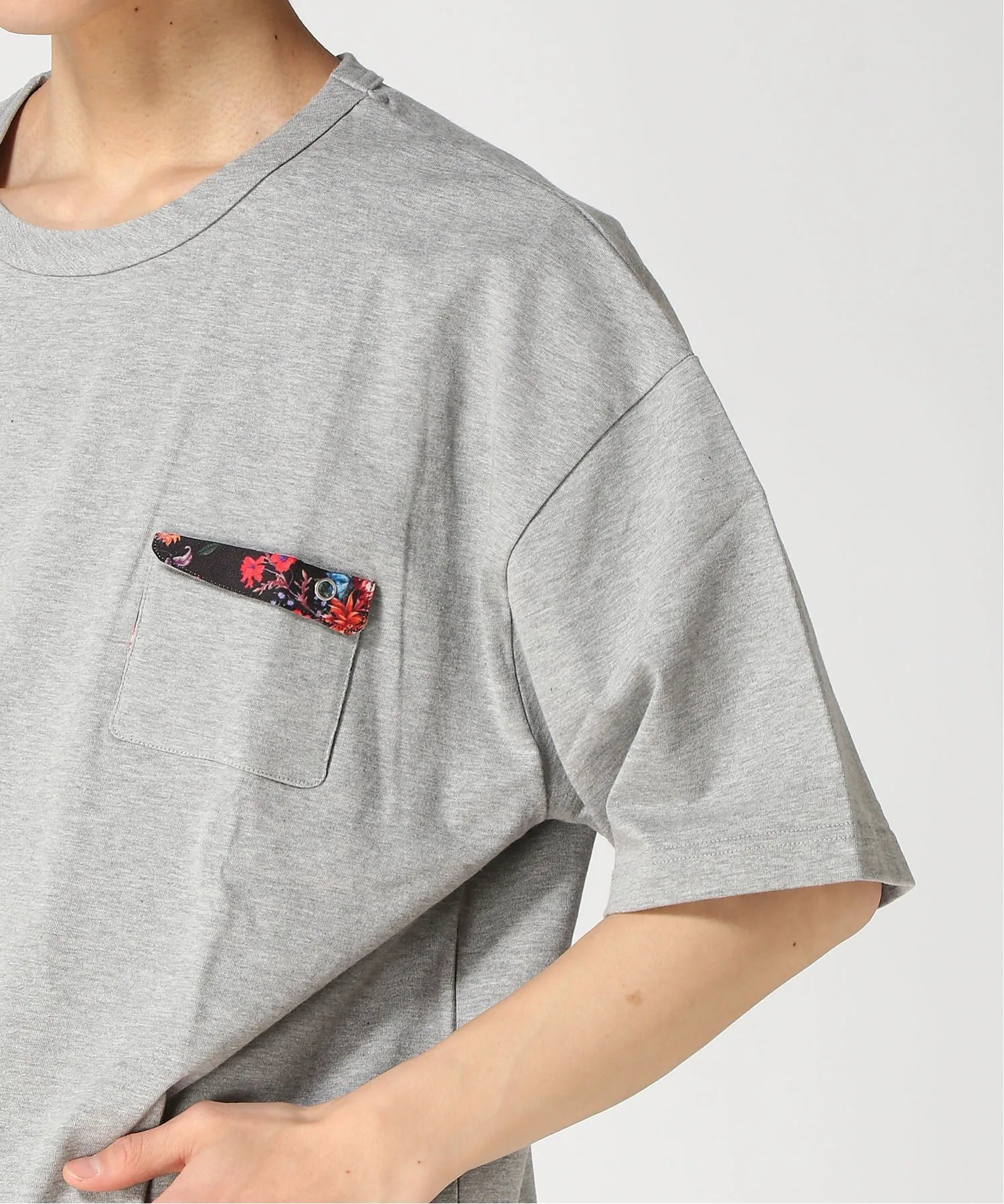 Выпущена футболка с коротким рукавом и карманом с растительным принтом, который служит ненавязчивым акцентом на фигуре.