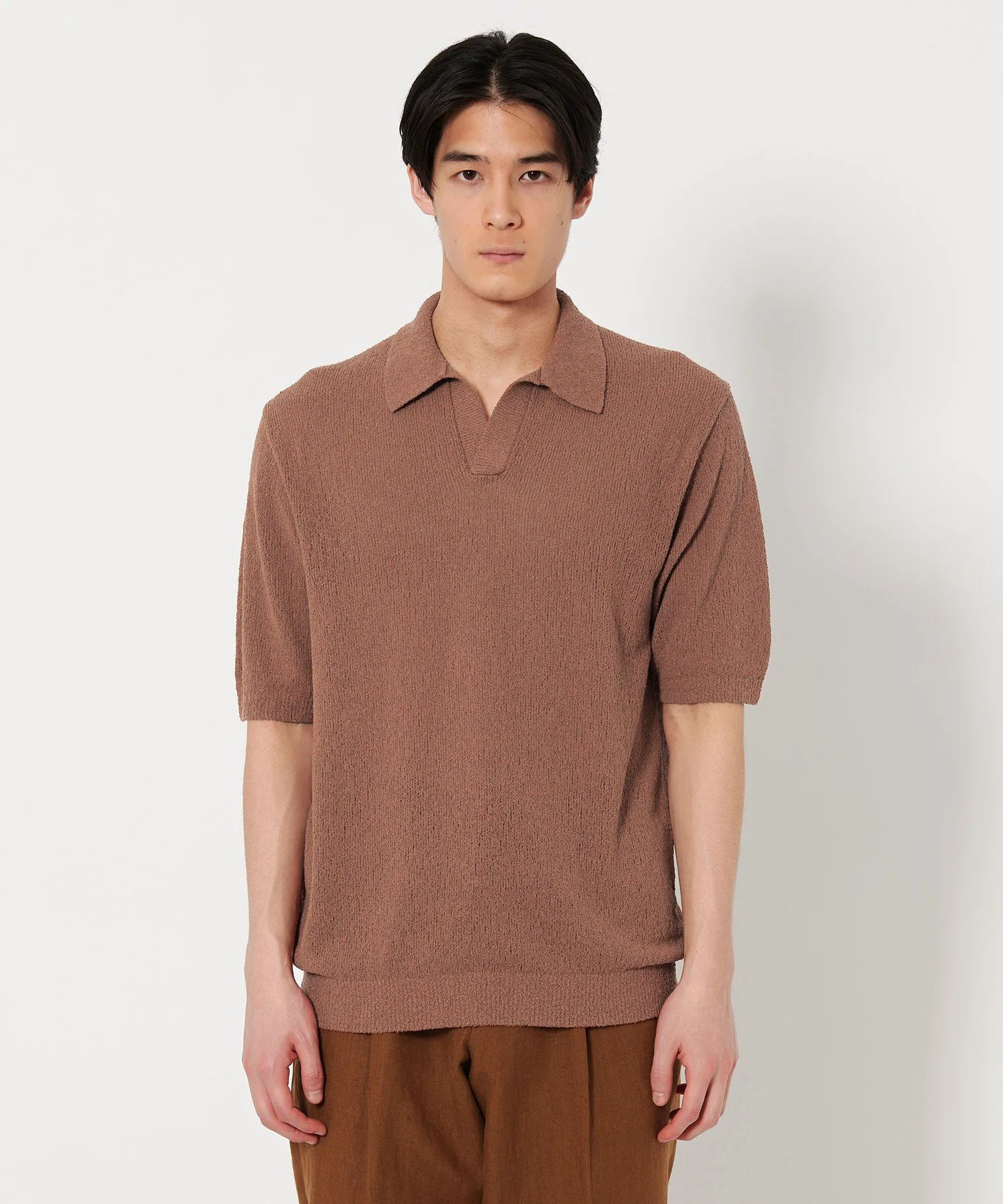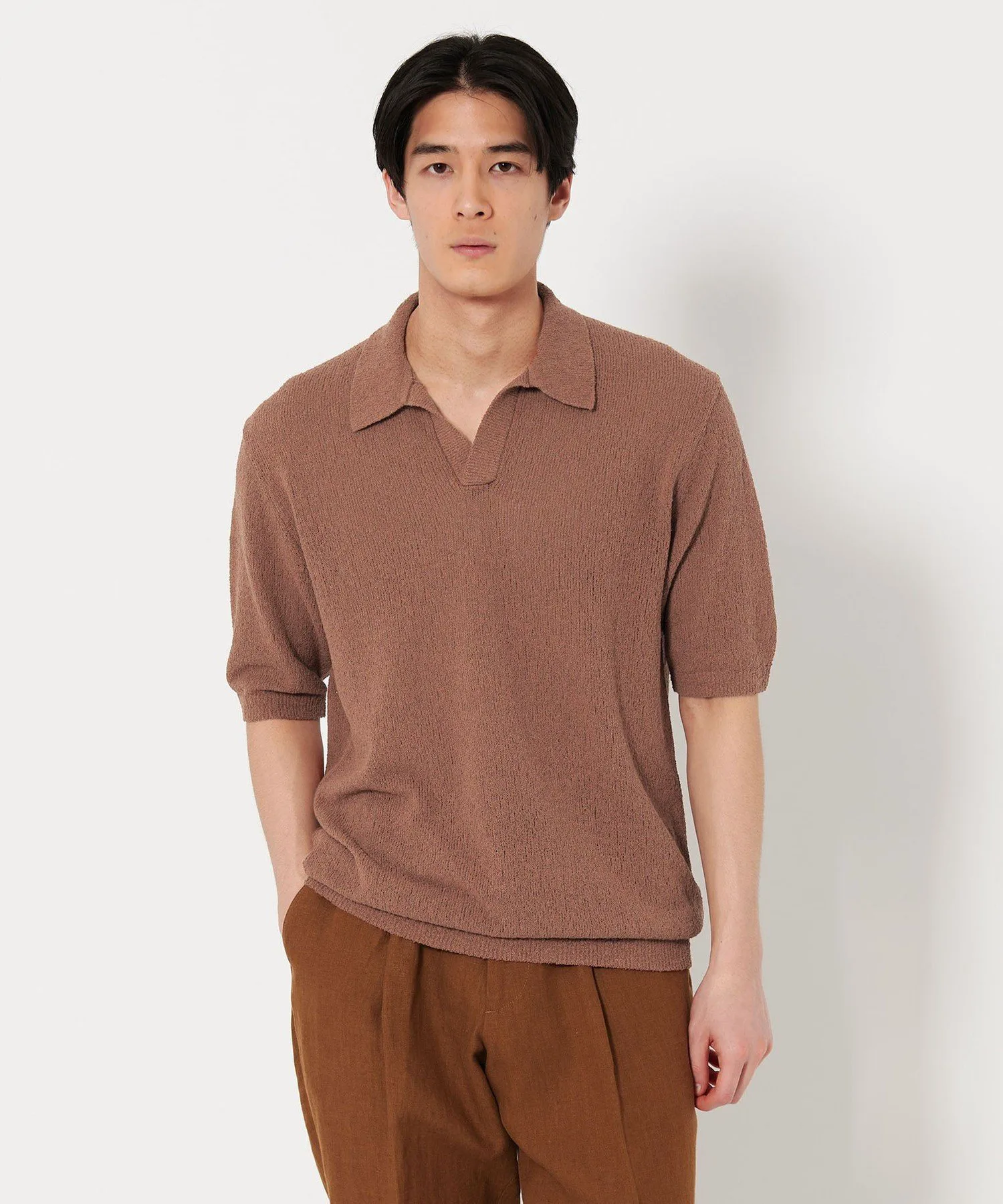 Текстура свободного плетения в сочетании с дизайном и элегантным открытым воротником создают расслабленную атмосферу.