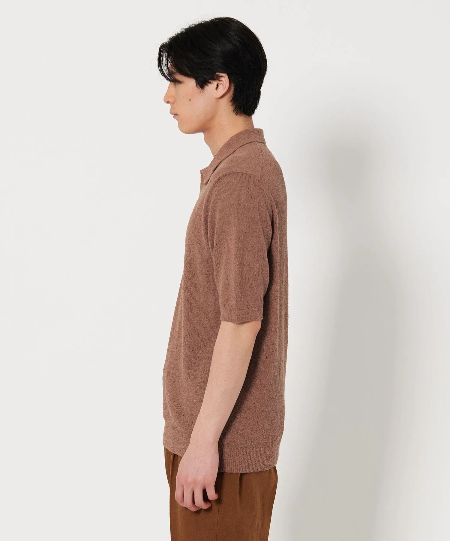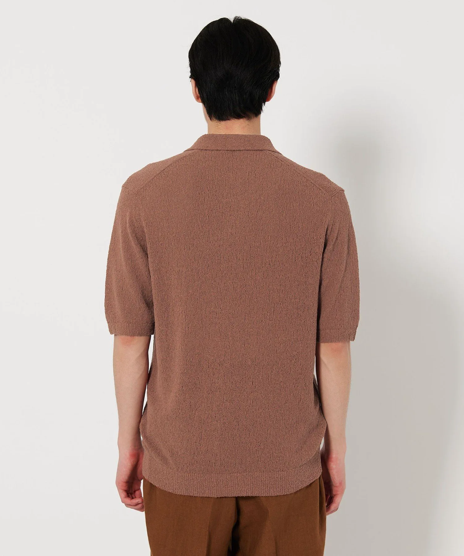 Поло с короткими рукавами, выполненное из выразительного трикотажа.