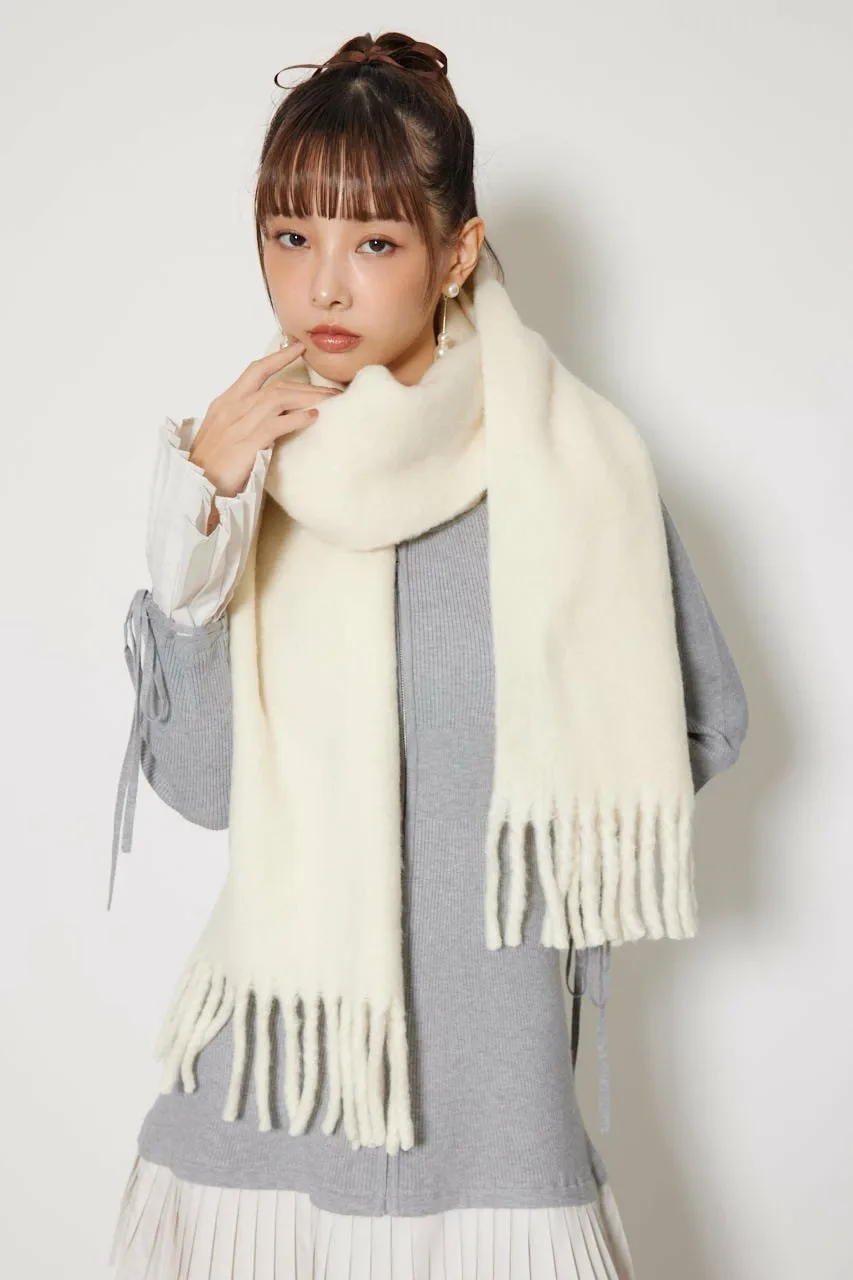 Эта шаль разработана с акцентом на объем и приятную на ощупь текстуру при обертывании вокруг шеи, что обеспечивает гладкость и комфорт.