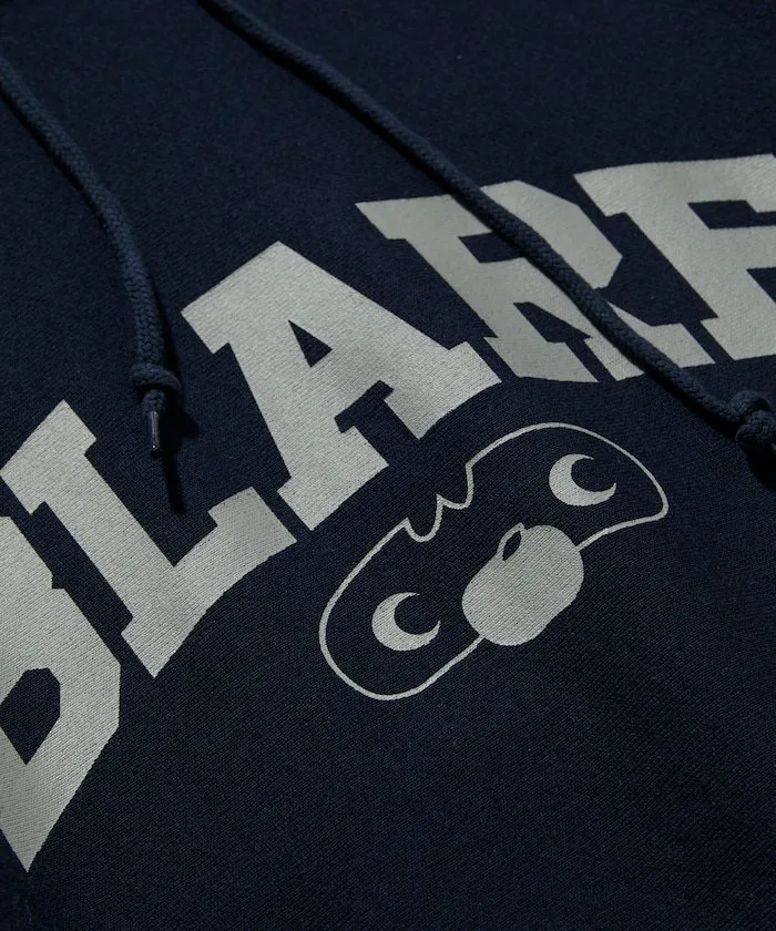 Это толстовка-худи из плотной ткани весом 12 унций. На передней части изображен популярный персонаж-талисман Блэр в стиле арочного логотипа, характерном для университетских принтов. Графическое изображение очаровательных глаз и носика Блэра также является изюминкой. Поверхность ткани имеет шероховатую текстуру, а боковые панели ребристые, что делает ее устойчивой к деформации и придает ей уникальную текстуру при стирке и ношении. Свободный, винтажный силуэт и изысканно свободные рукава также являются ключевыми особенностями. Немного увеличенный размер позволяет создать расслабленный образ.