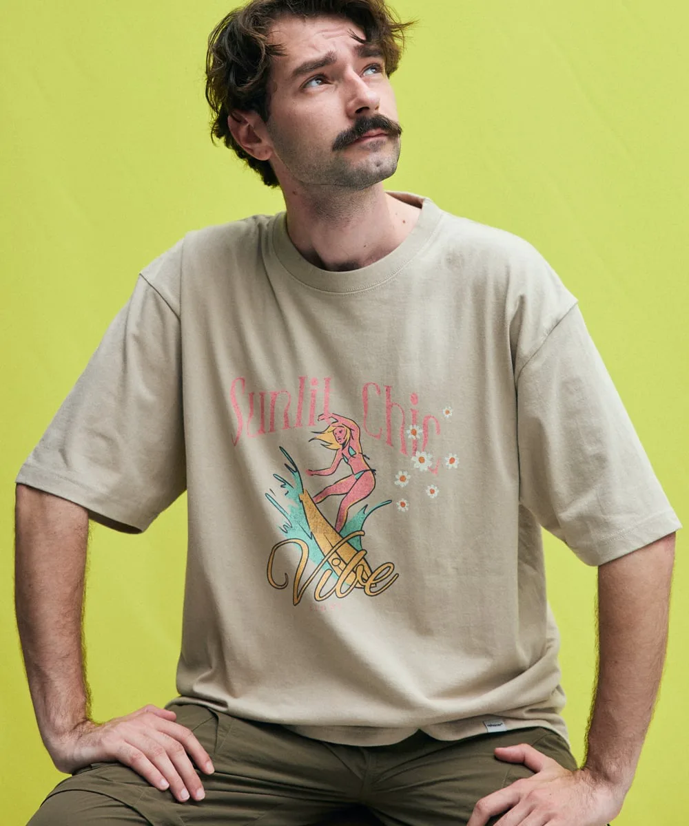 Поскольку это классическая вещь, эта футболка с коротким рукавом украшена уникальным и стильным графическим принтом в винтажном стиле.