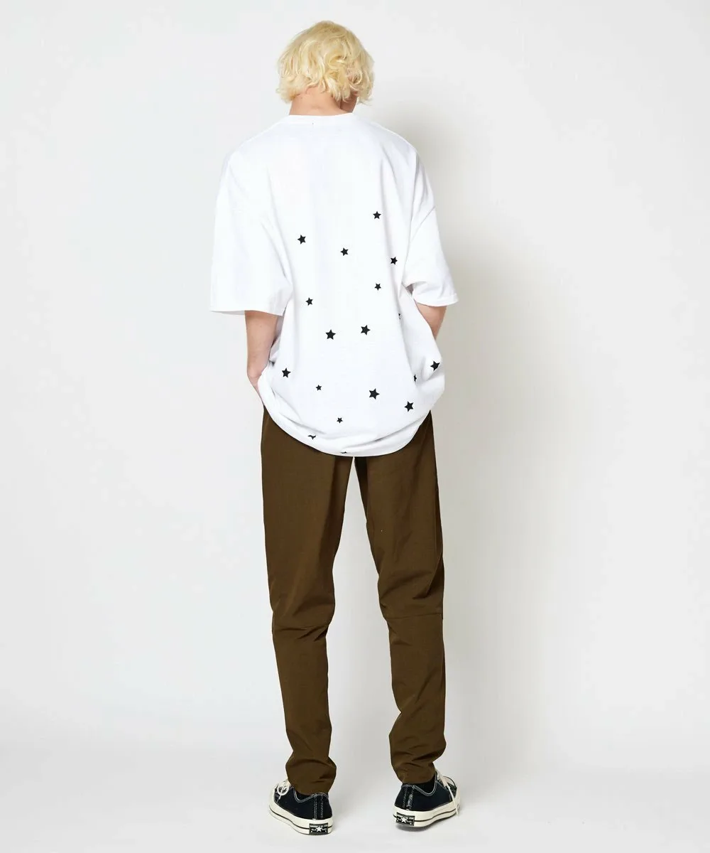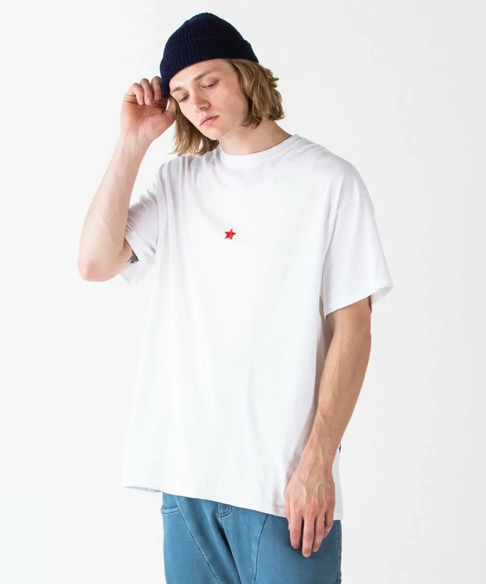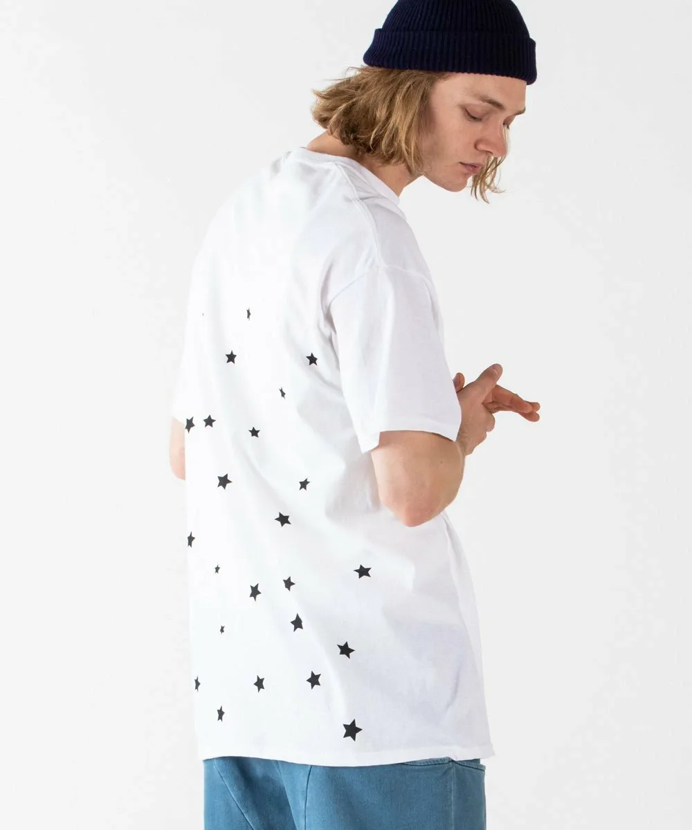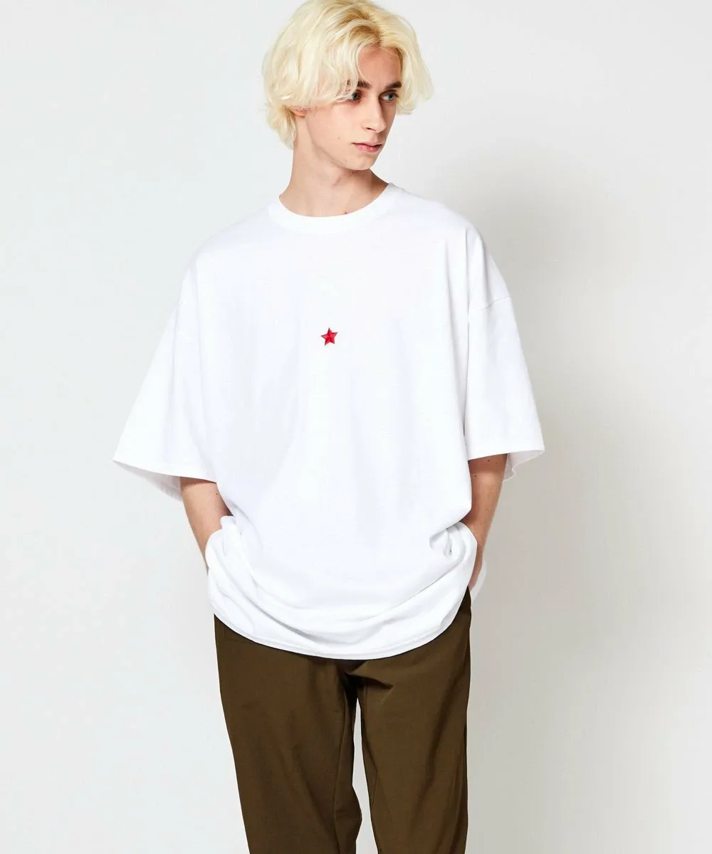 [Ткань] Изготовлено из прочной трикотажной ткани плотностью 6,0 унций, которая идеально подходит для ношения в любое время года. [Дизайн/Силуэт] На передней части вышита звезда, а на спине смело нанесено изображение звездного неба методом шелкографии. Однотонная цветовая гамма делает его идеальным акцентным элементом для любого стиля, не слишком броским.